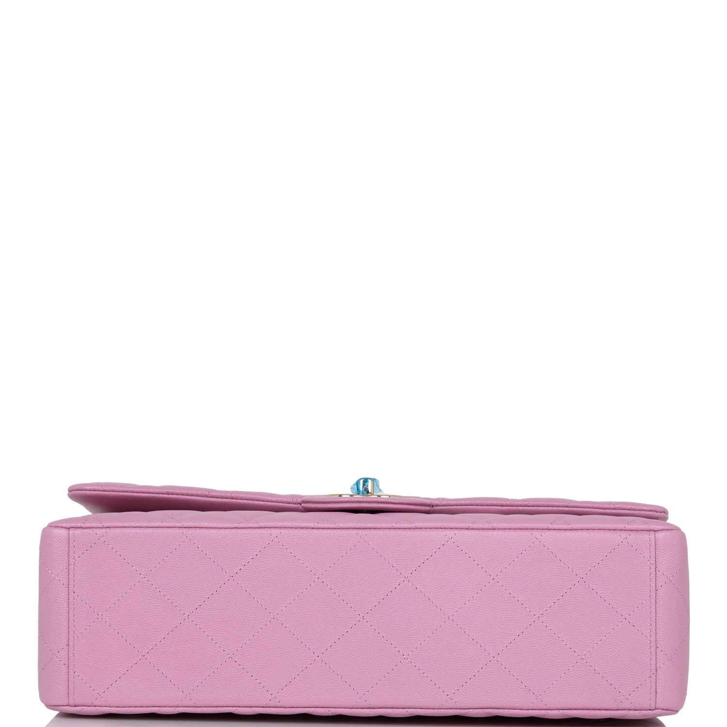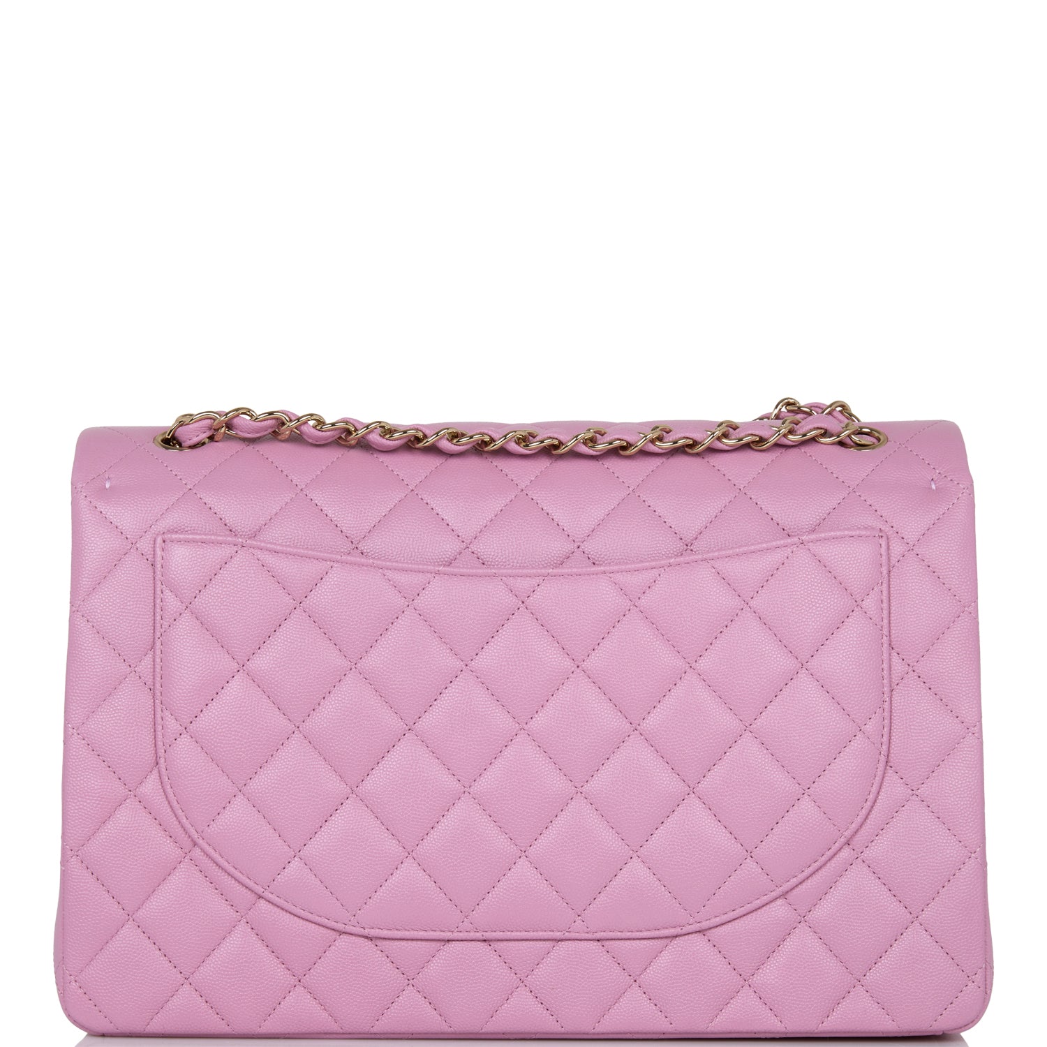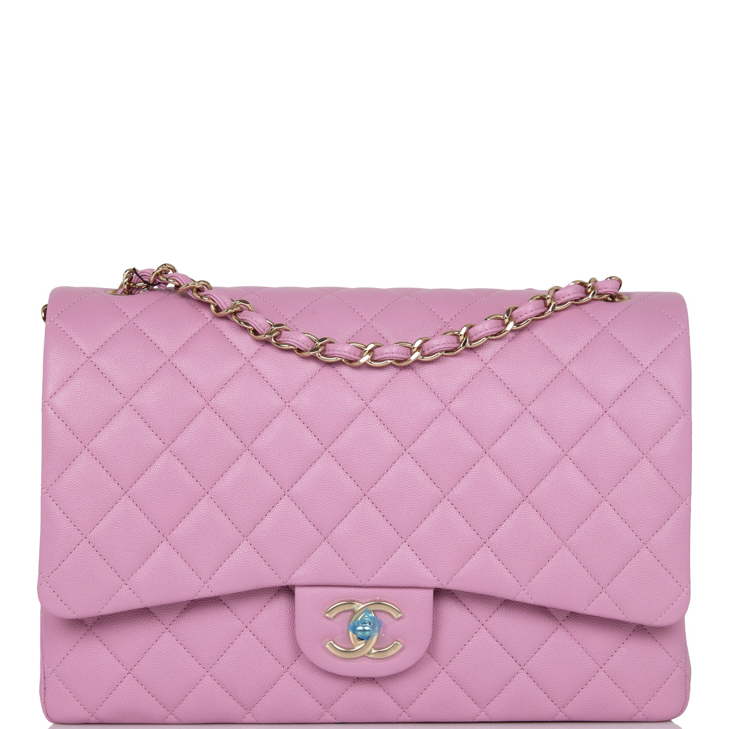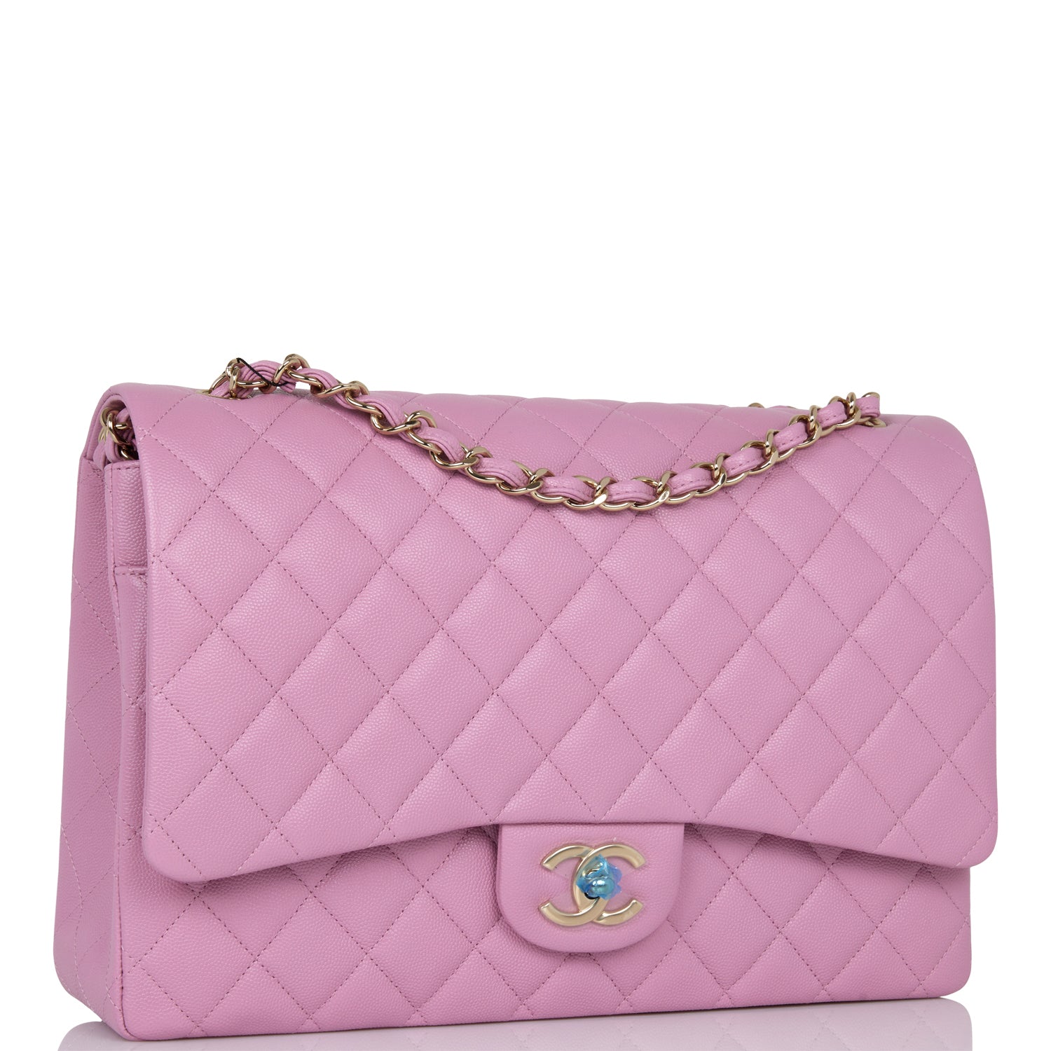 Chanel Maxi Classic Double Flap Bag Dark Pink Caviar Light Gold Hardware