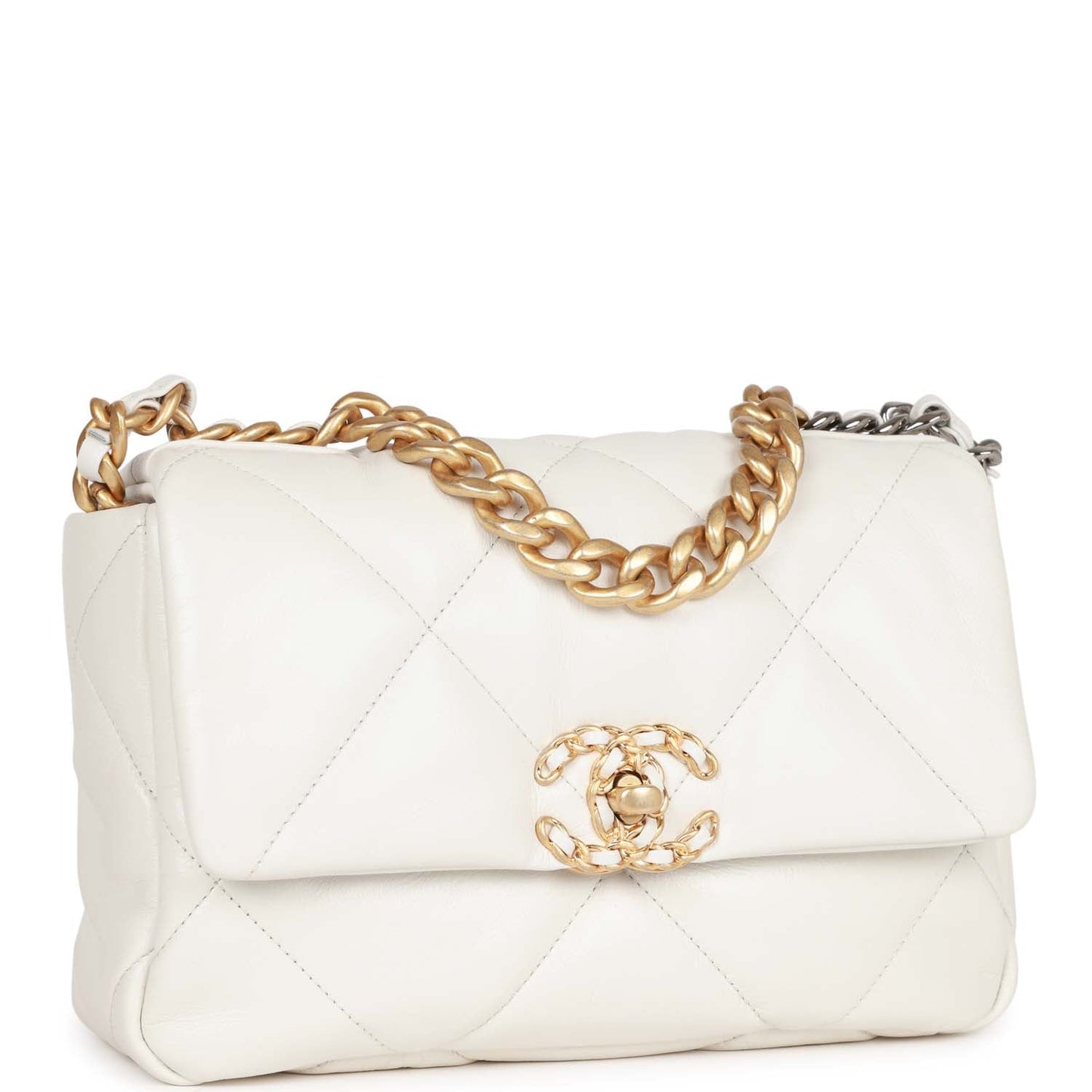 Chanel Medium 19 Flap Bag White Calfskin Mixed Hardware