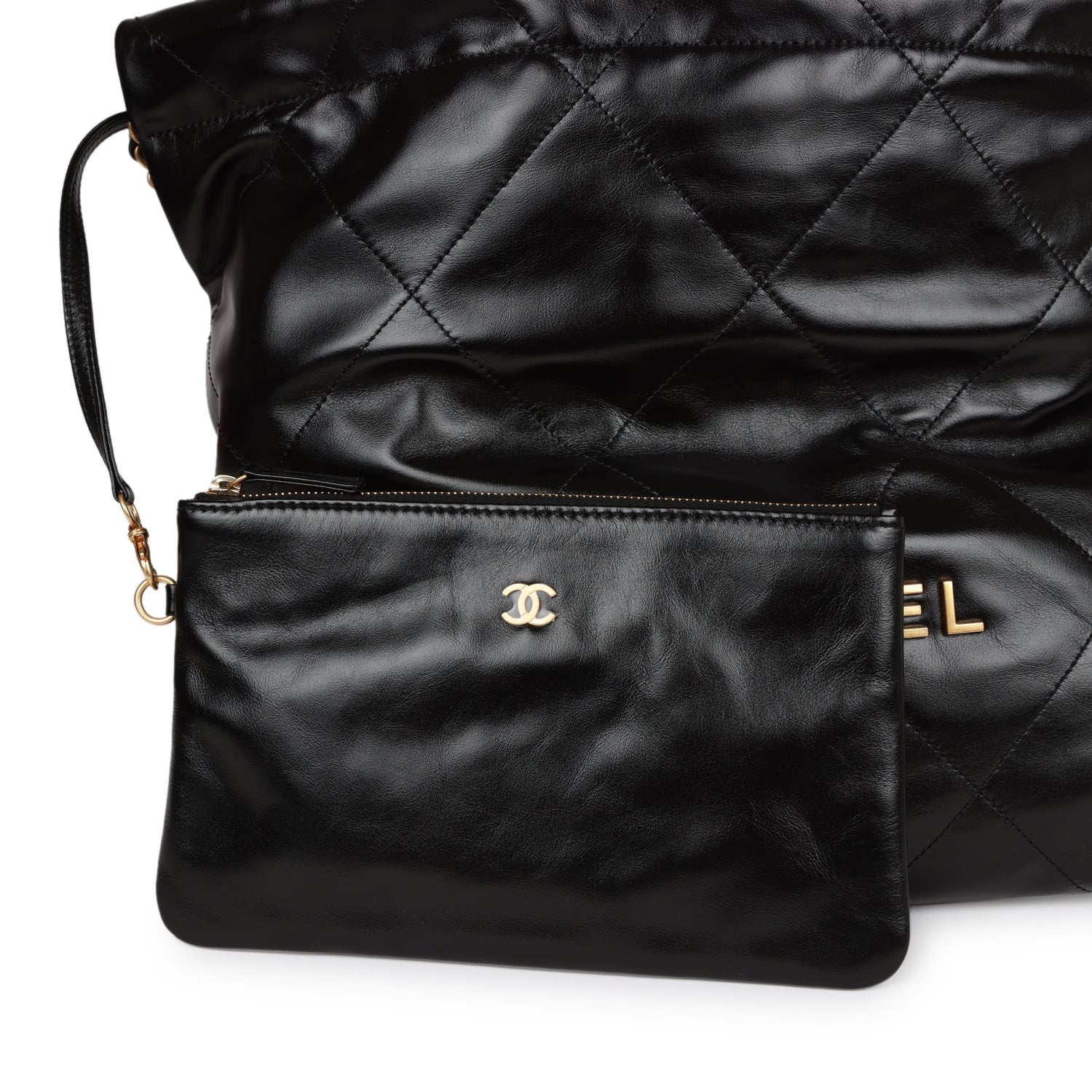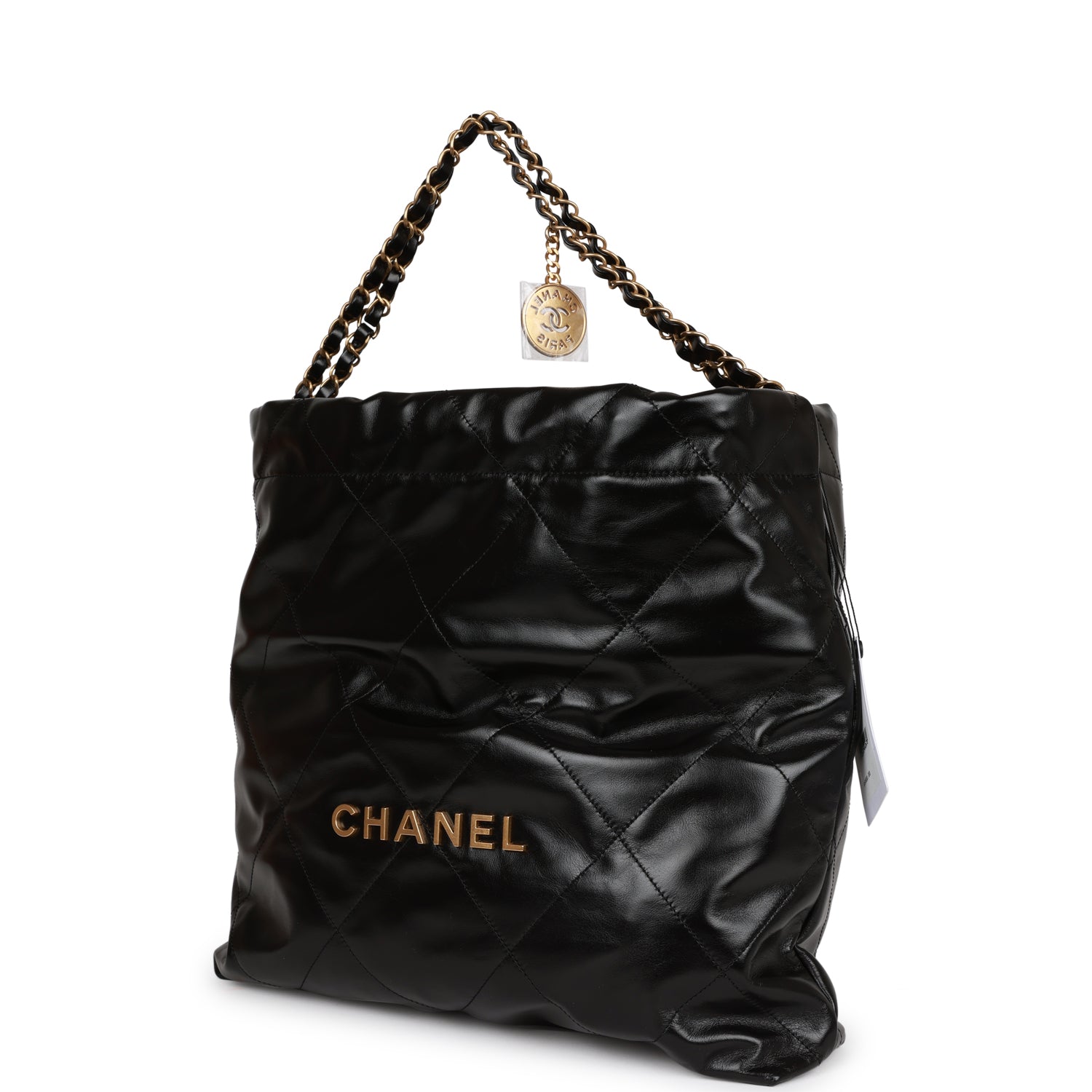 Chanel Medium 22 Bag Black Calfskin Aged Gold Hardware