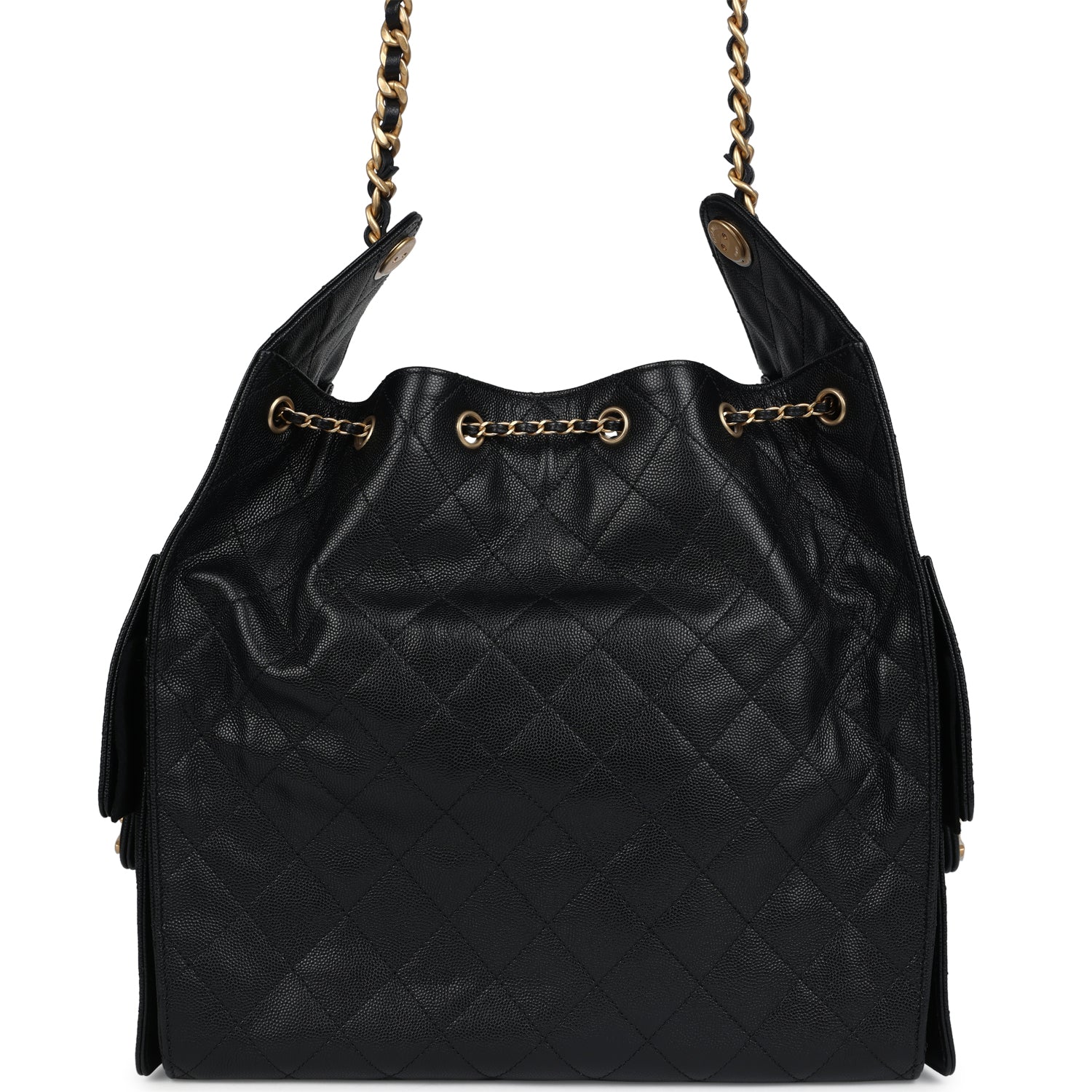 Chanel Medium 25 Hobo Bag Black Caviar Antique Gold Hardware