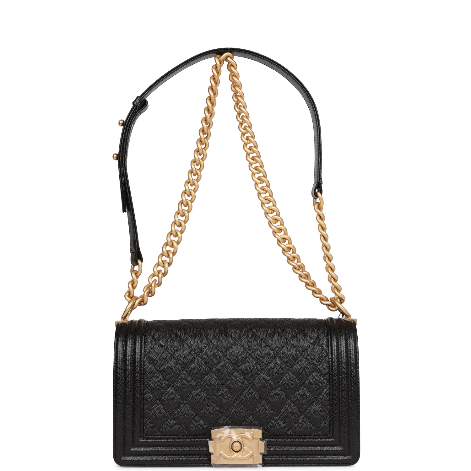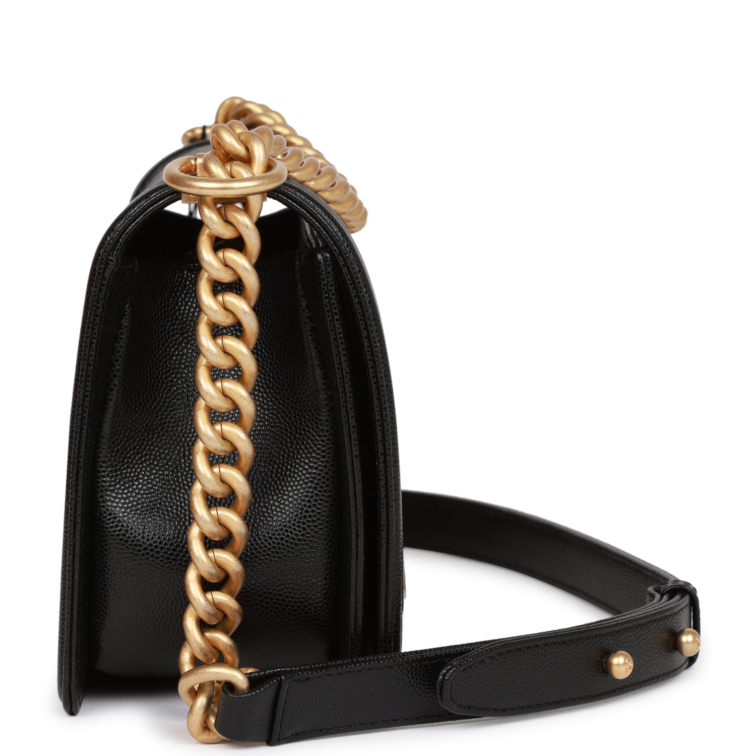 Chanel Medium Boy Bag Black Caviar Antique Gold Hardware