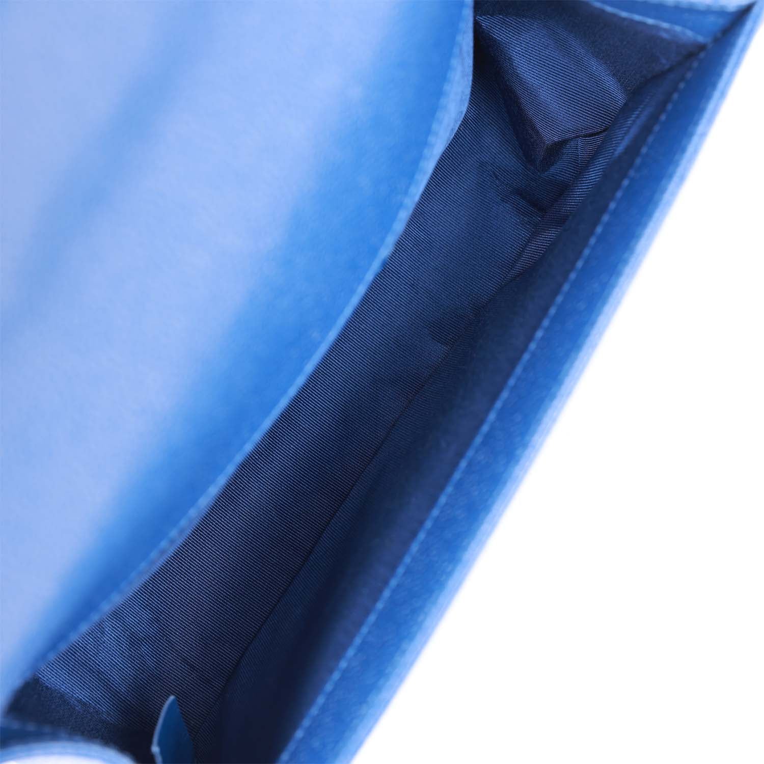 The interior is lined in blue canvas with an open pocket on rear wall.