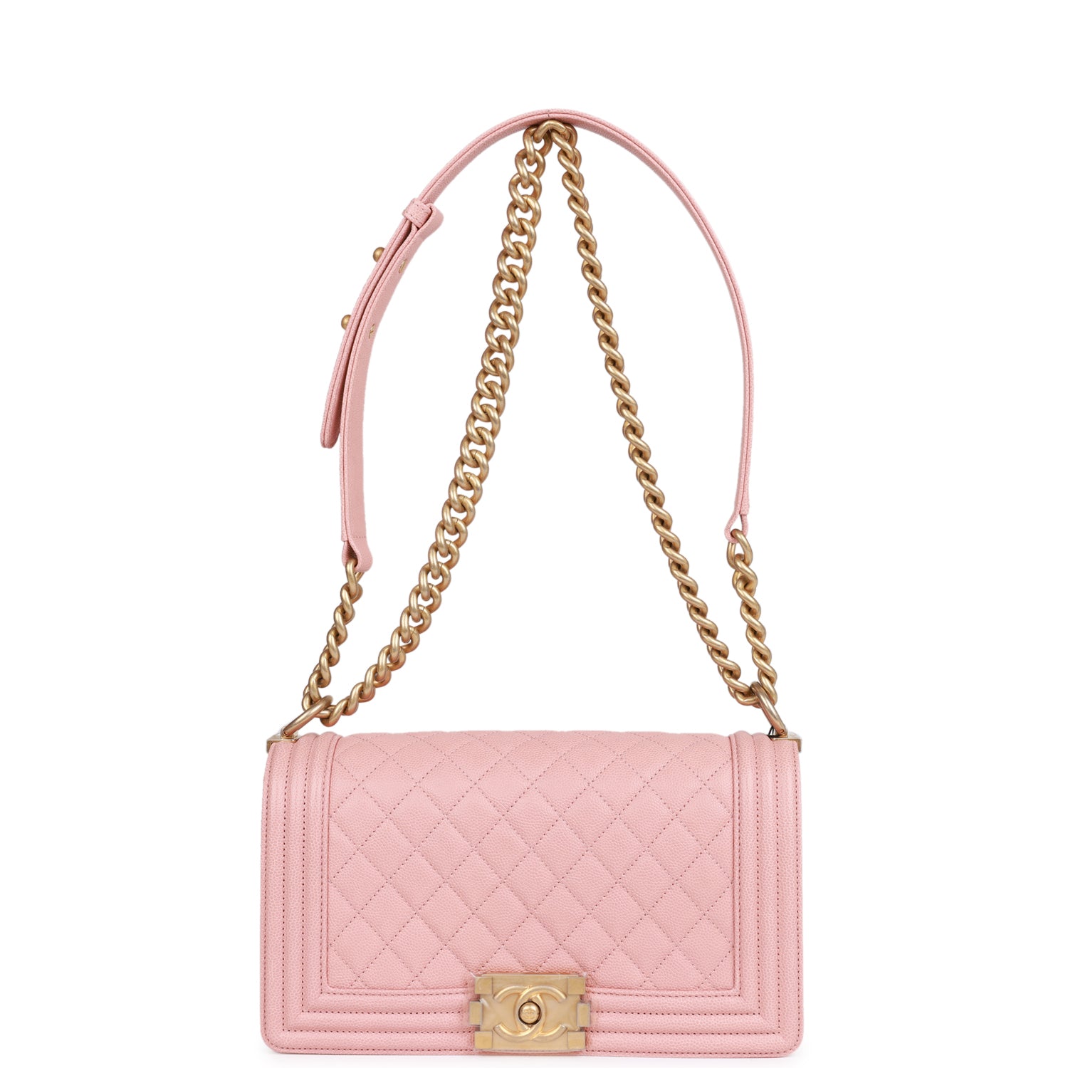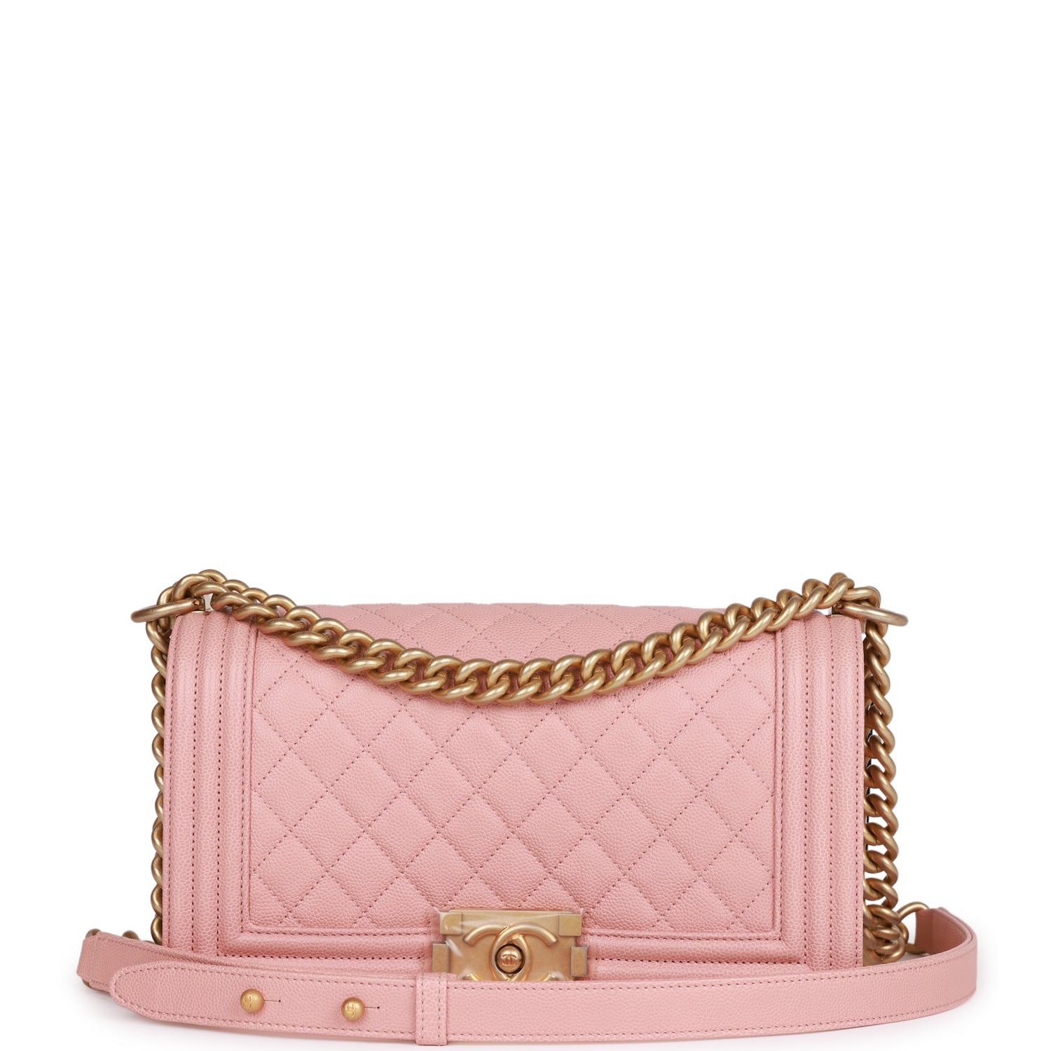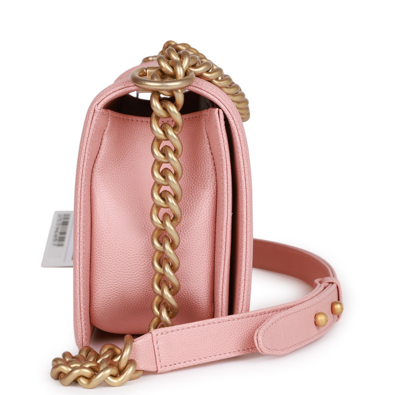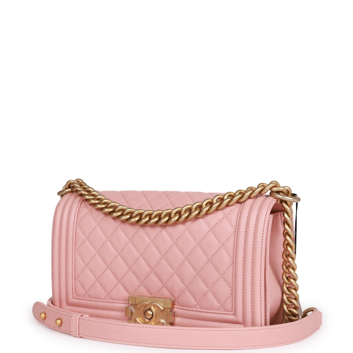 Chanel Medium Boy Bag Pink Caviar Antique Gold Hardware