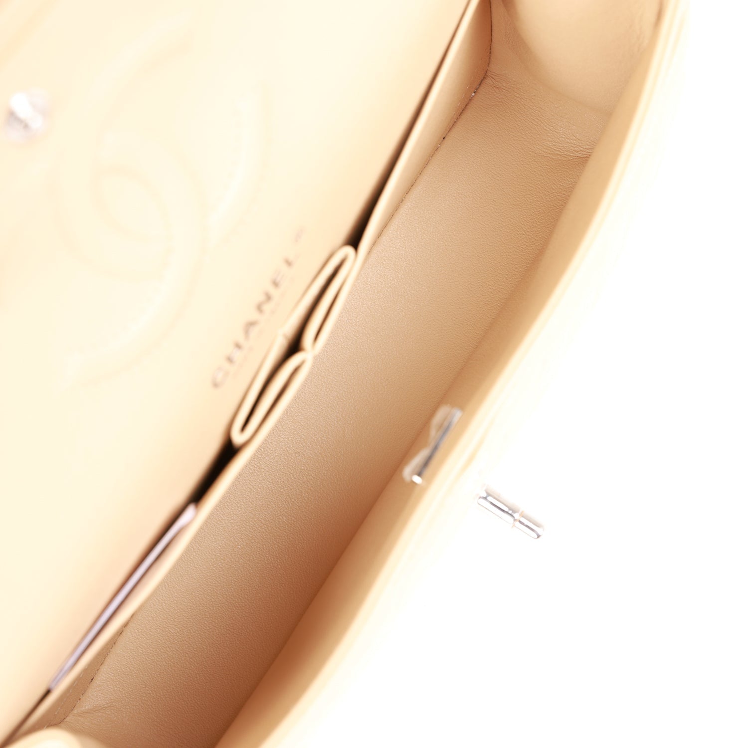 Chanel Medium Classic Double Flap Bag Beige Caviar Silver Hardware