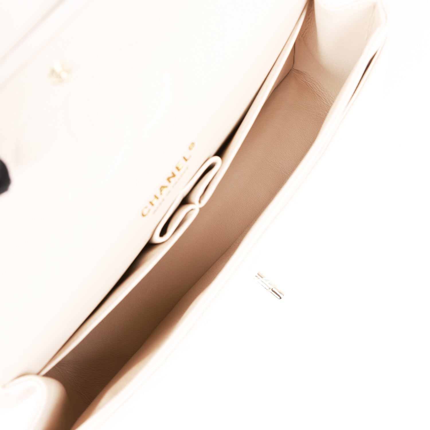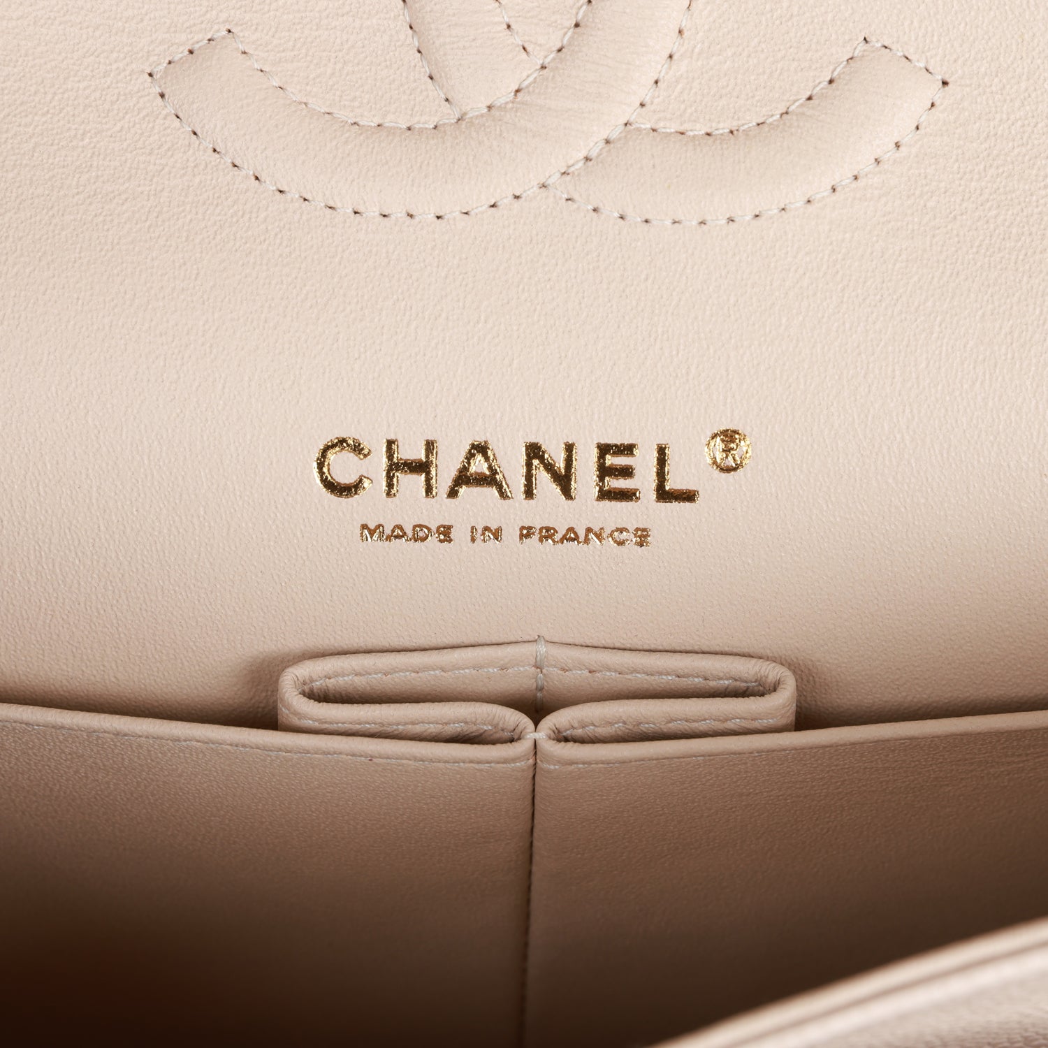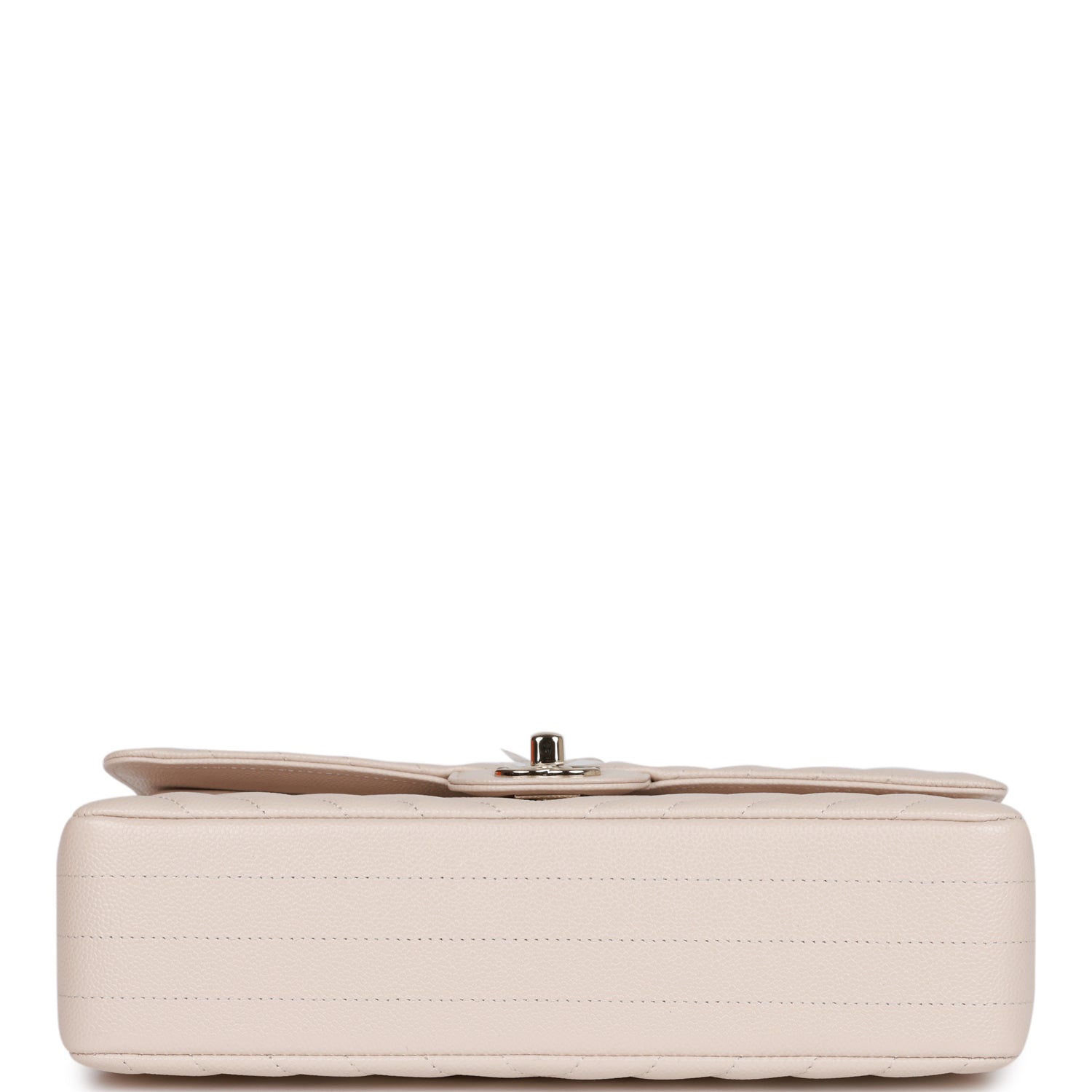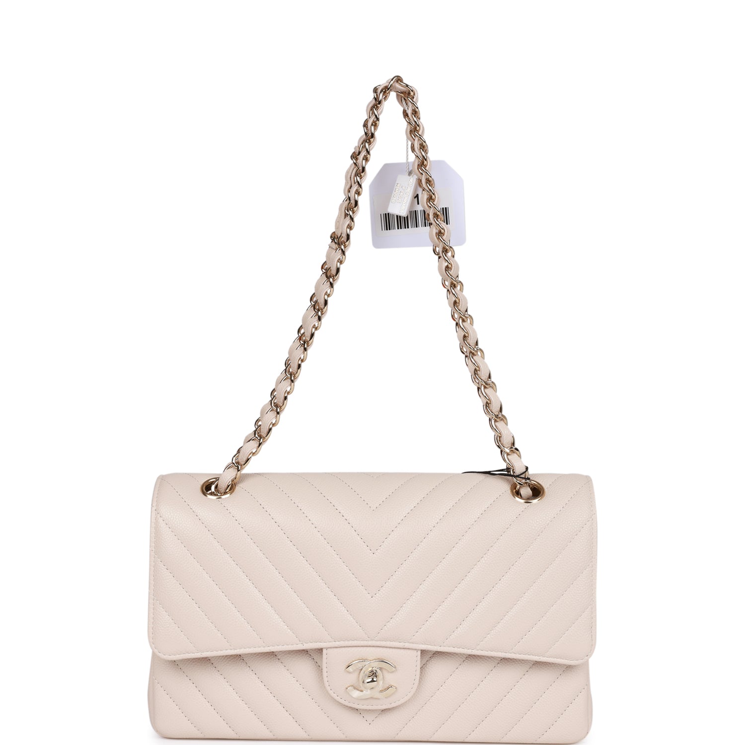 Chanel Medium Classic Double Flap Bag Beige Chevron Caviar Light Gold Hardware