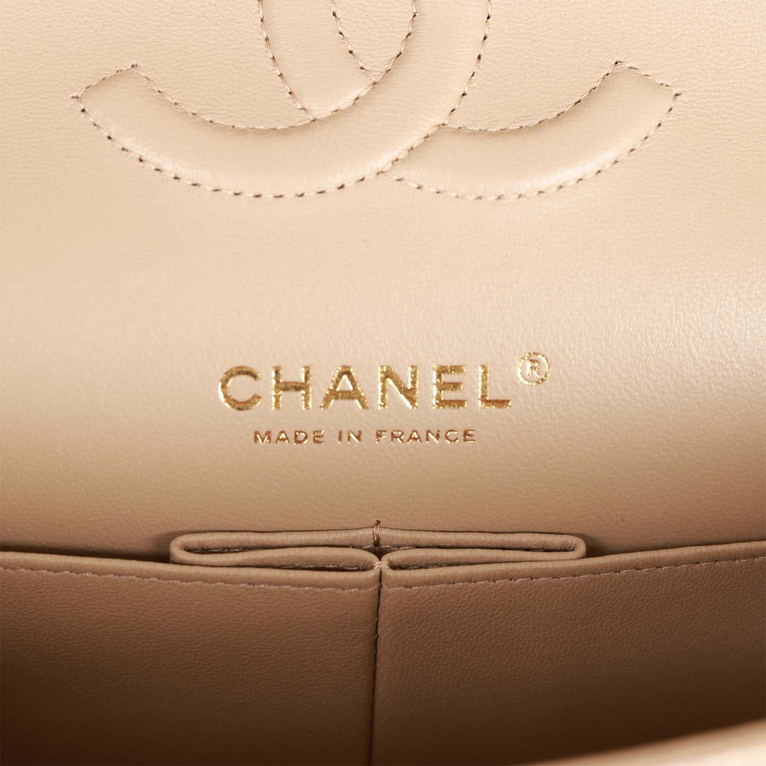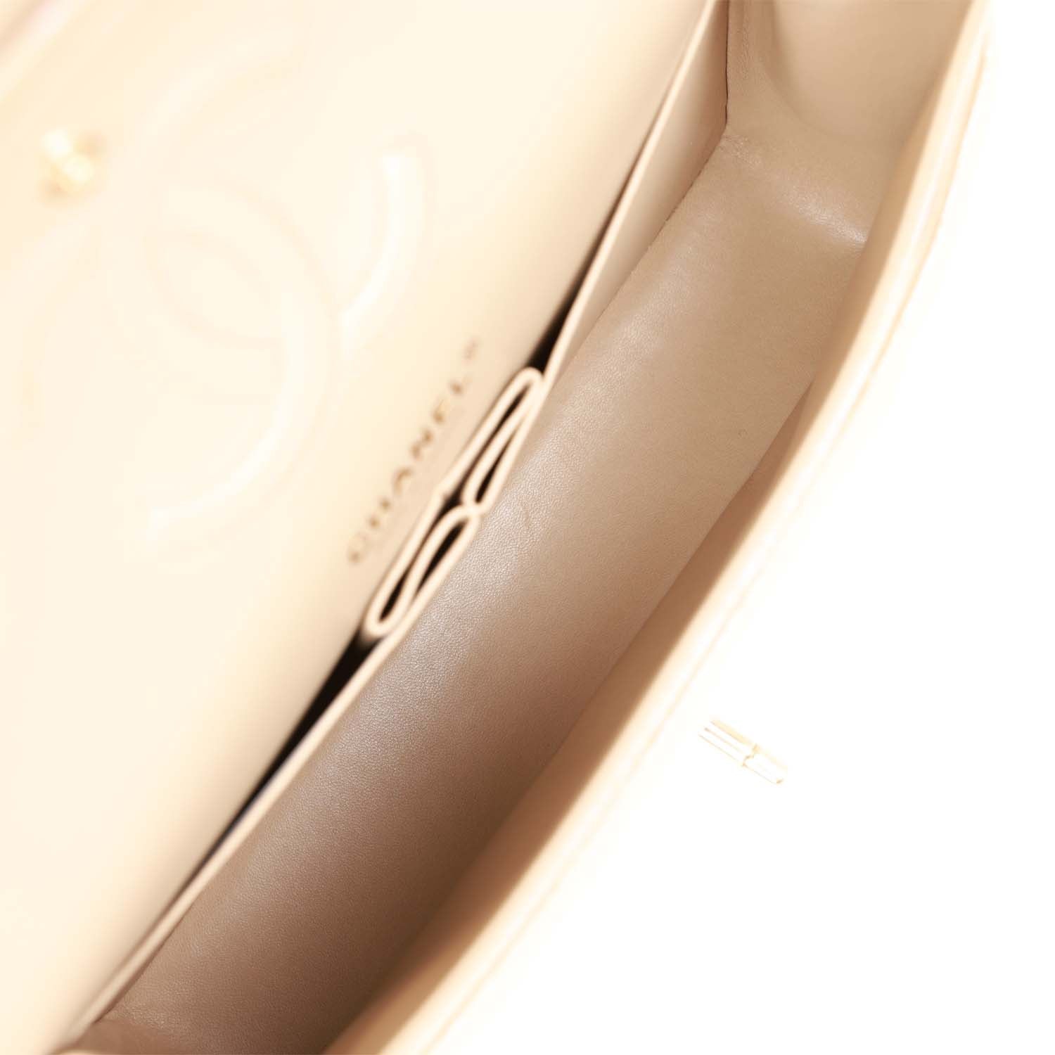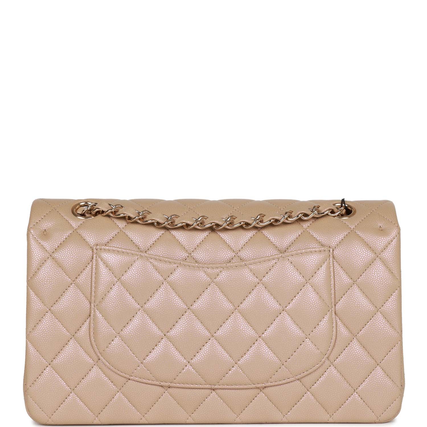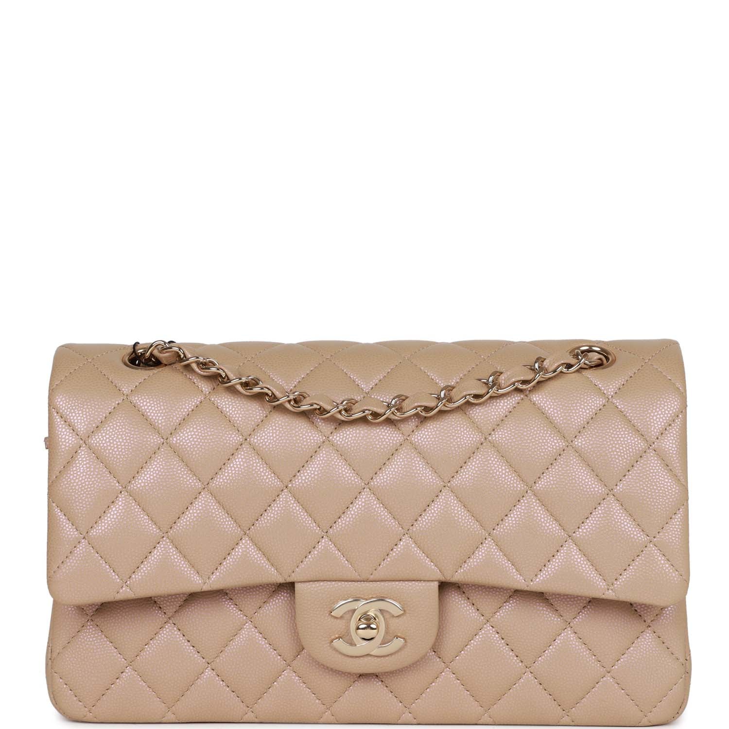 Chanel Medium Classic Double Flap Bag Beige Iridescent Caviar Light Gold Hardware