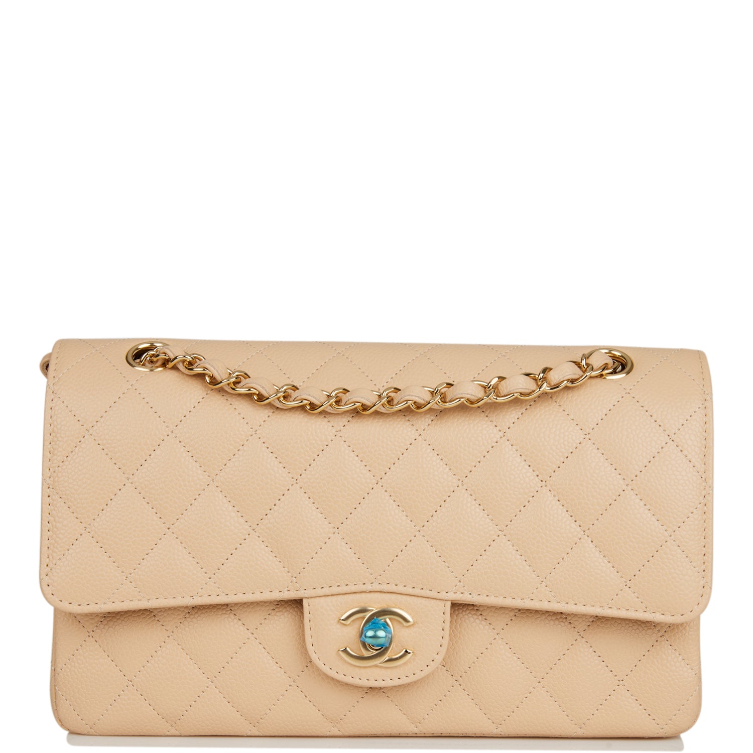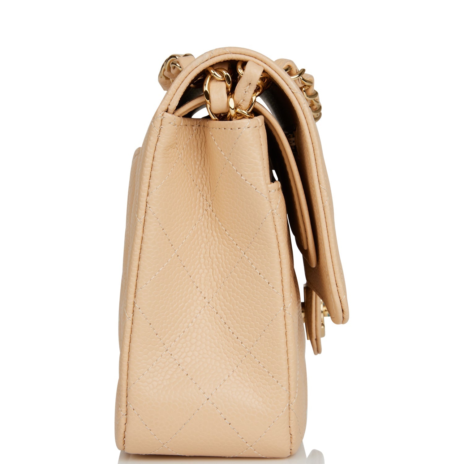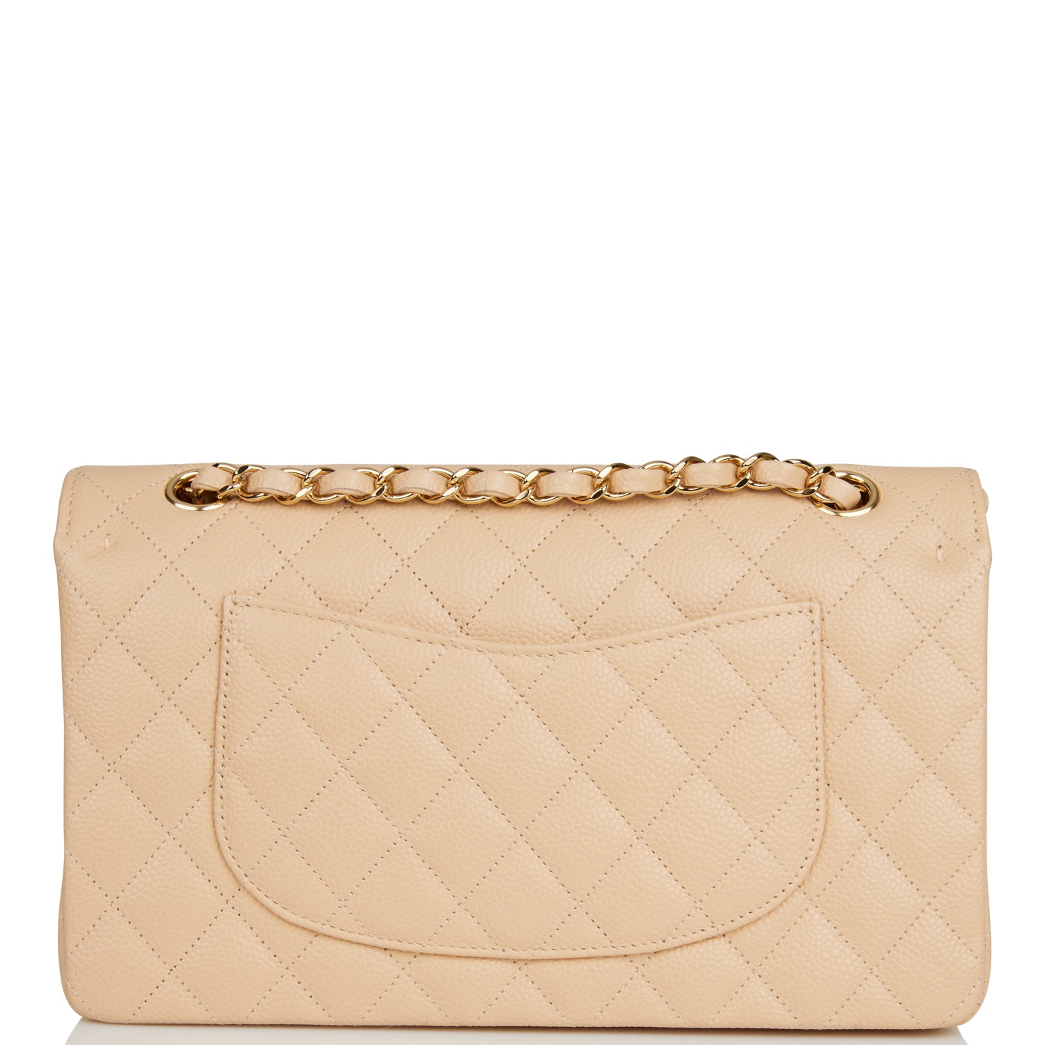 Chanel Medium Classic Double Flap Bag Beige Quilted Caviar Gold Hardware
