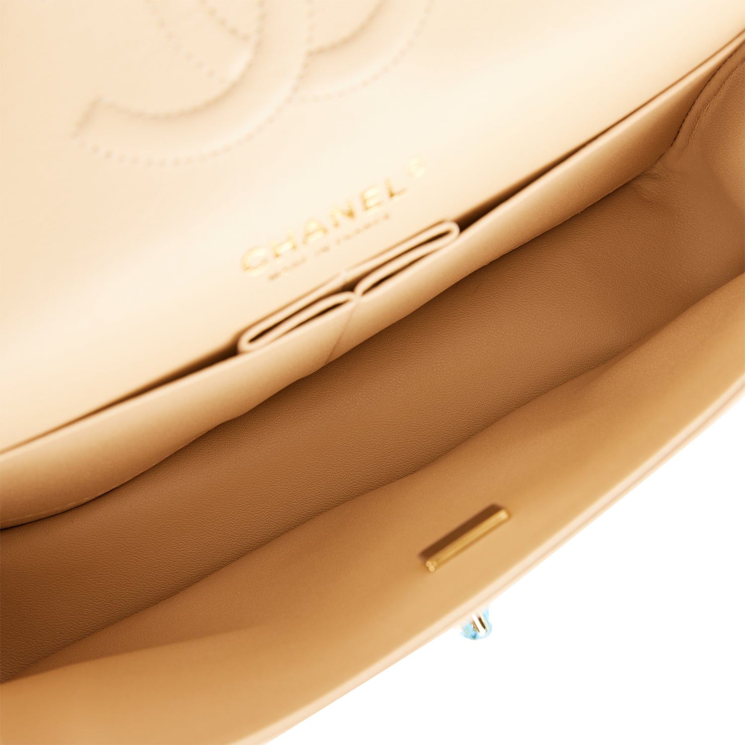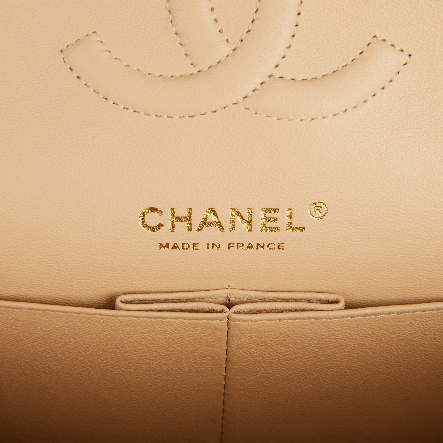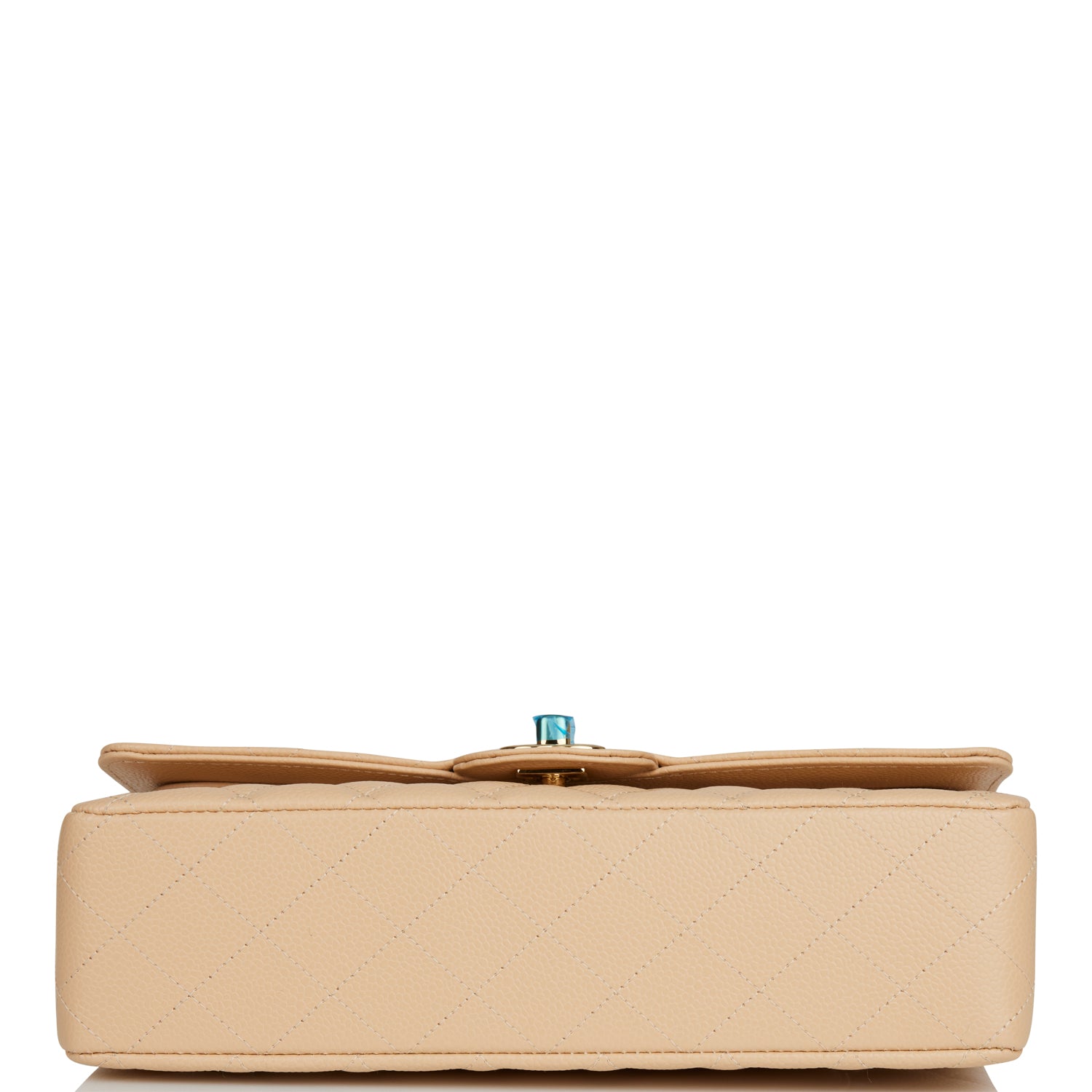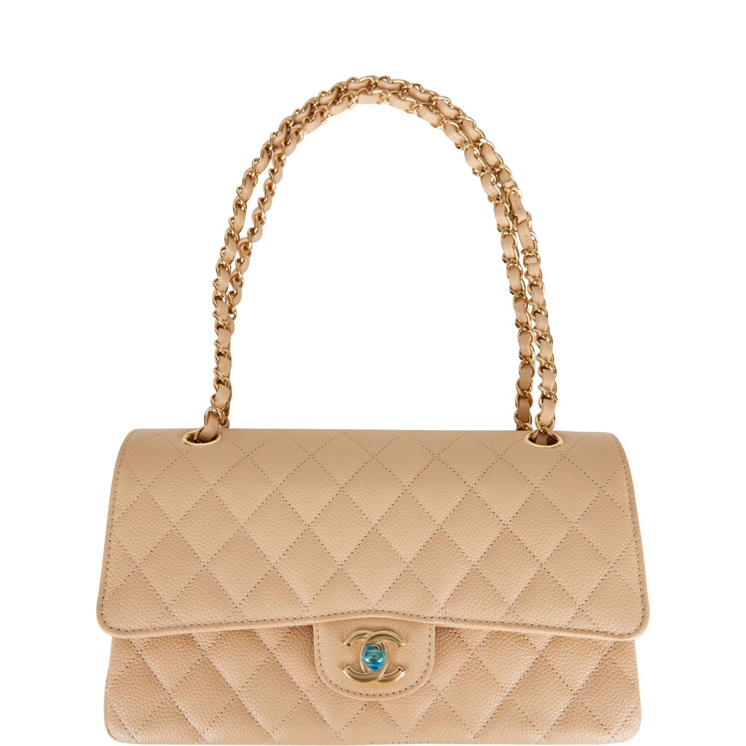 Chanel Medium Classic Double Flap Bag Beige Quilted Caviar Gold Hardware