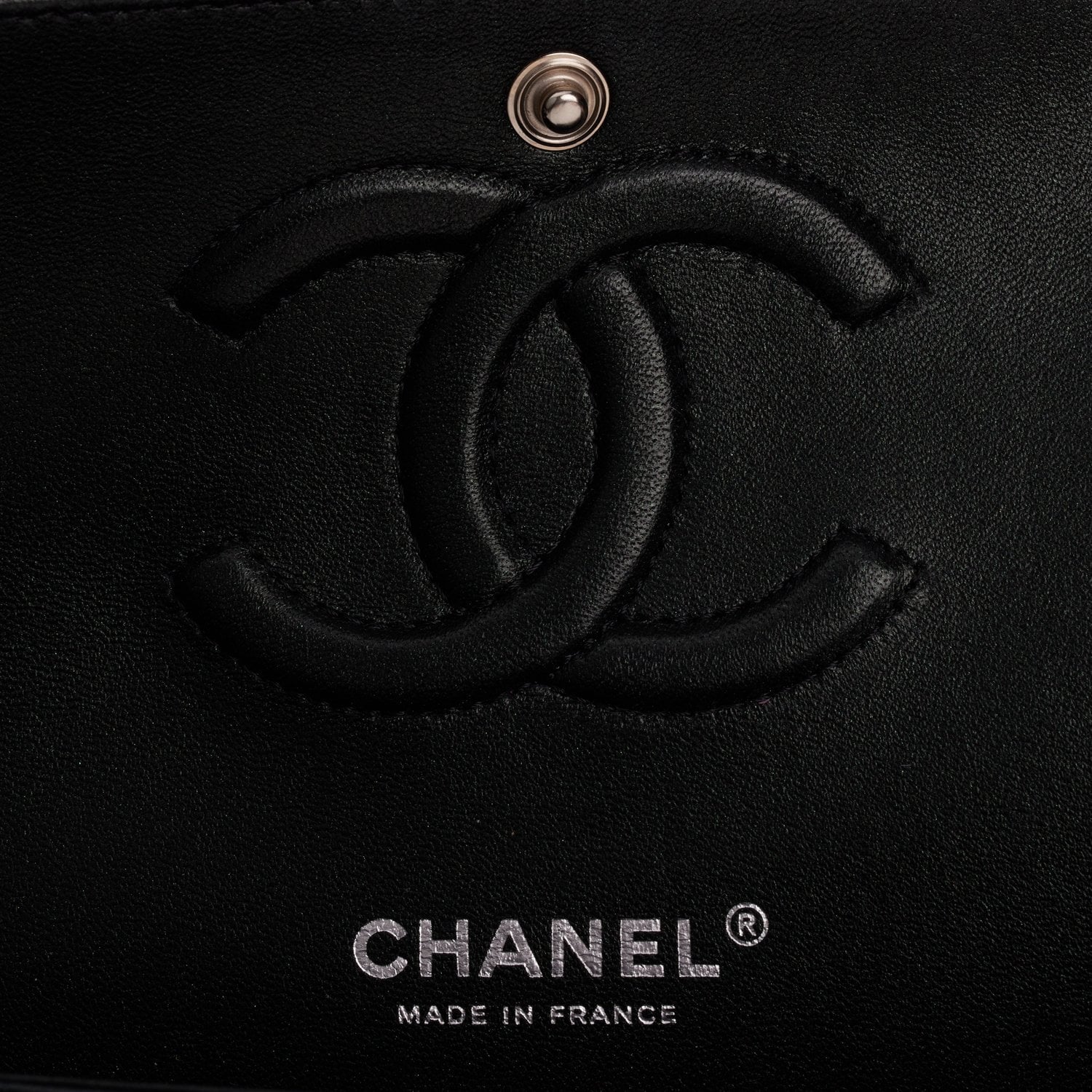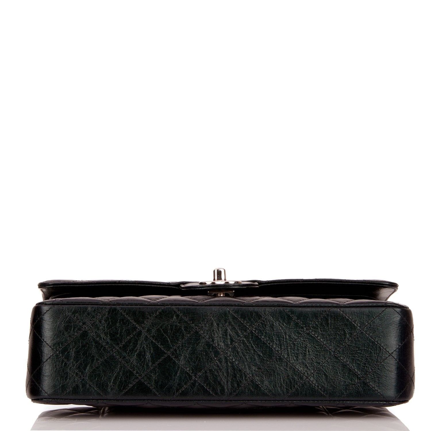 Chanel Medium Classic Double Flap Bag Black Iridescent Quilted Crumpled Calfskin Silver Hardware