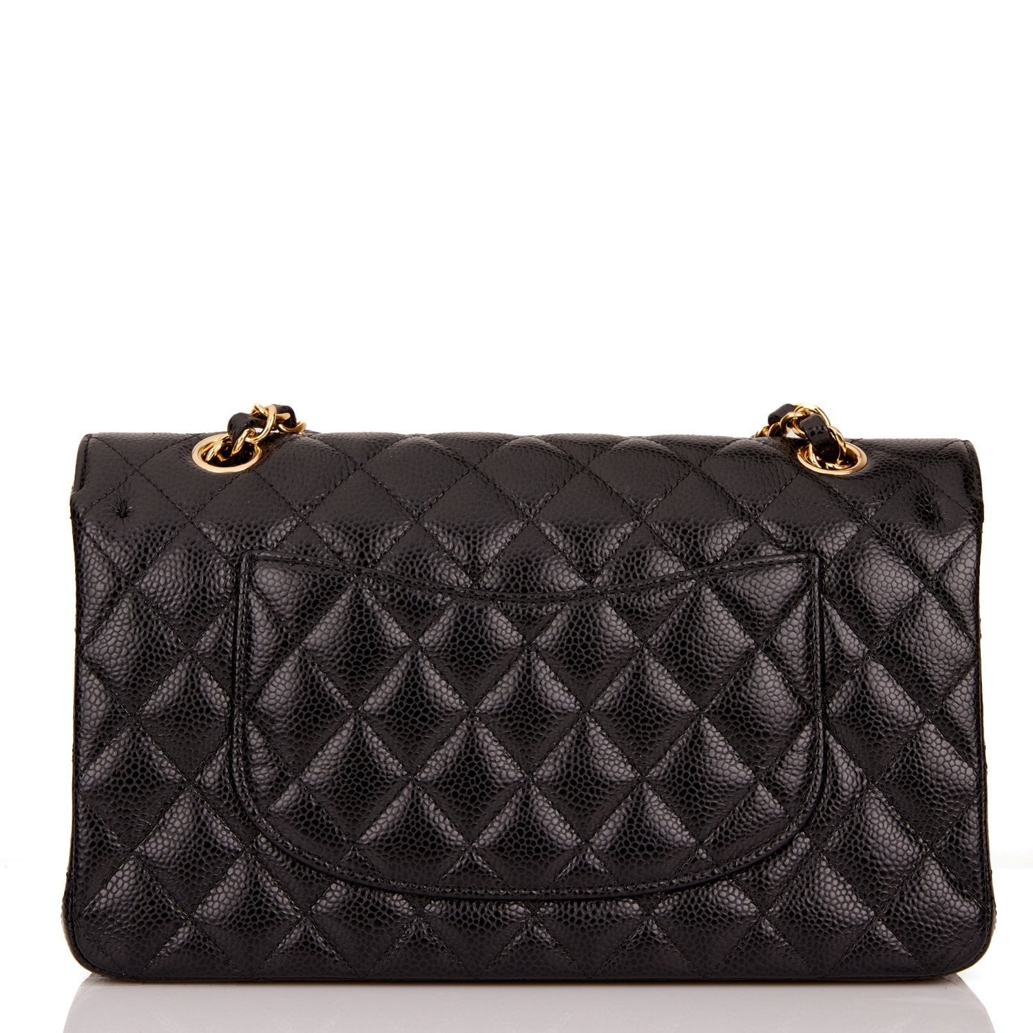 Chanel Medium Classic Double Flap Bag Black Quilted Caviar Gold Hardware