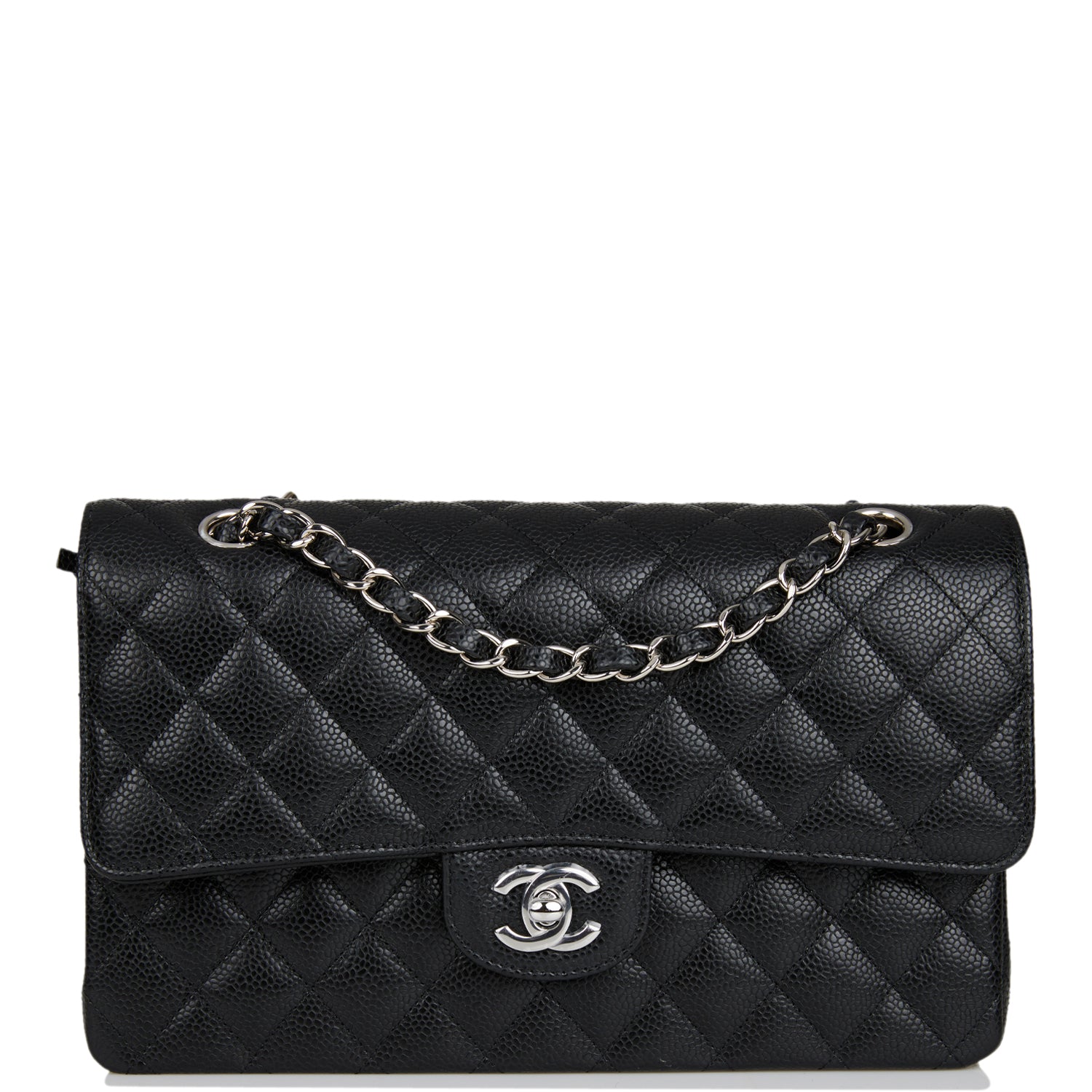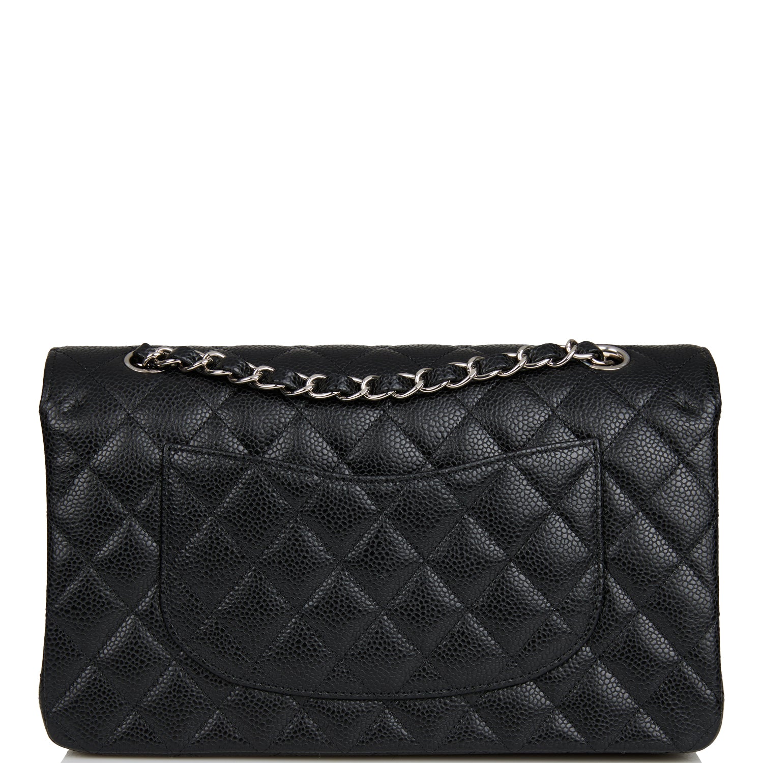 Chanel Medium Classic Double Flap Bag Black Quilted Caviar Silver Hardware