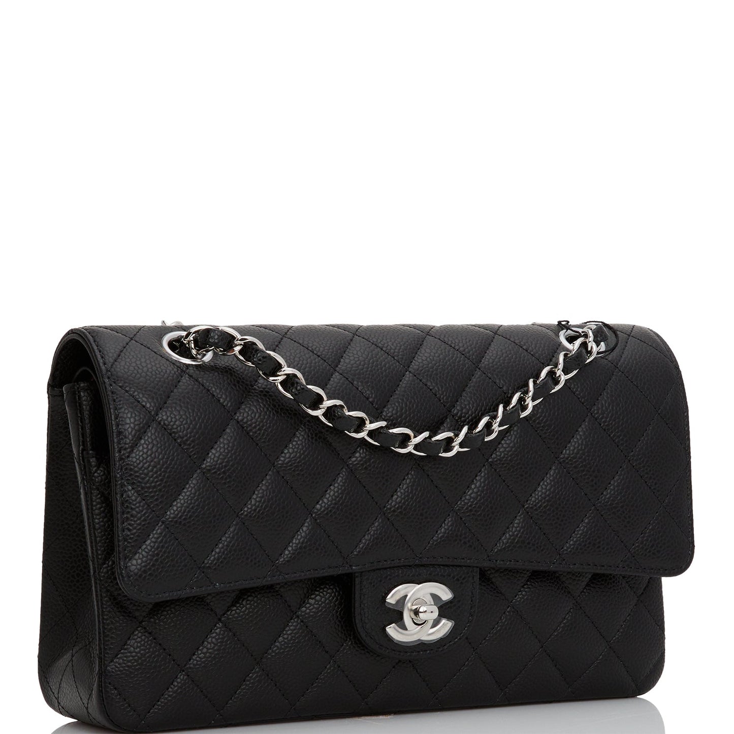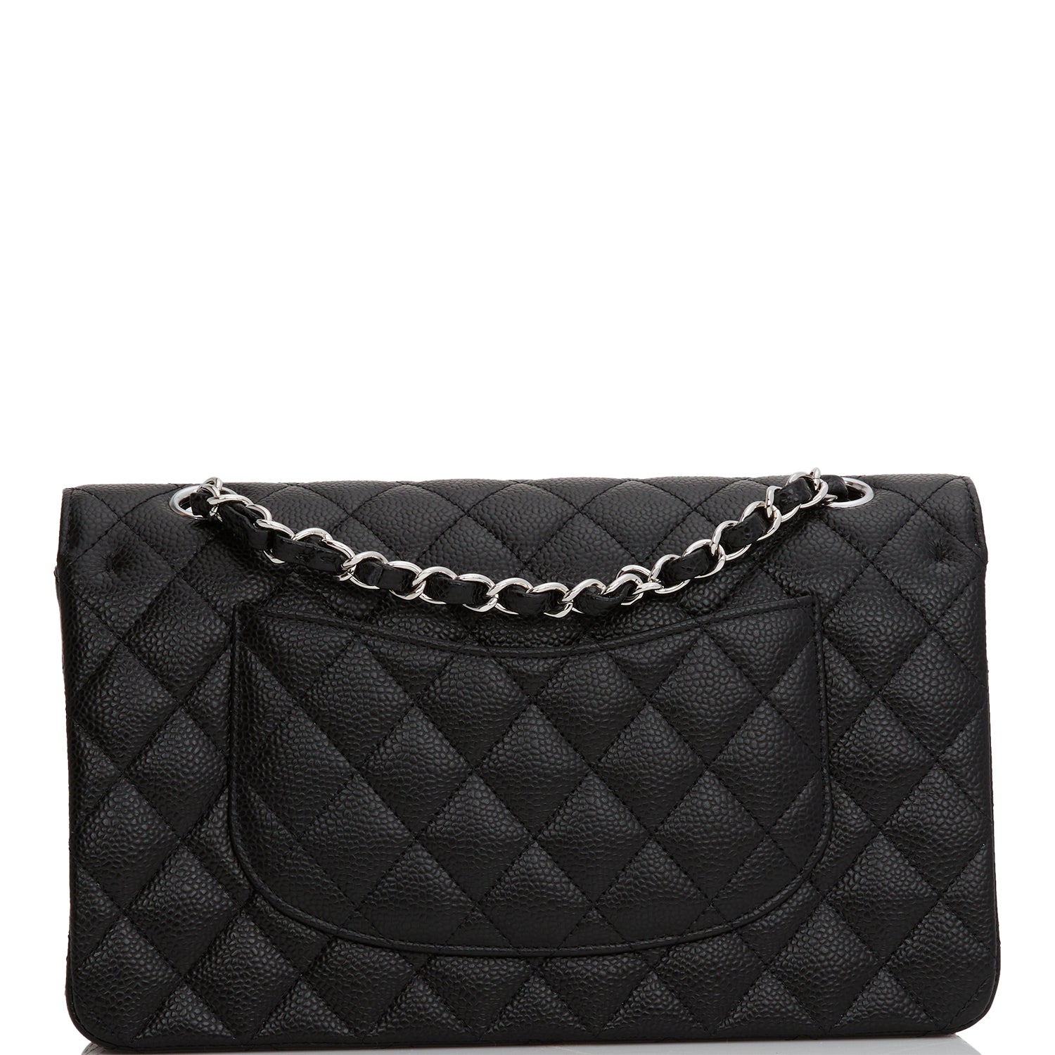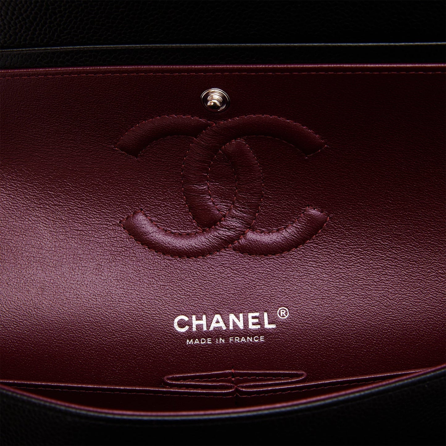Chanel Medium Classic Double Flap Bag Black Quilted Caviar Silver Hardware
