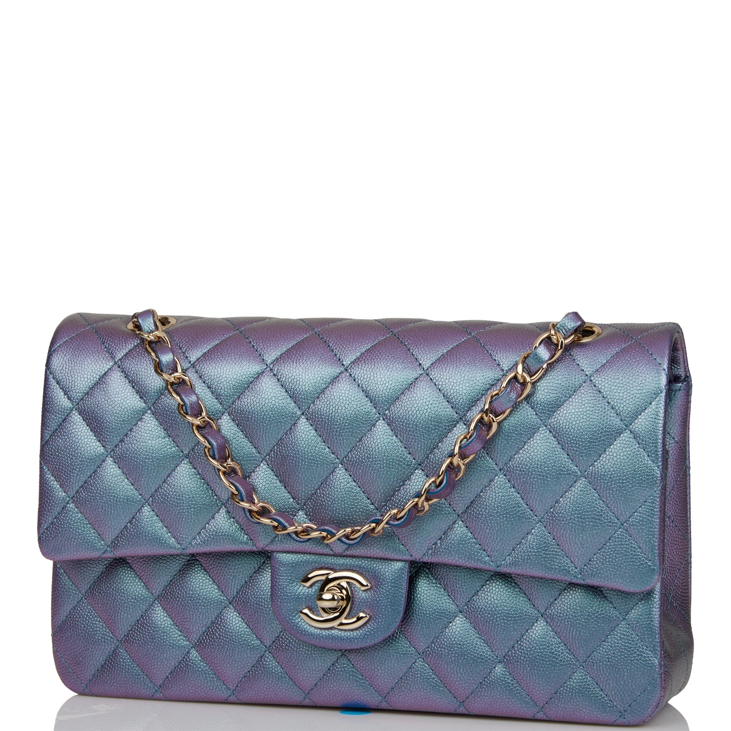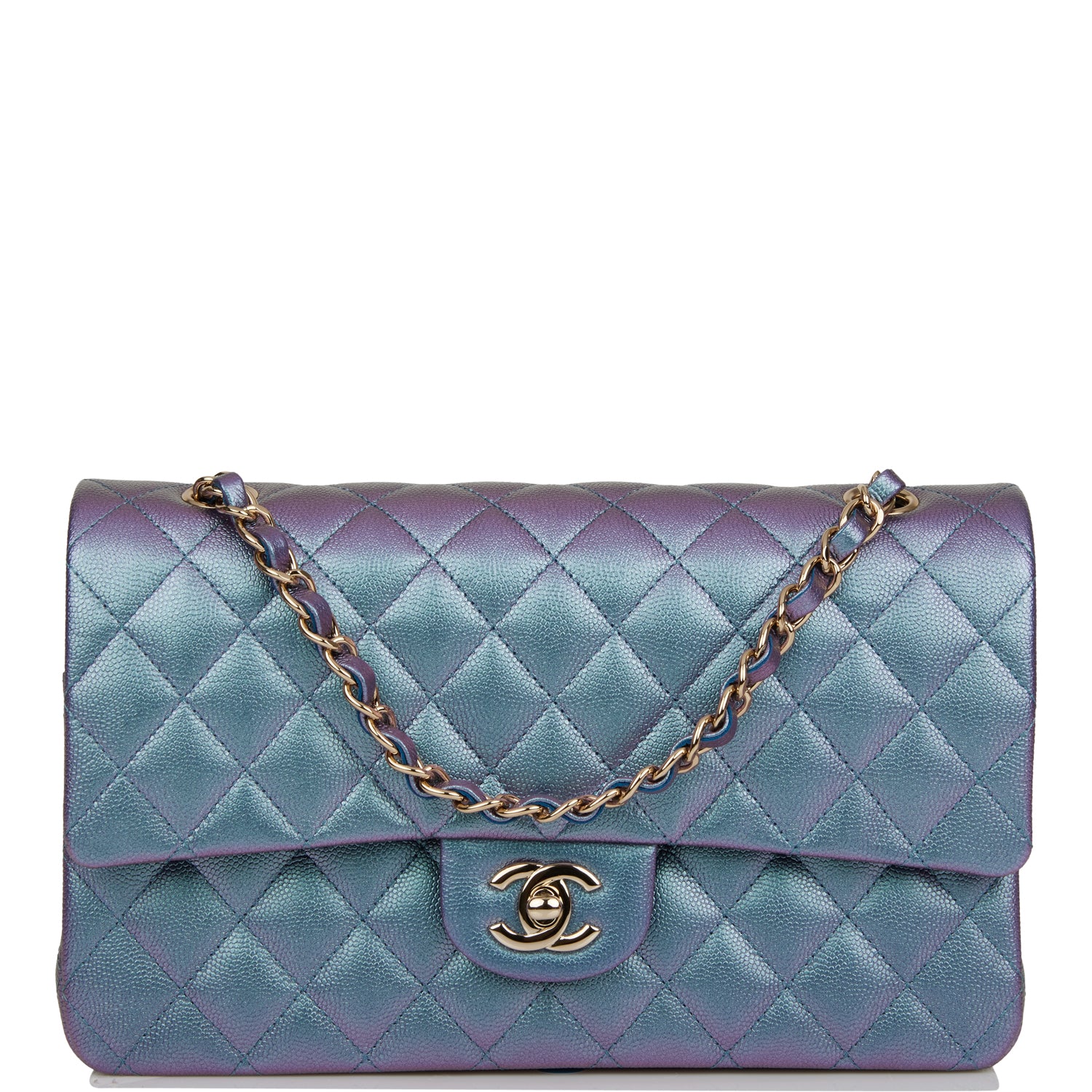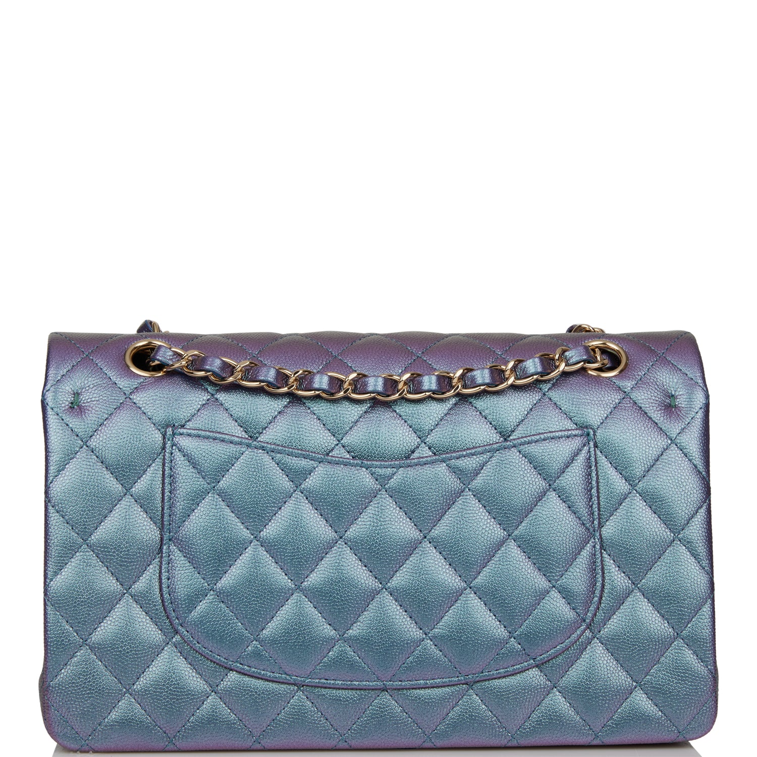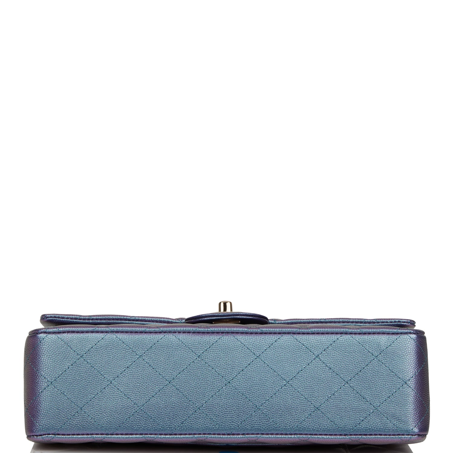Chanel Medium Classic Double Flap Bag Blue Iridescent Caviar Light Gold Hardware
