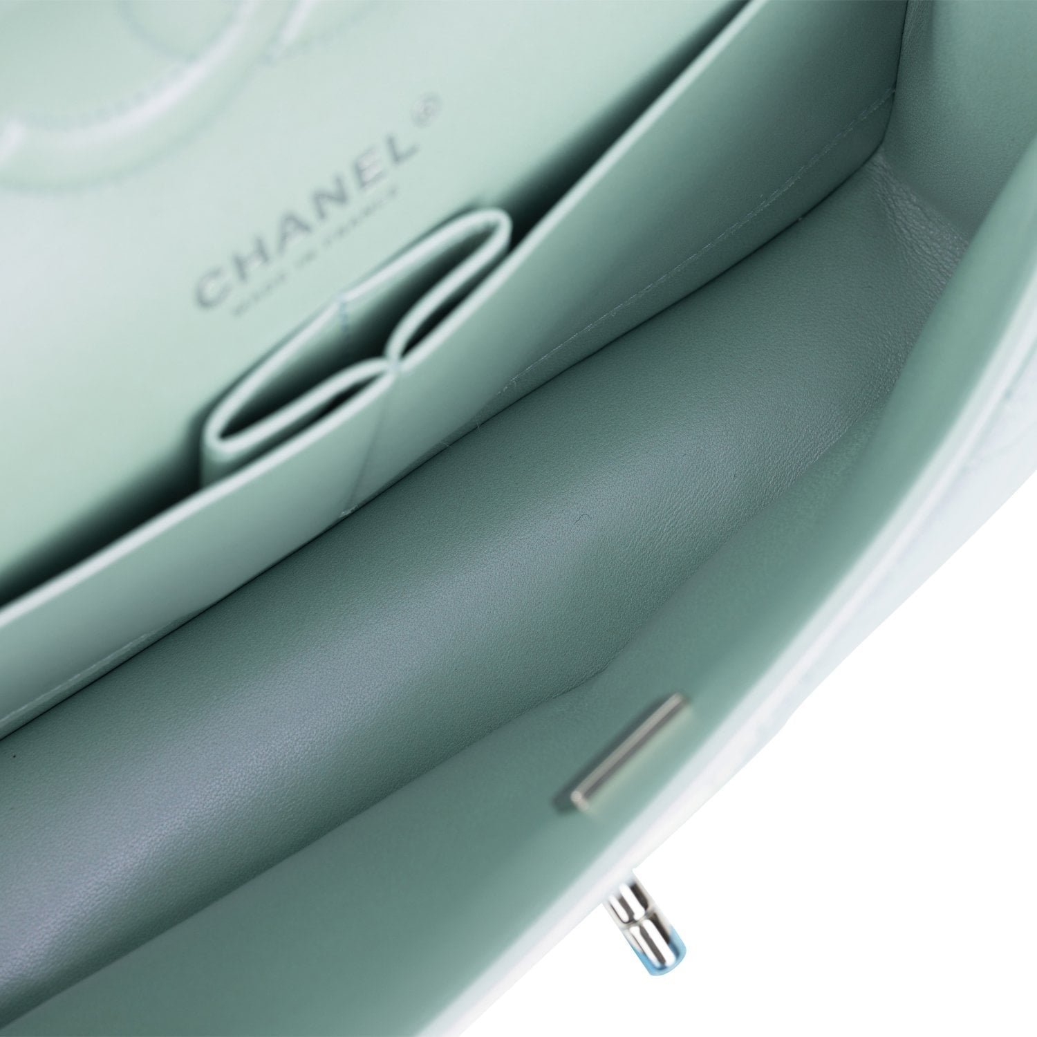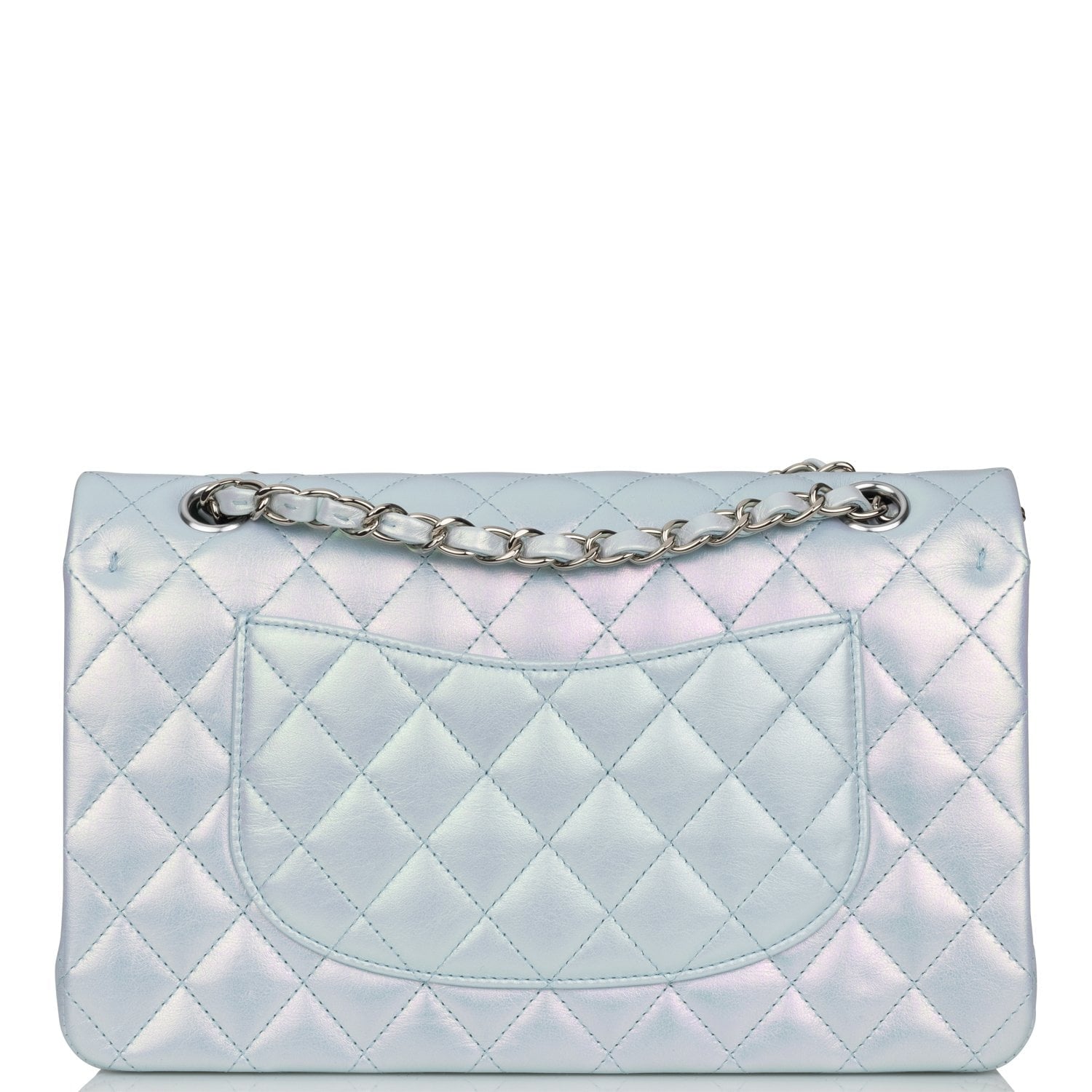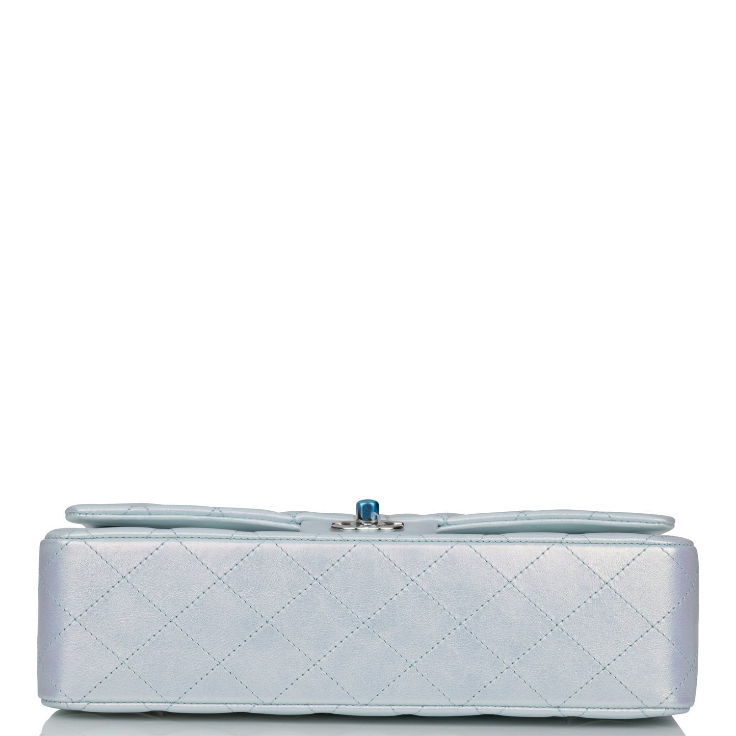 Chanel Medium Classic Double Flap Bag Blue Iridescent Lambskin Silver Hardware