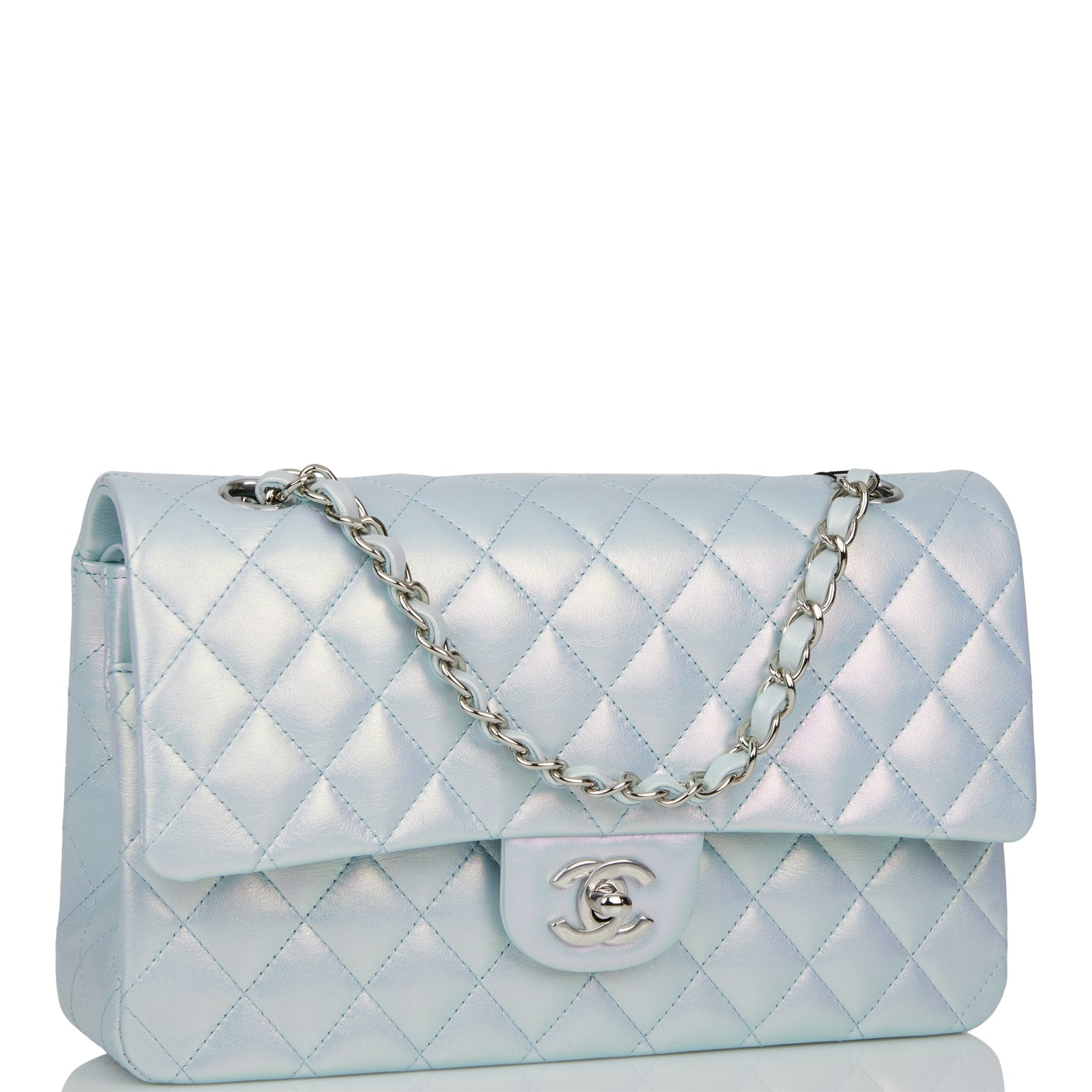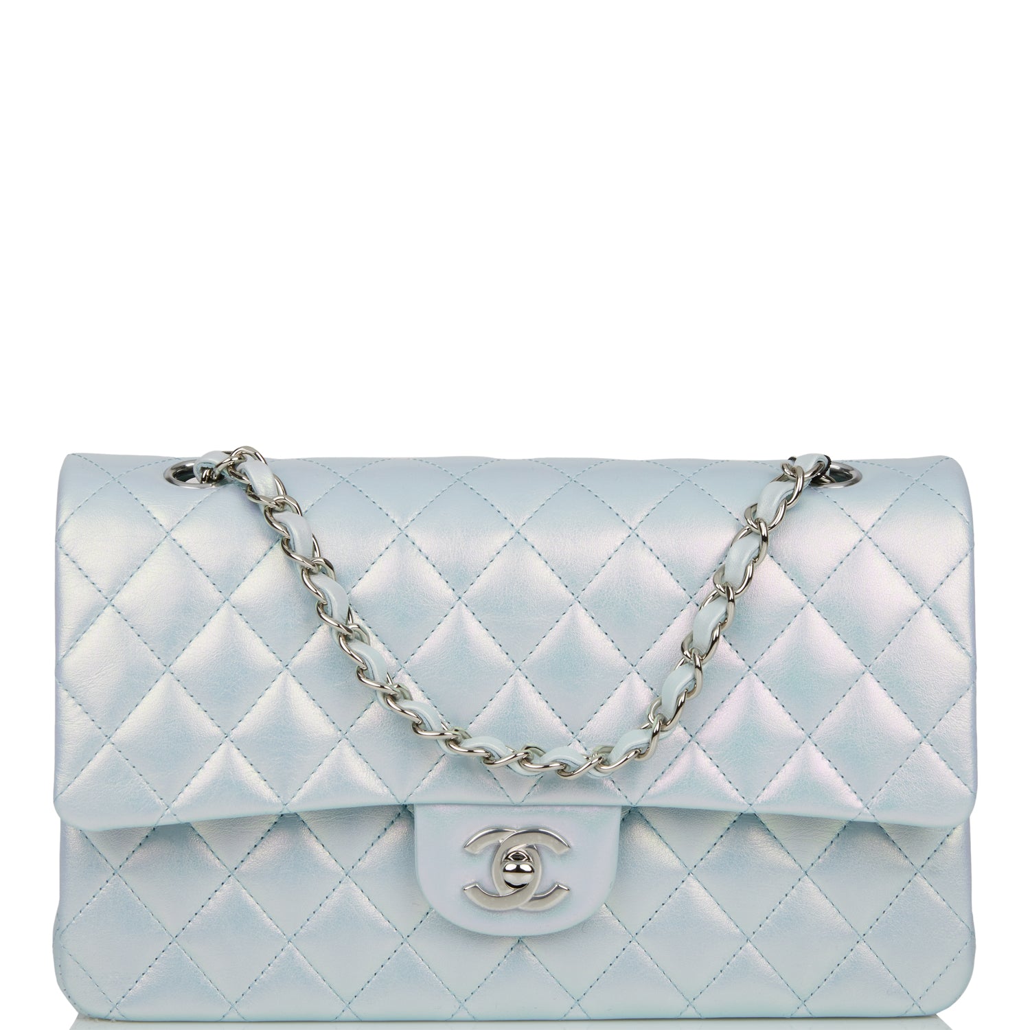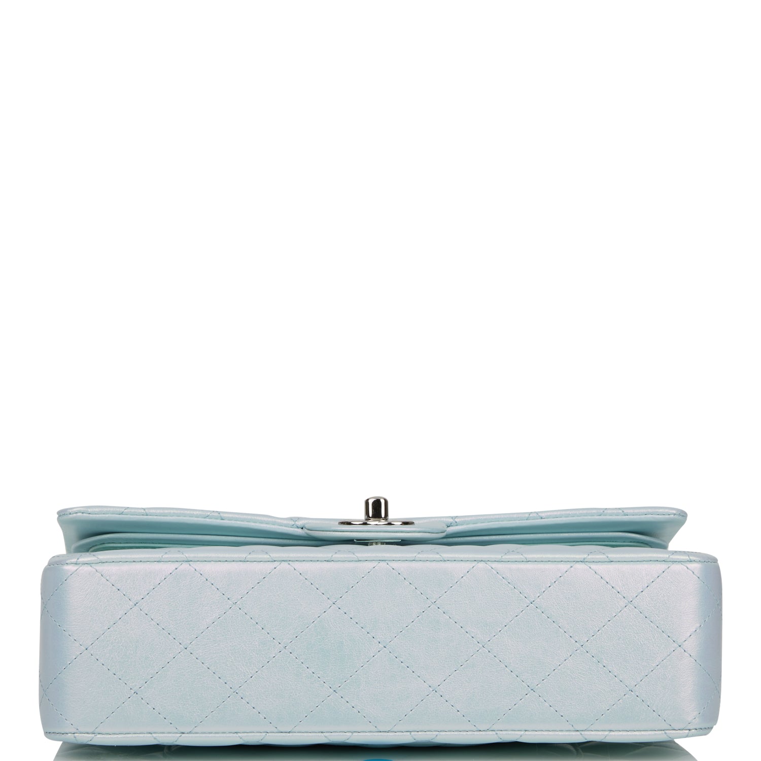 Chanel Medium Classic Double Flap Bag Blue Iridescent Lambskin Silver Hardware