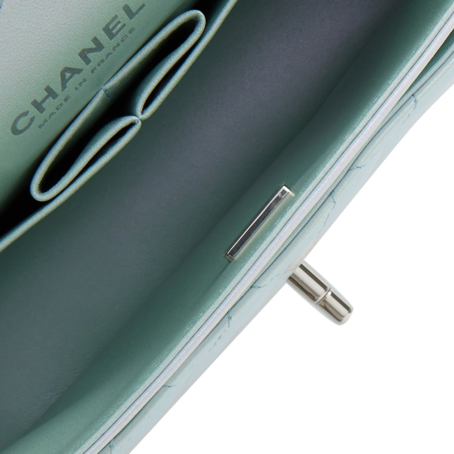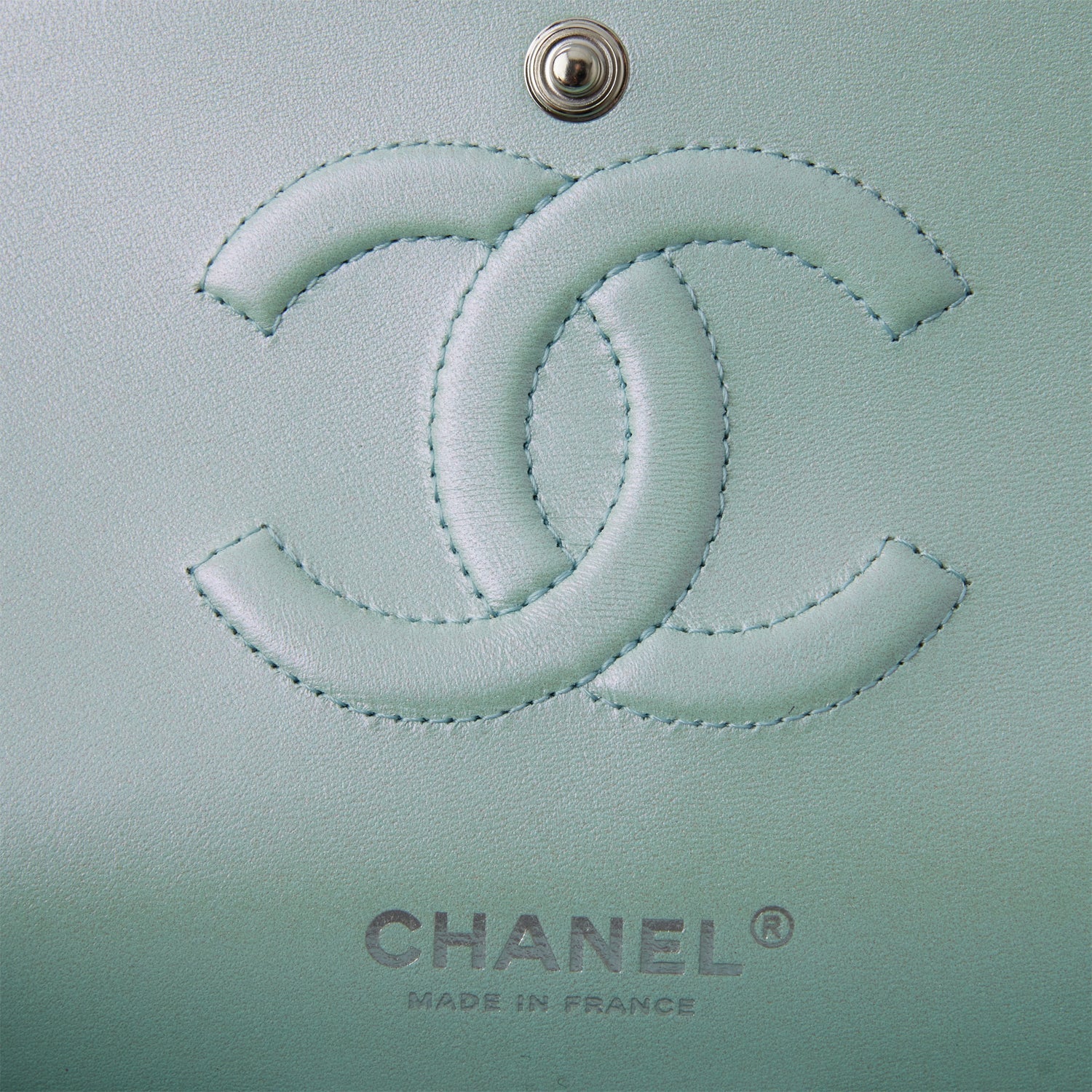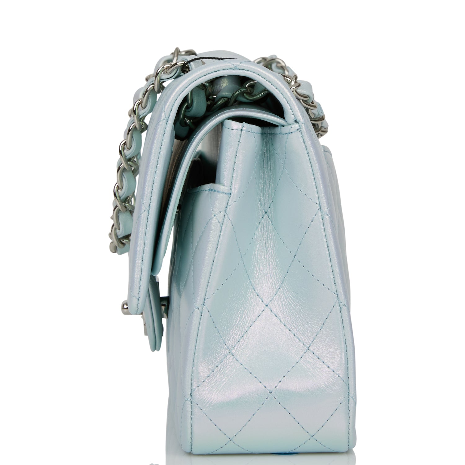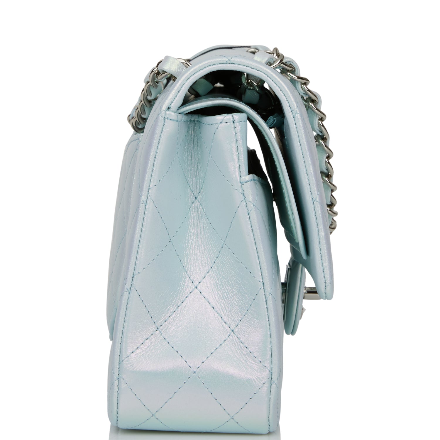 Chanel Medium Classic Double Flap Bag Blue Iridescent Lambskin Silver Hardware