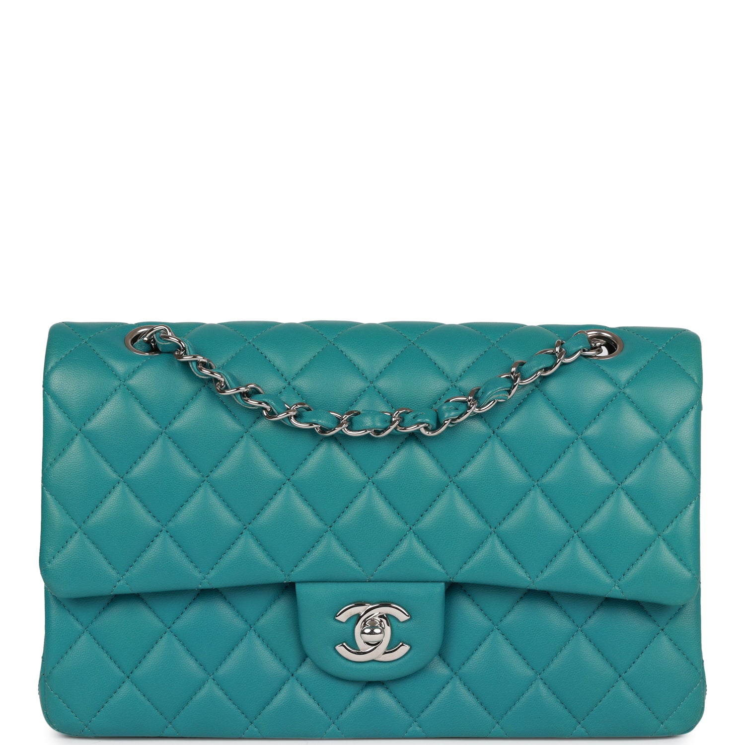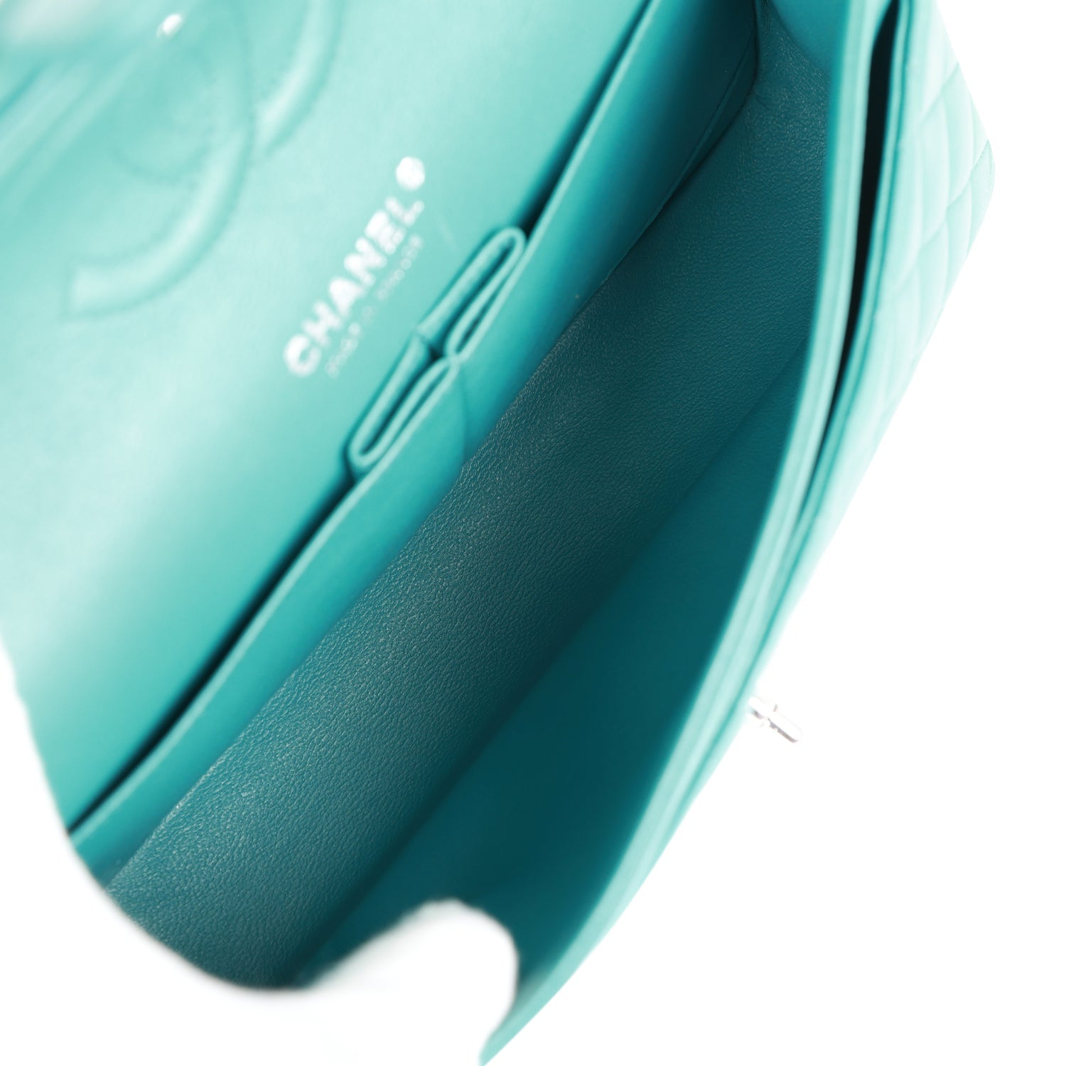 Chanel Medium Classic Double Flap Bag Blue Lambskin Silver Hardware