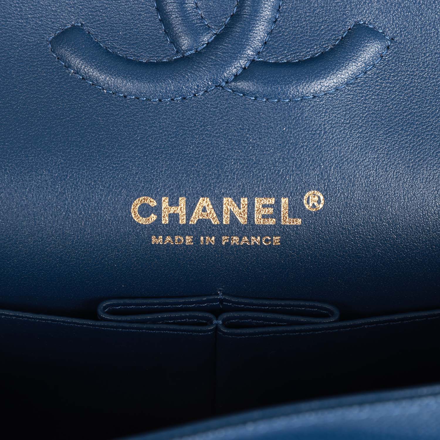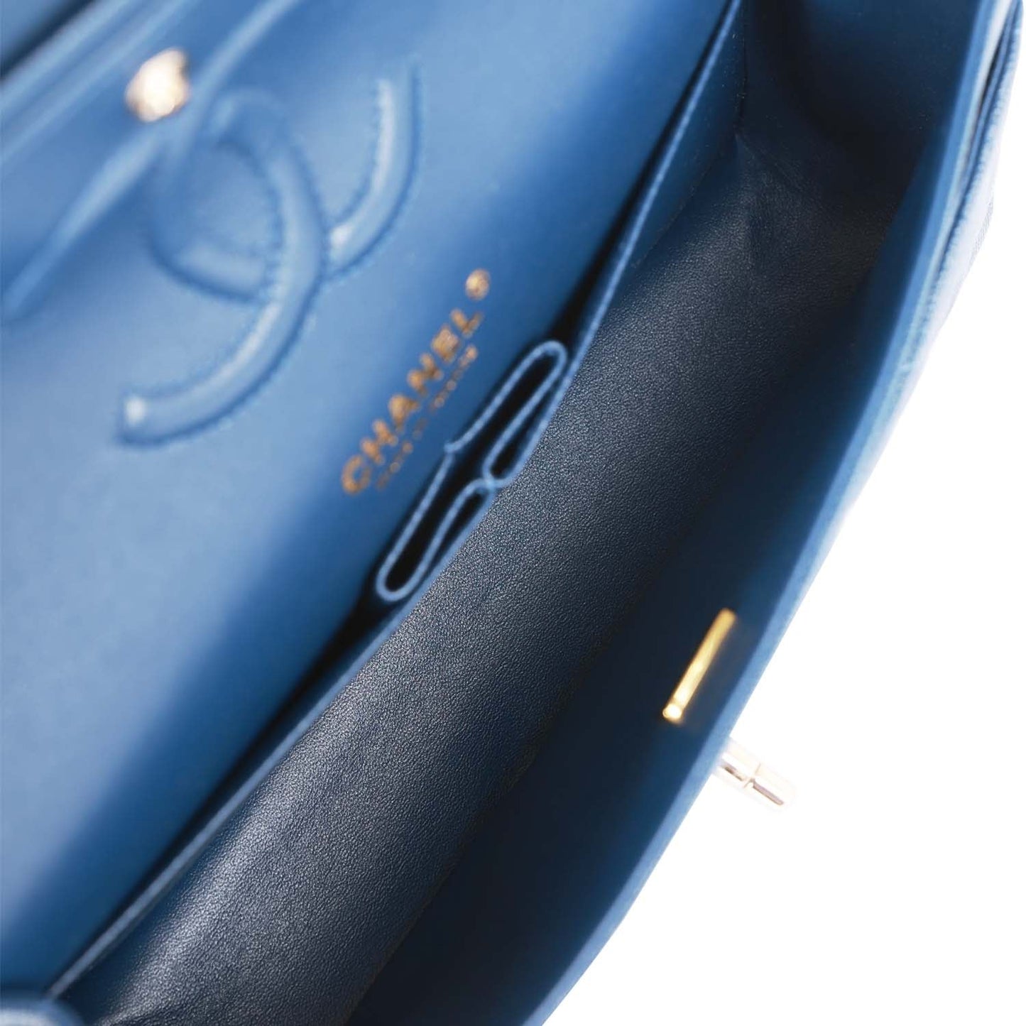 Chanel Medium Classic Double Flap Bag Blue Caviar Light Gold Hardware