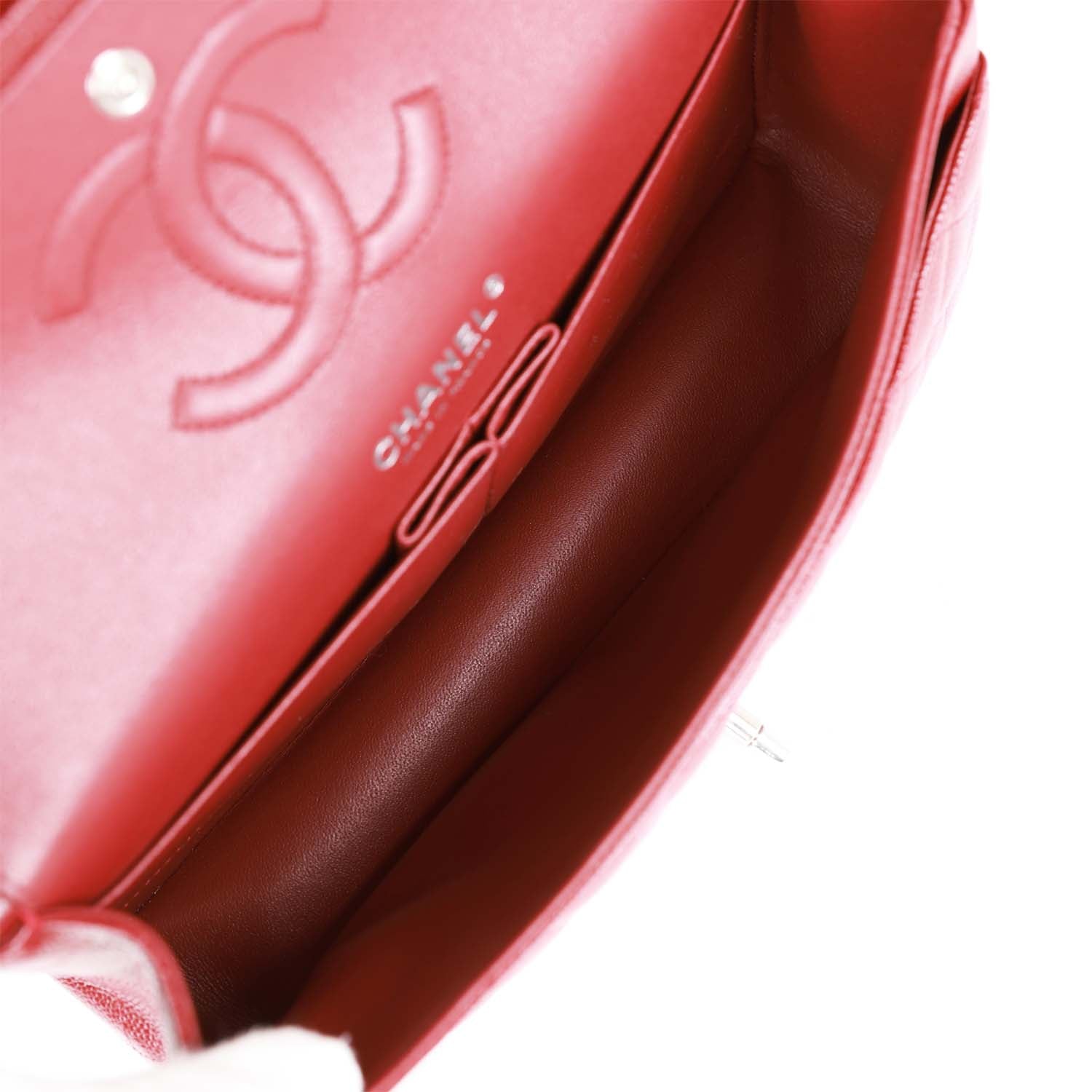 Chanel Medium Classic Double Flap Bag Burgundy Caviar Silver Hardware