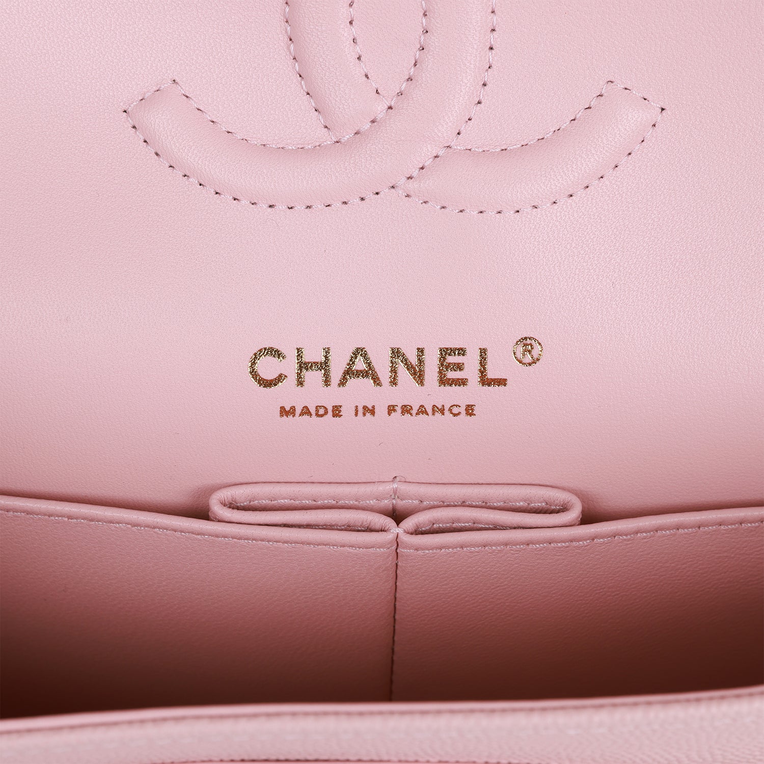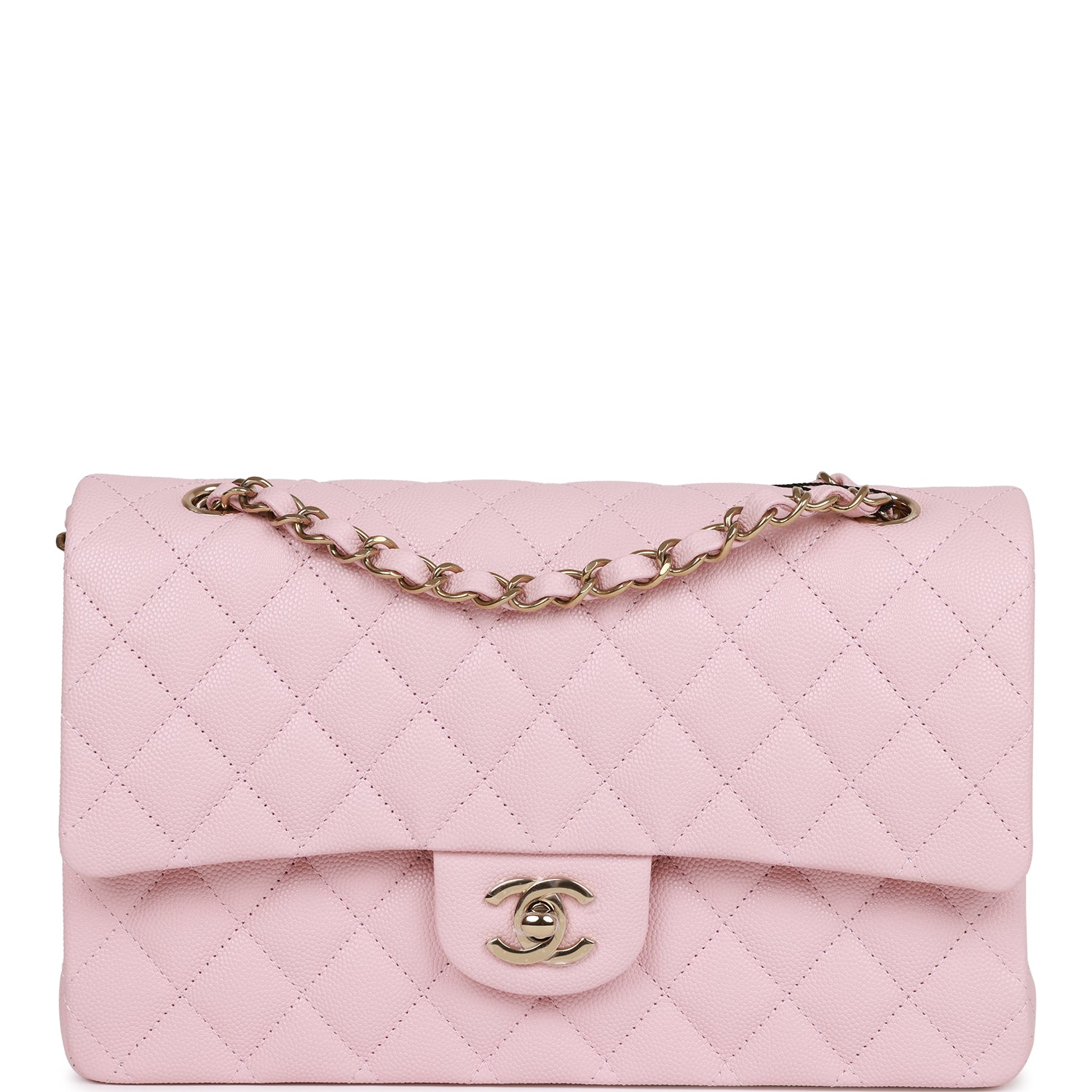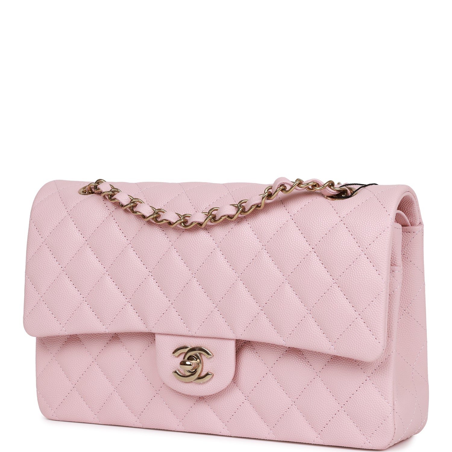 Chanel Medium Classic Double Flap Bag Light Pink Caviar Light Gold Hardware