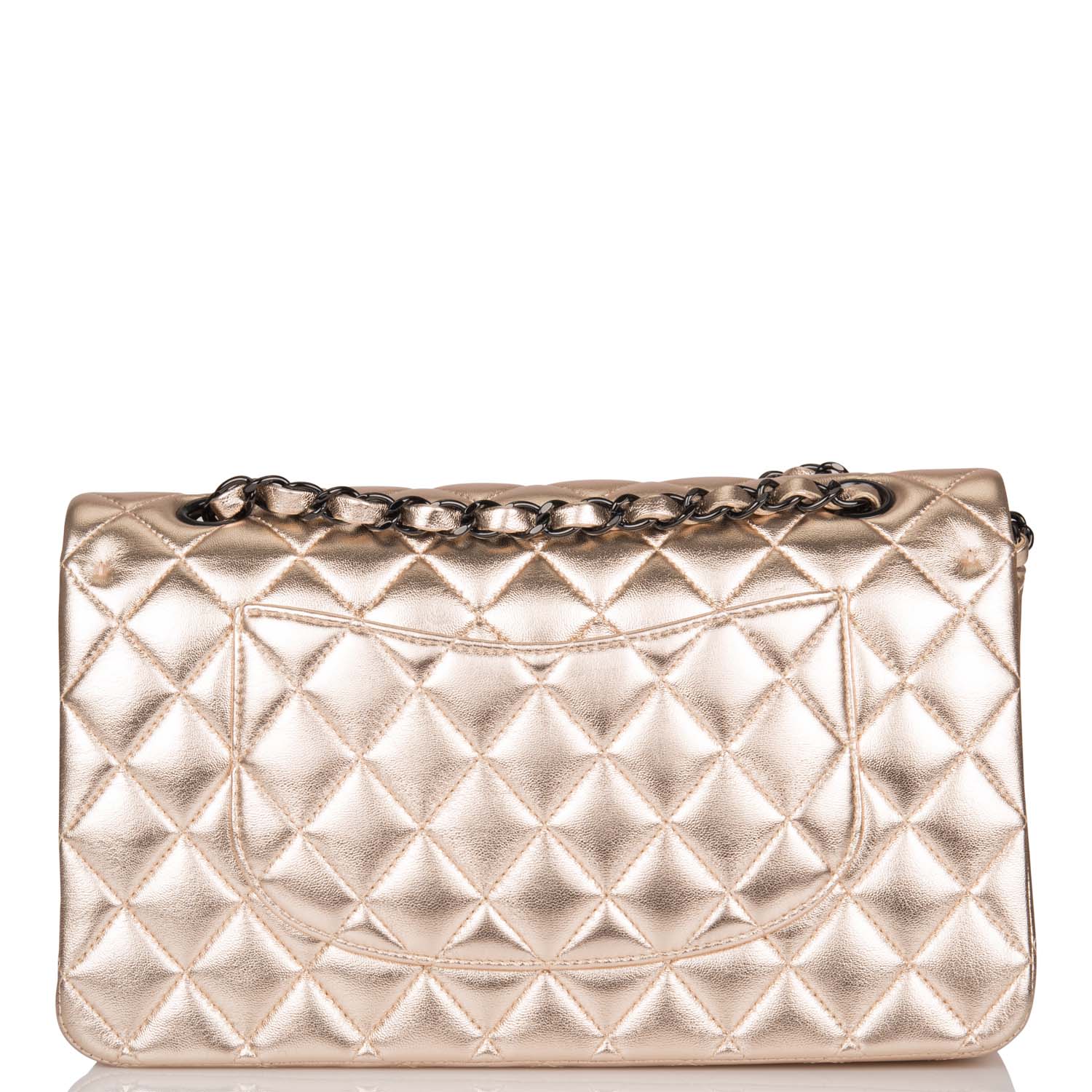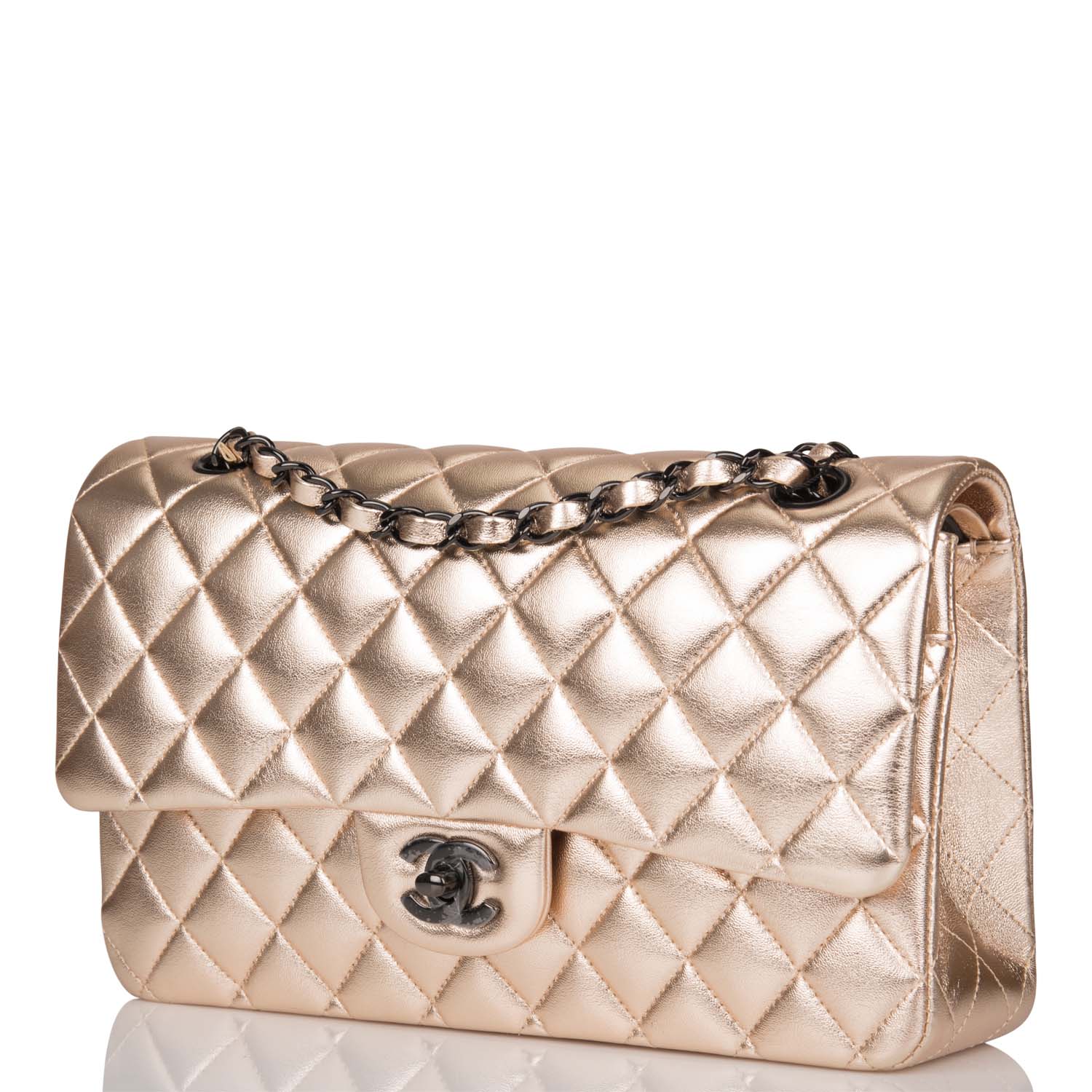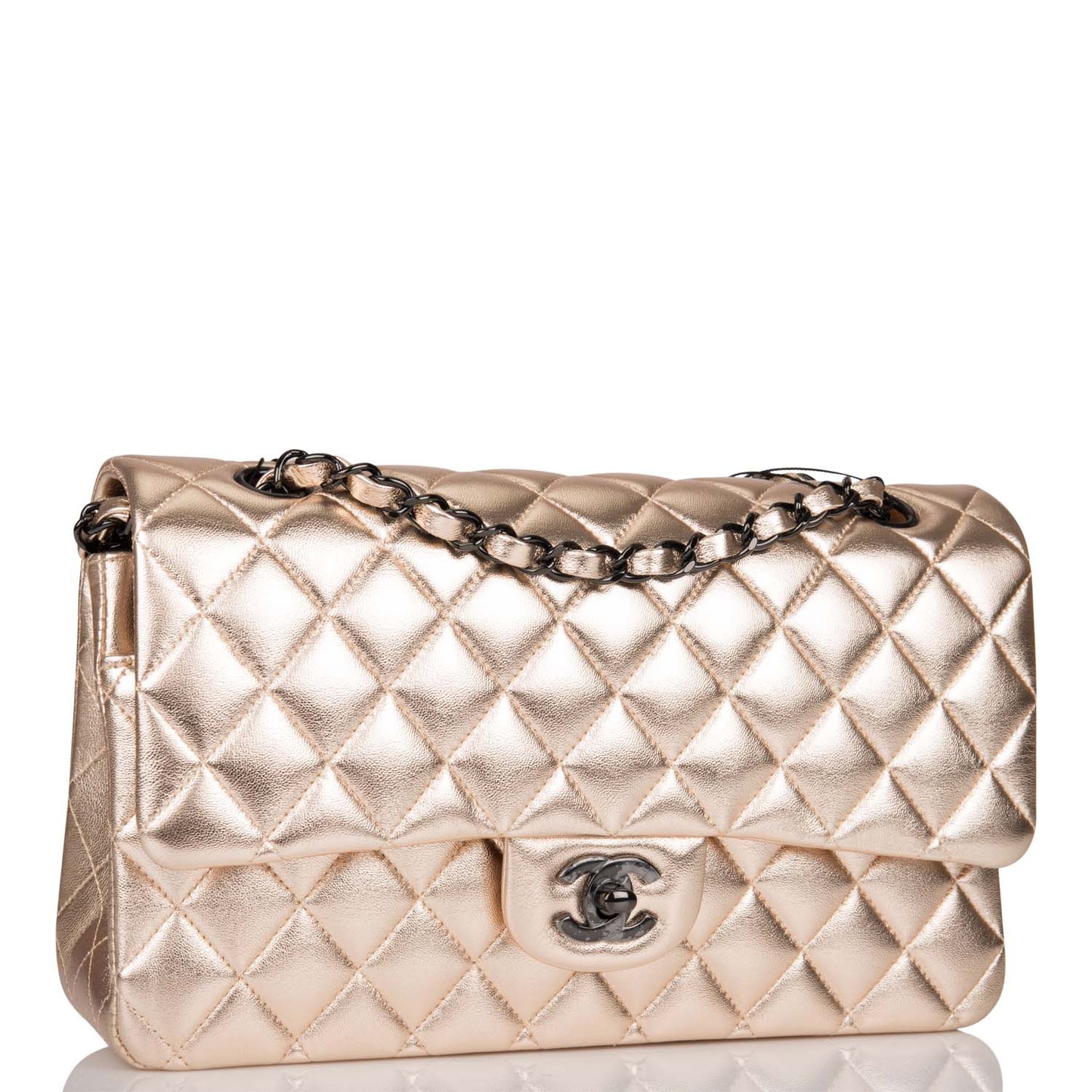 Chanel Medium Classic Double Flap Bag Metallic Gold Lambskin Black Hardware