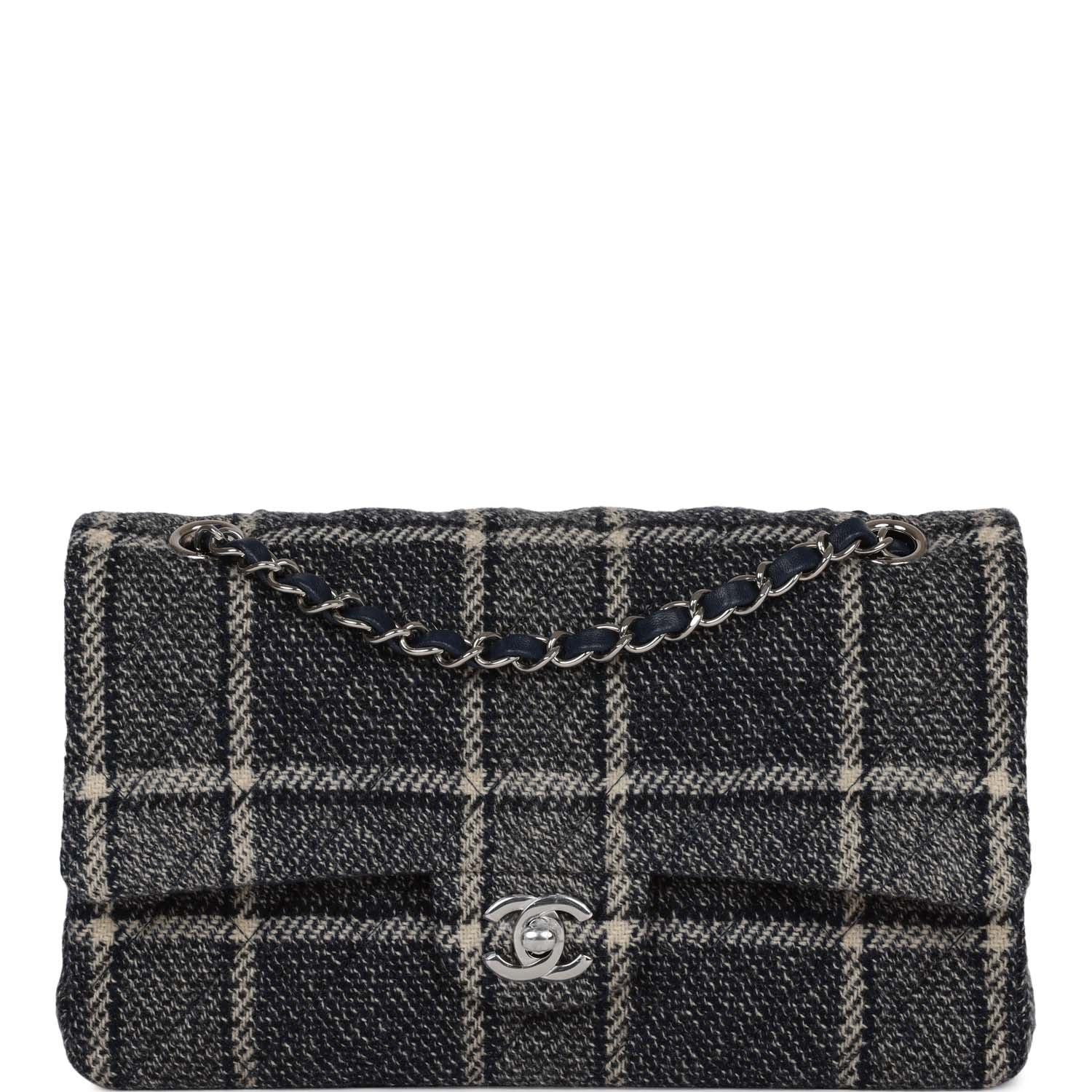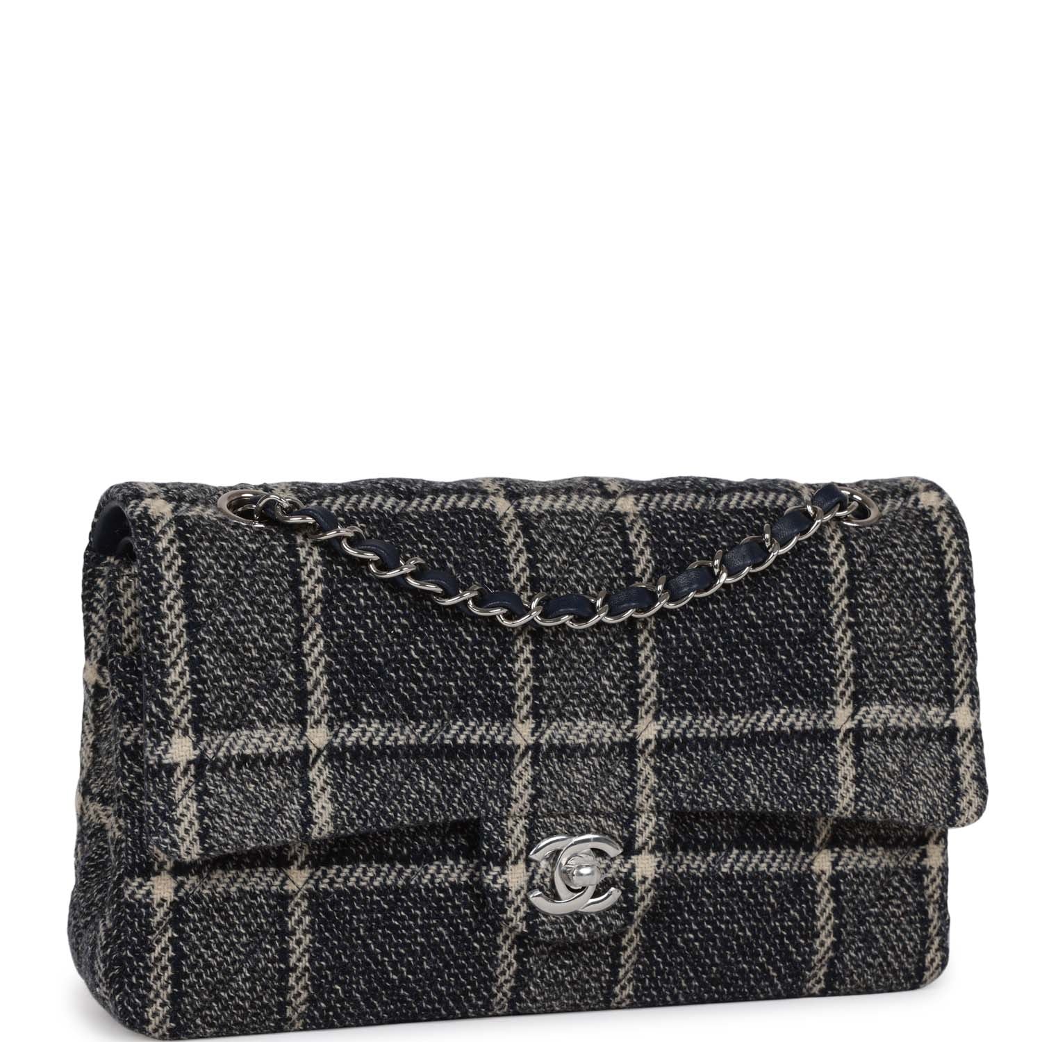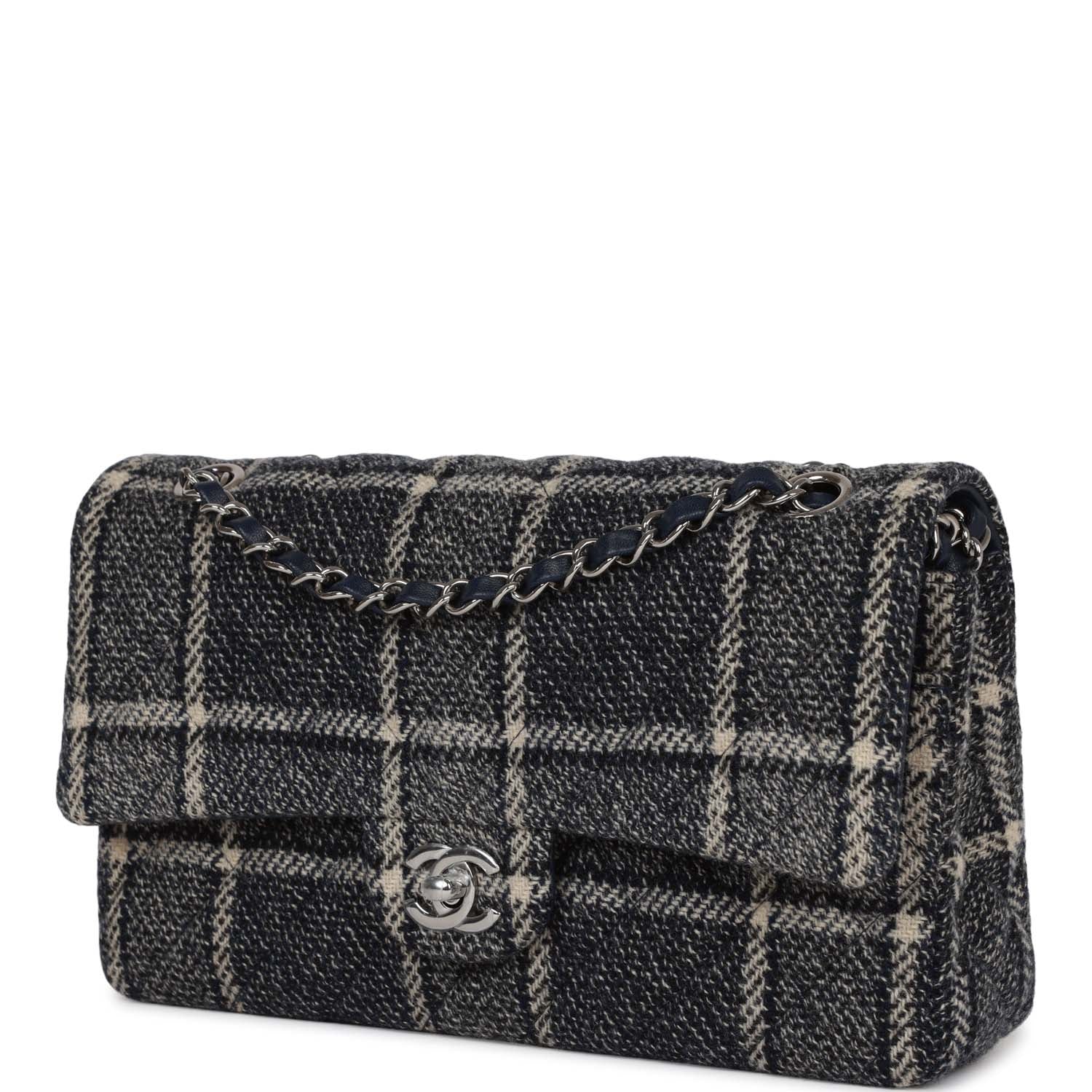 Chanel Medium Classic Double Flap Bag Navy Tweed Silver Hardware