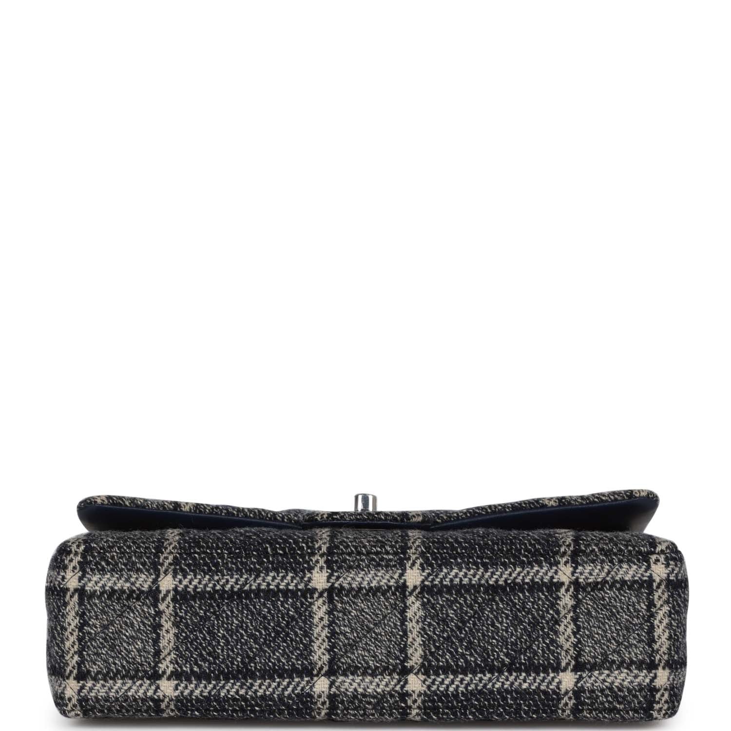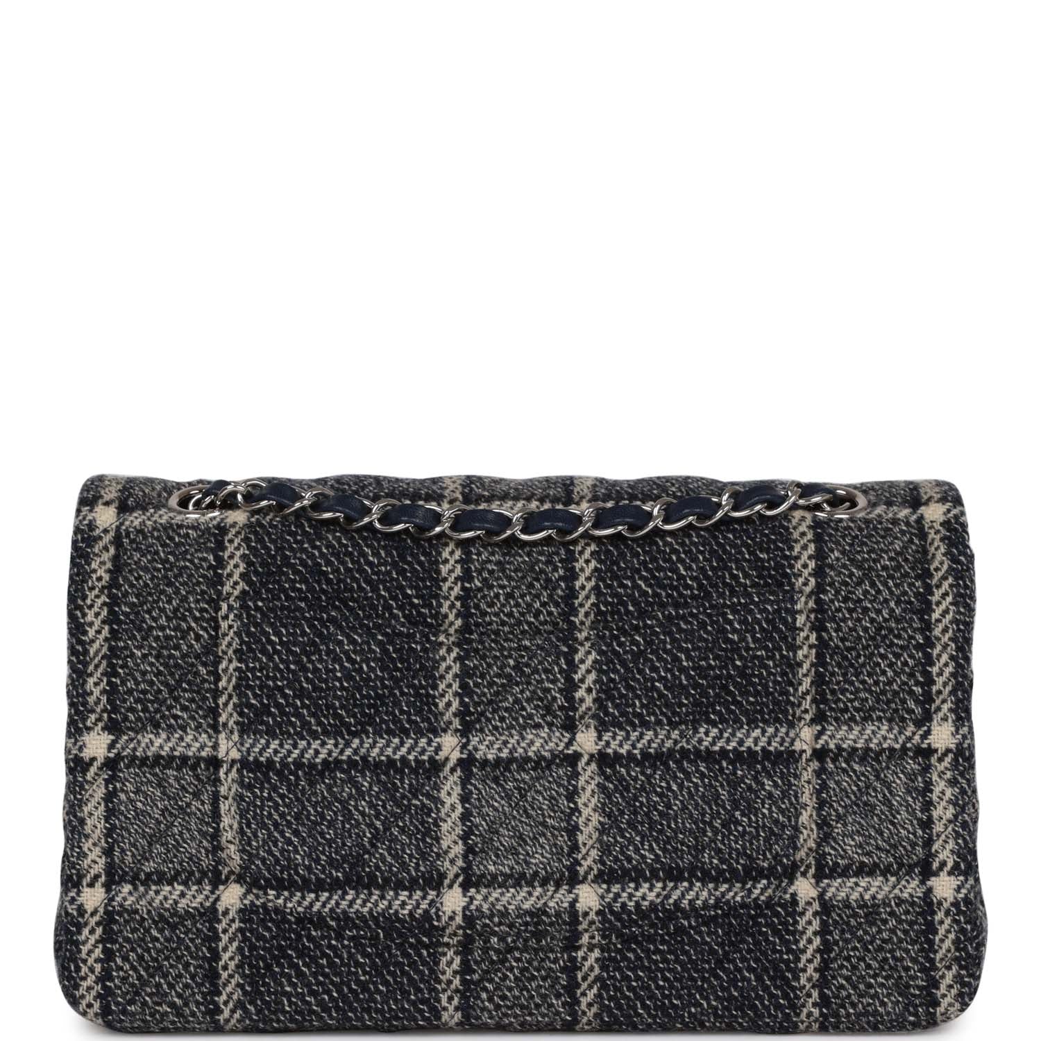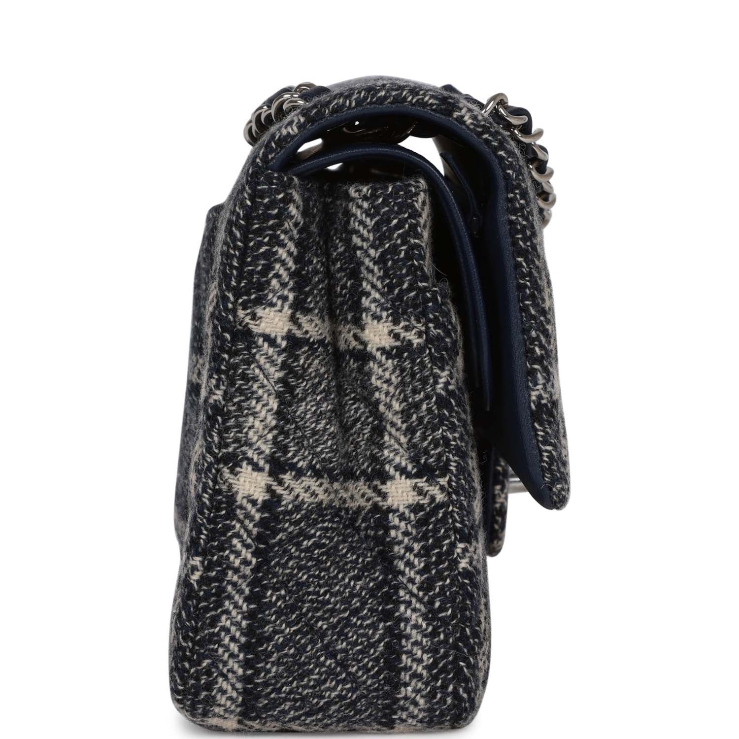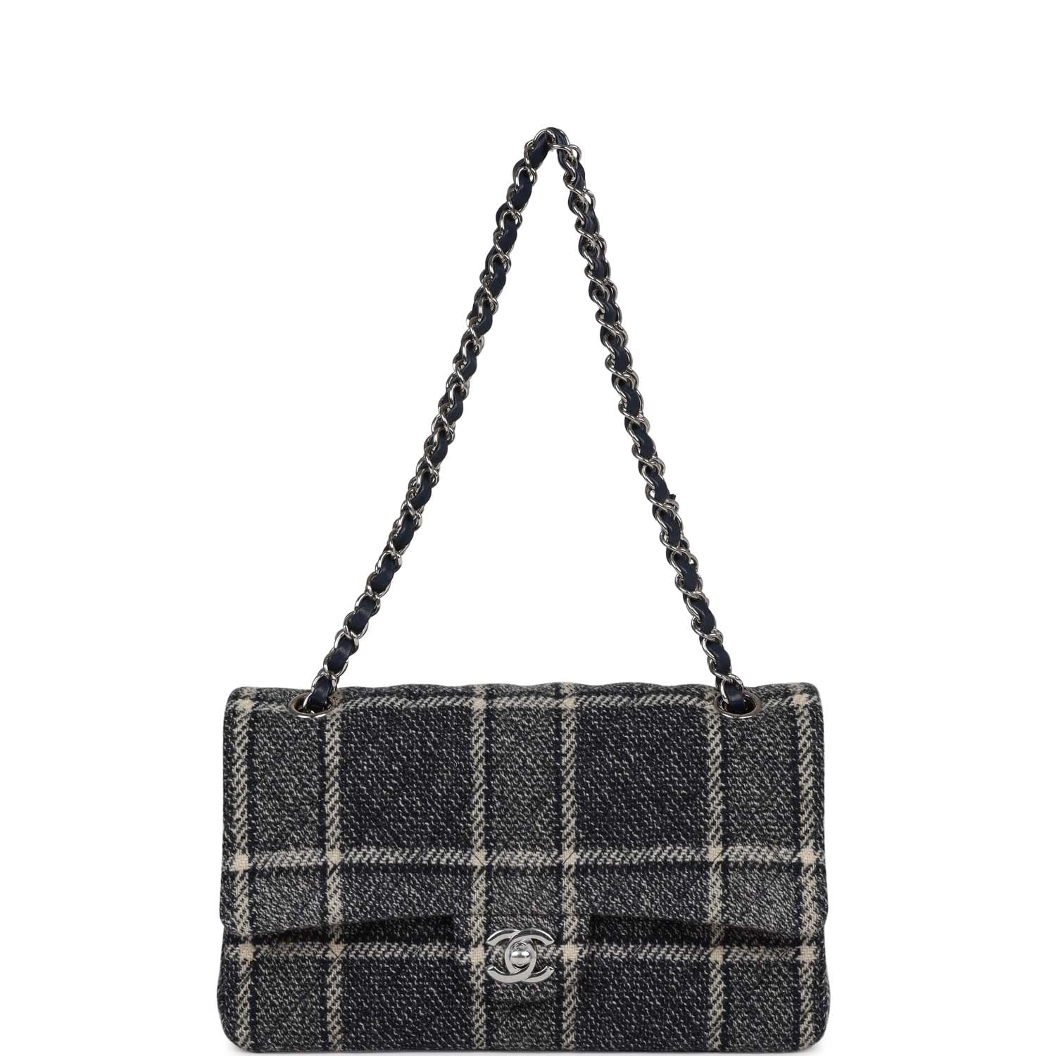 Chanel Medium Classic Double Flap Bag Navy Tweed Silver Hardware