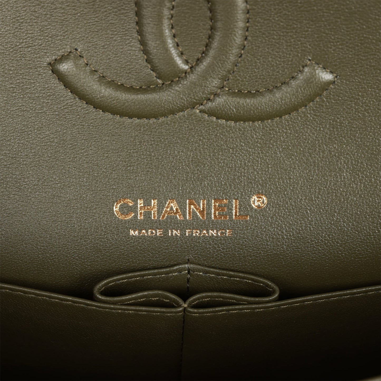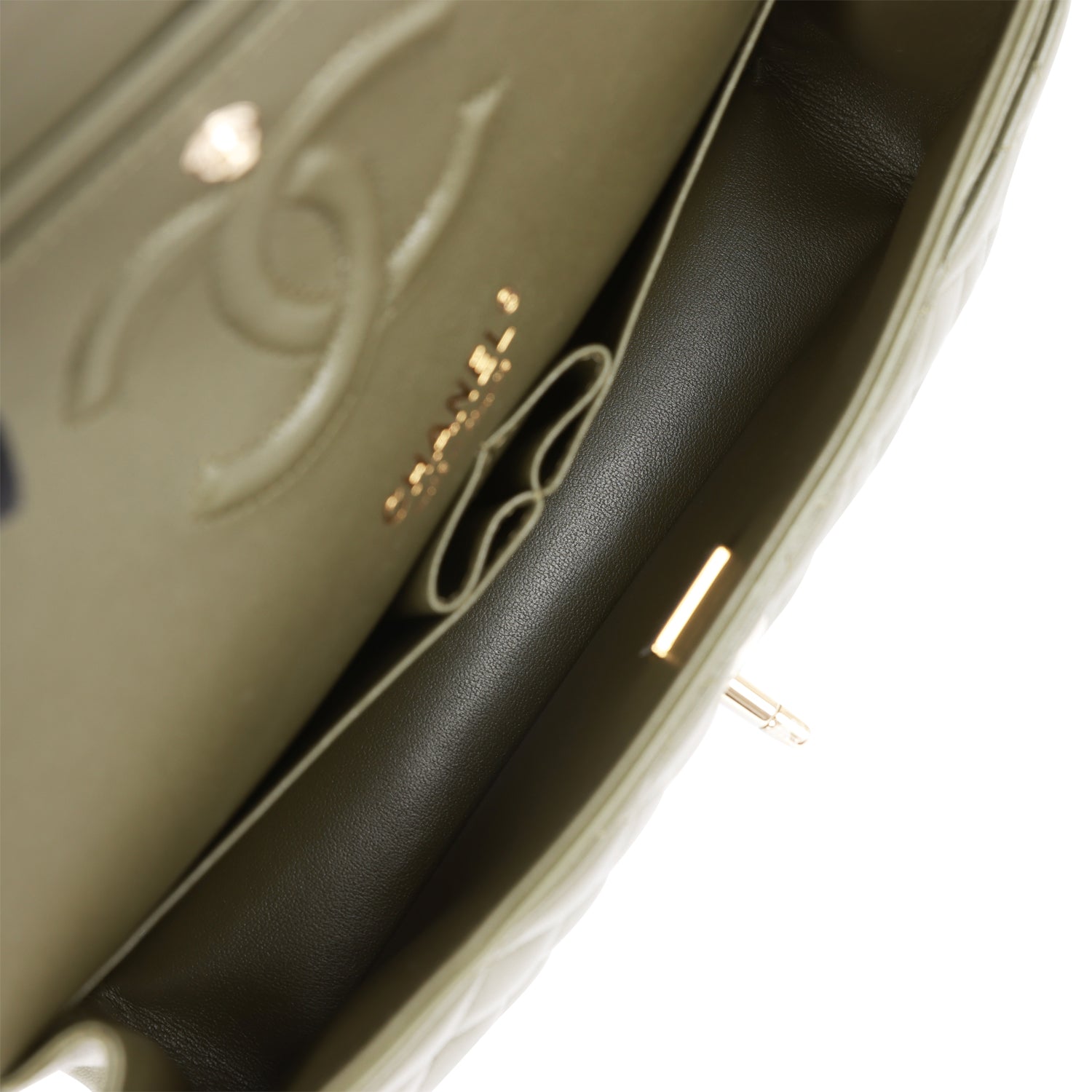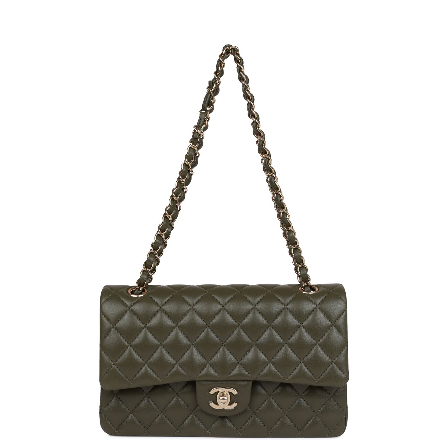 Chanel Medium Classic Double Flap Bag Olive Calfskin Light Gold Hardware