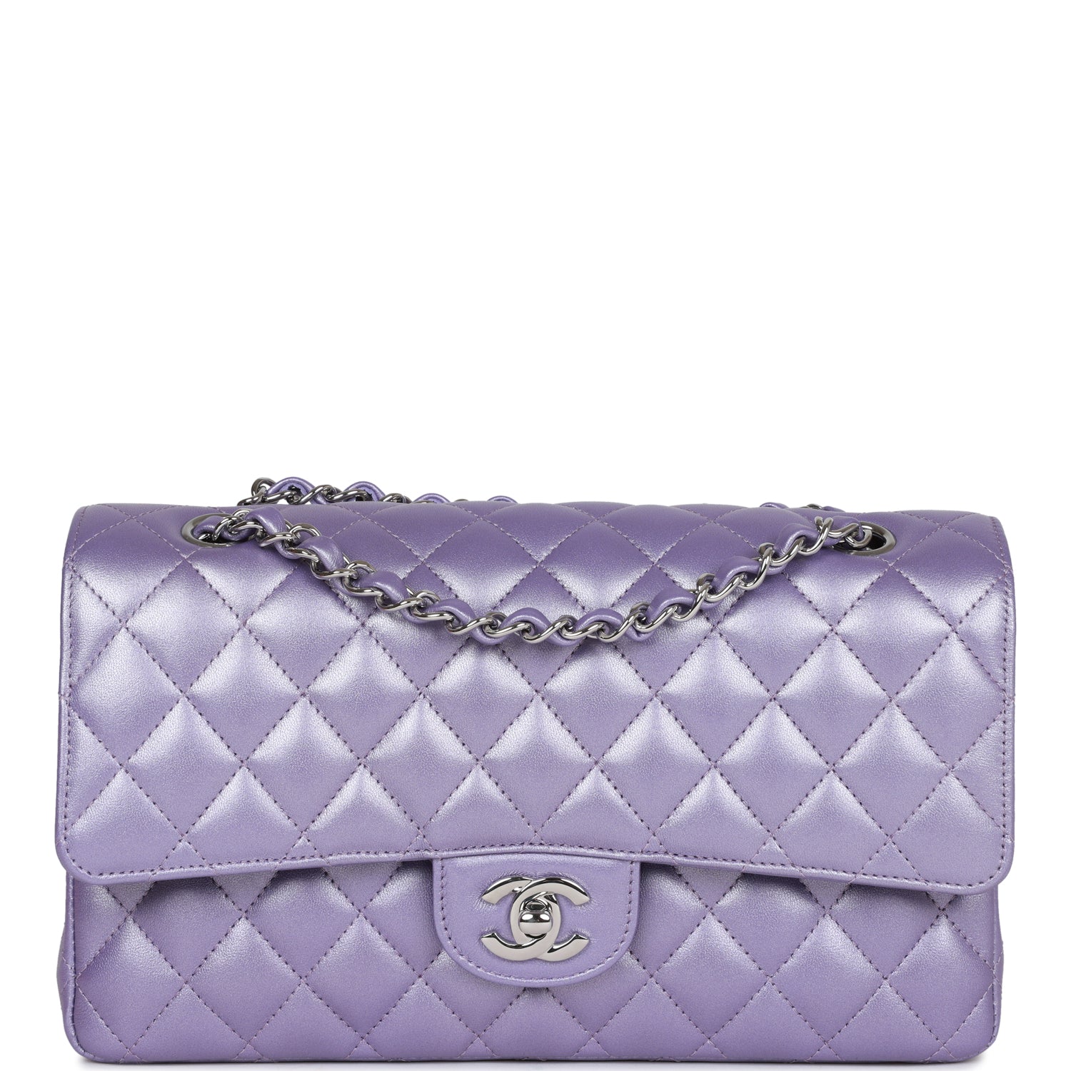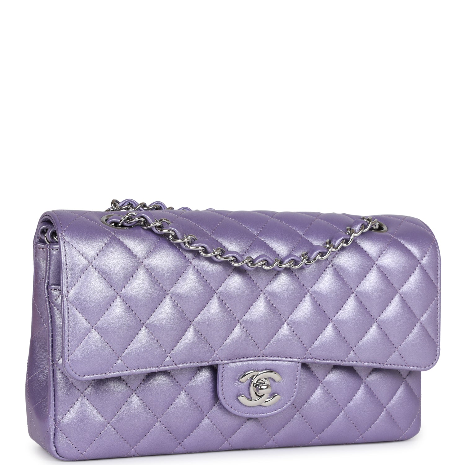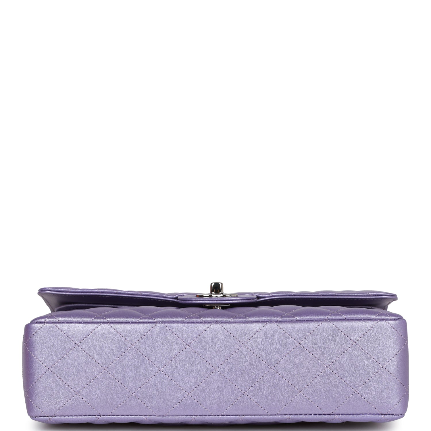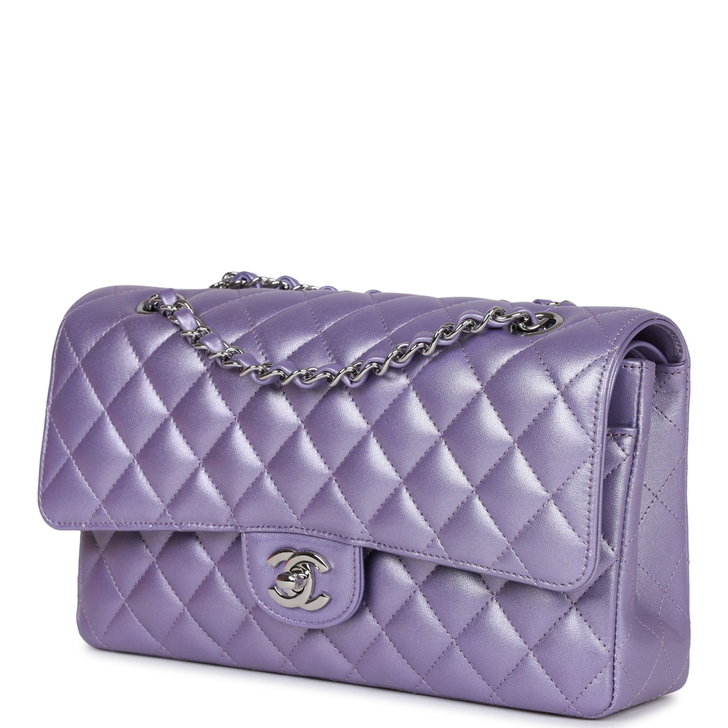 Chanel Medium Classic Double Flap Bag Purple Metallic Lambskin Silver Hardware