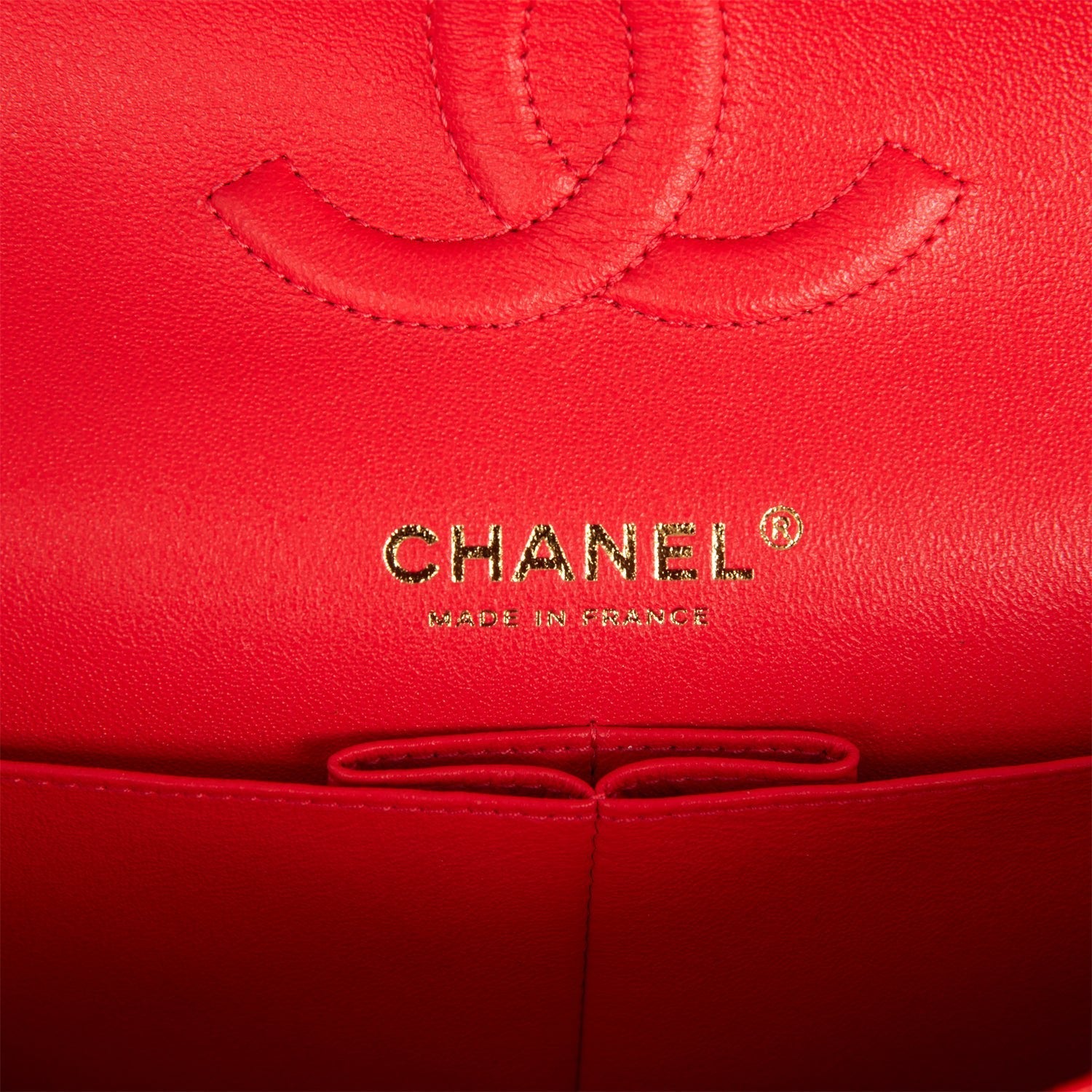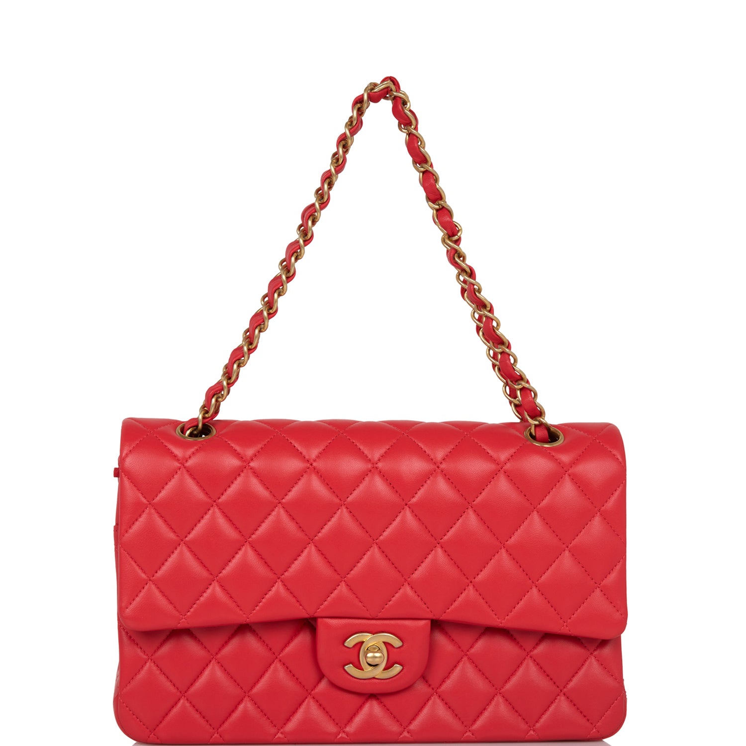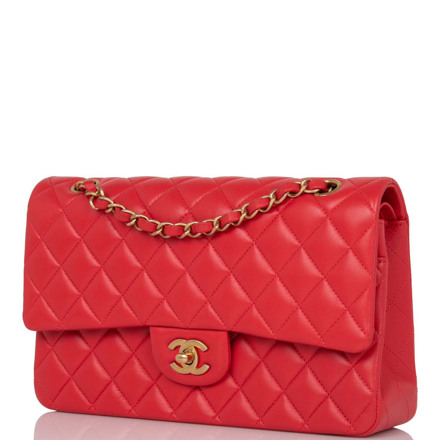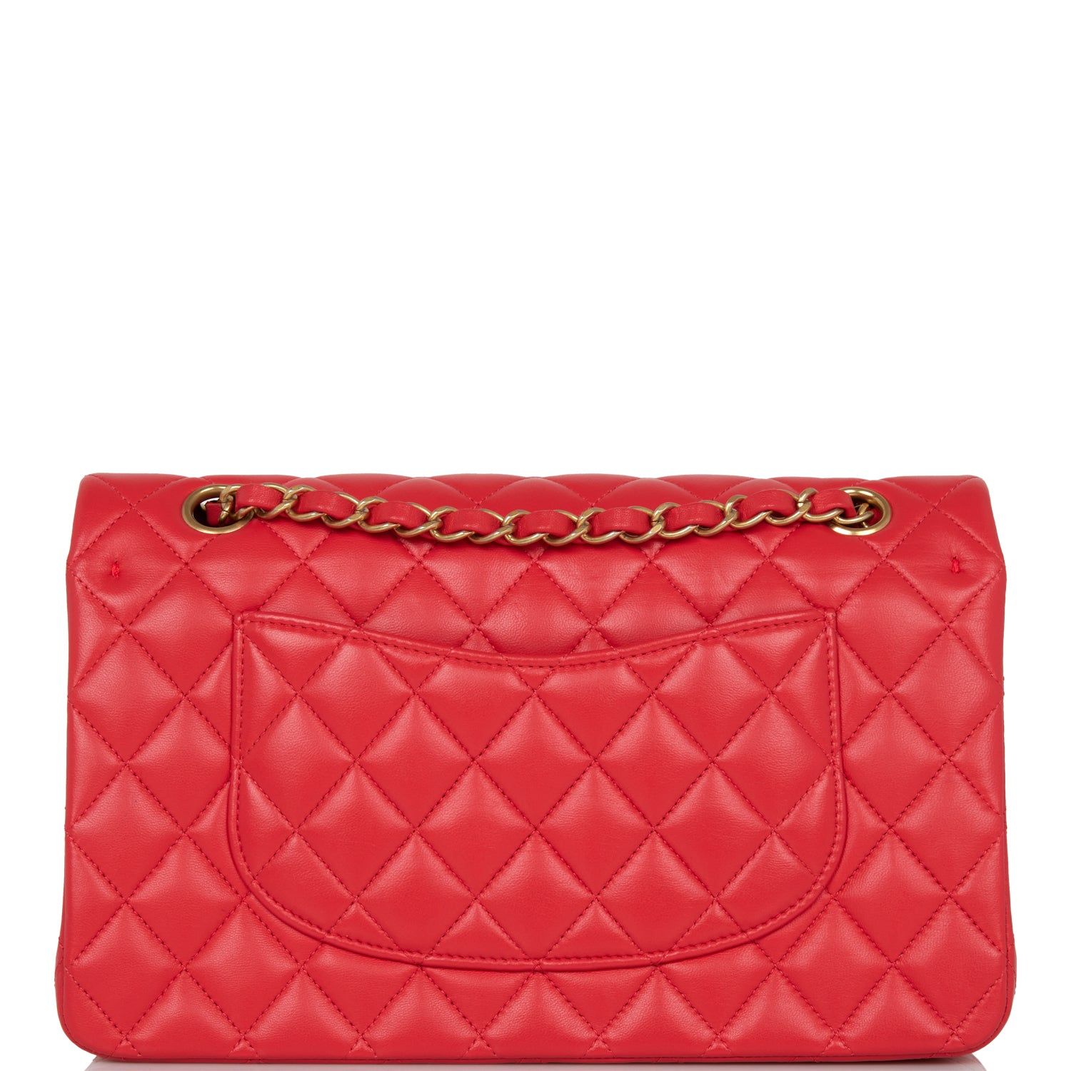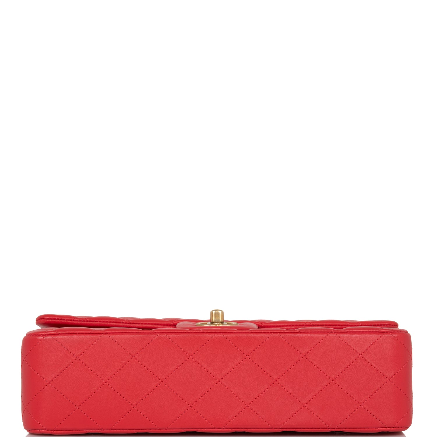 Chanel Medium Classic Double Flap Bag Red Lambskin Antique Gold Hardware
