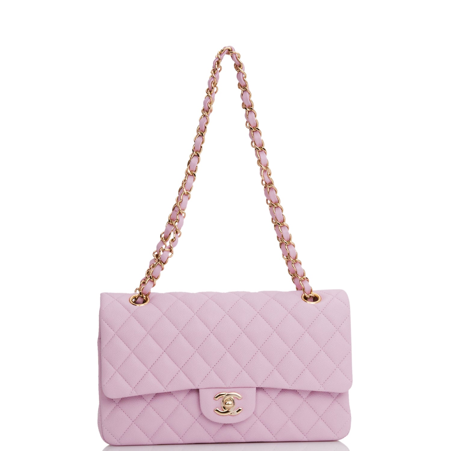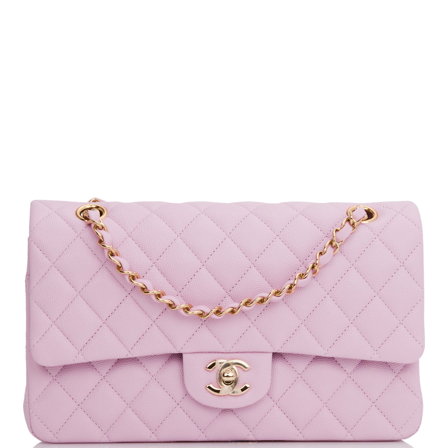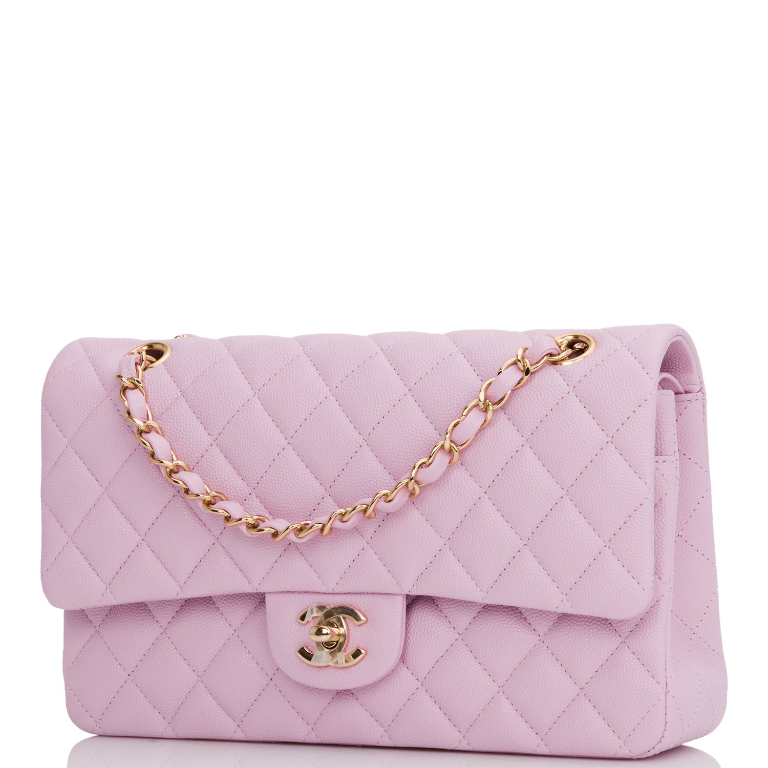 Chanel Medium Classic Double Flap Bag Rose Clair Caviar Light Gold Hardware