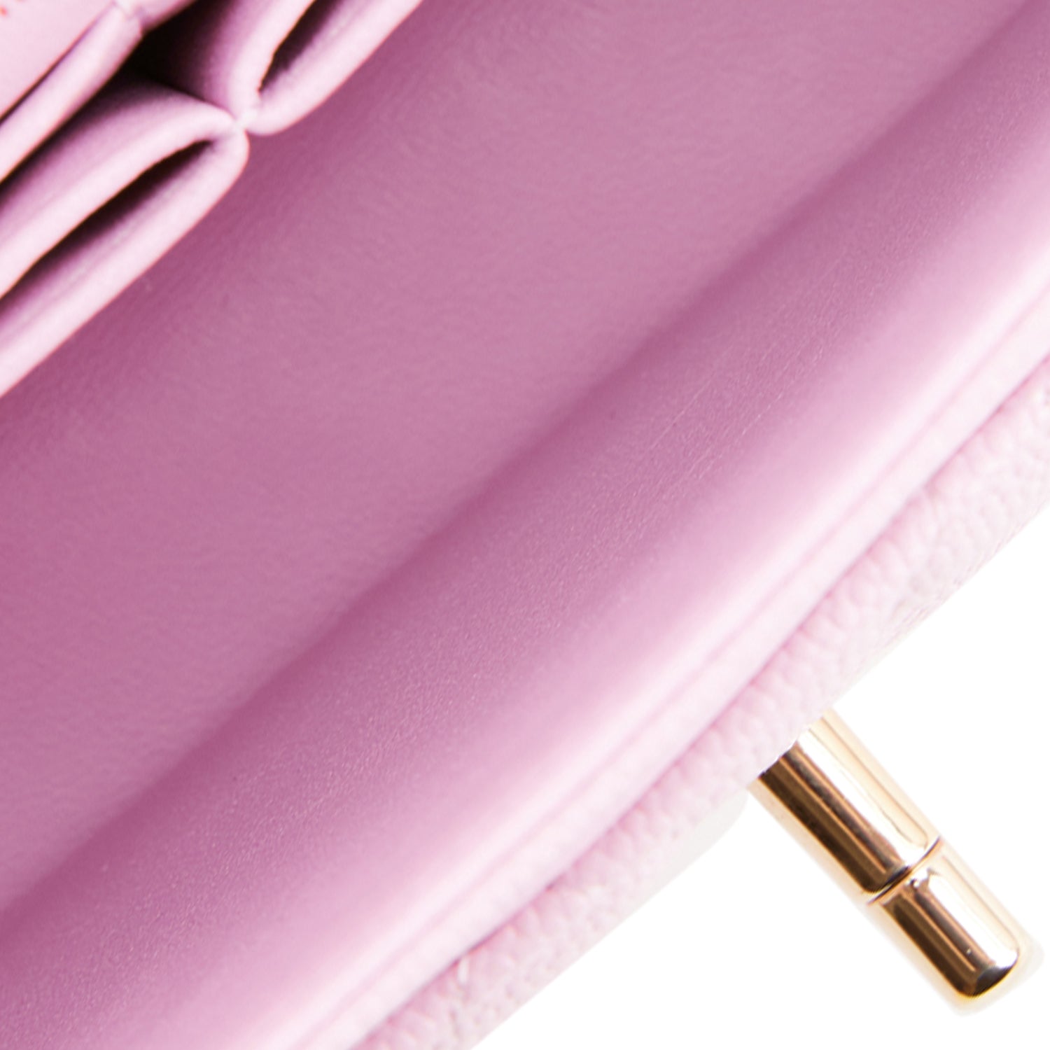 This Medium Classic Double Flap bag is in rose clair caviar leather with light gold tone hardware and features a front flap with signature CC turnlock closure, half moon back pocket, and adjustable interwoven light gold tone chain link and rose clair leather shoulder strap.