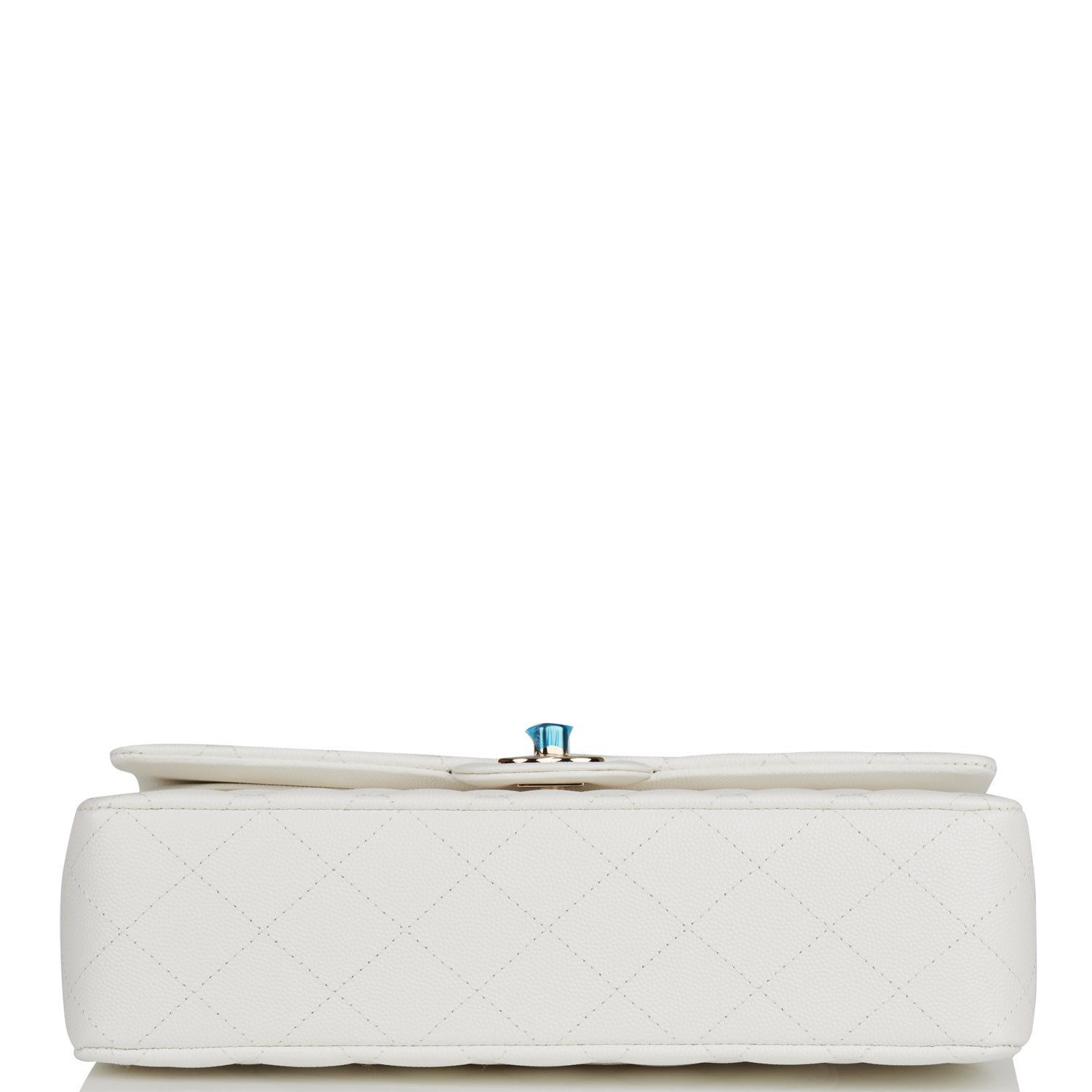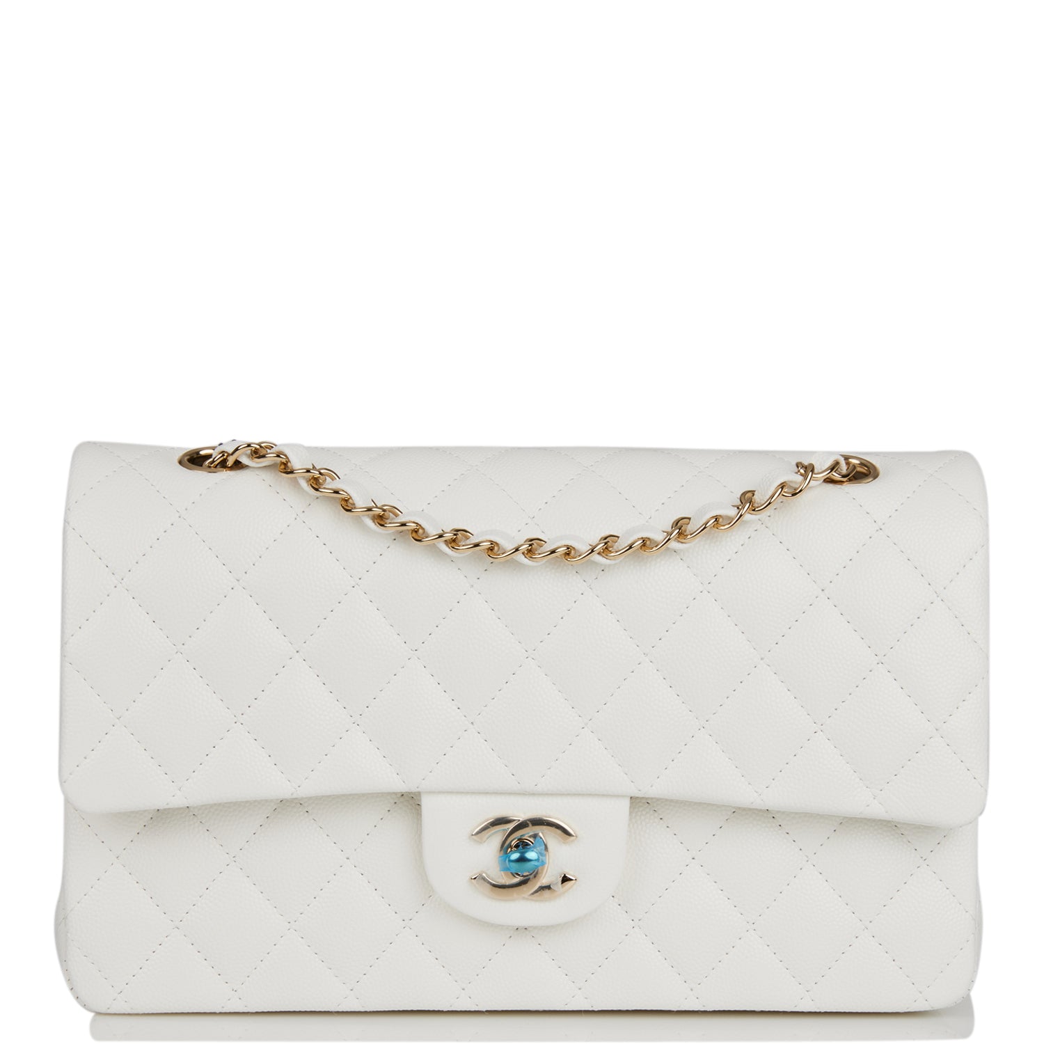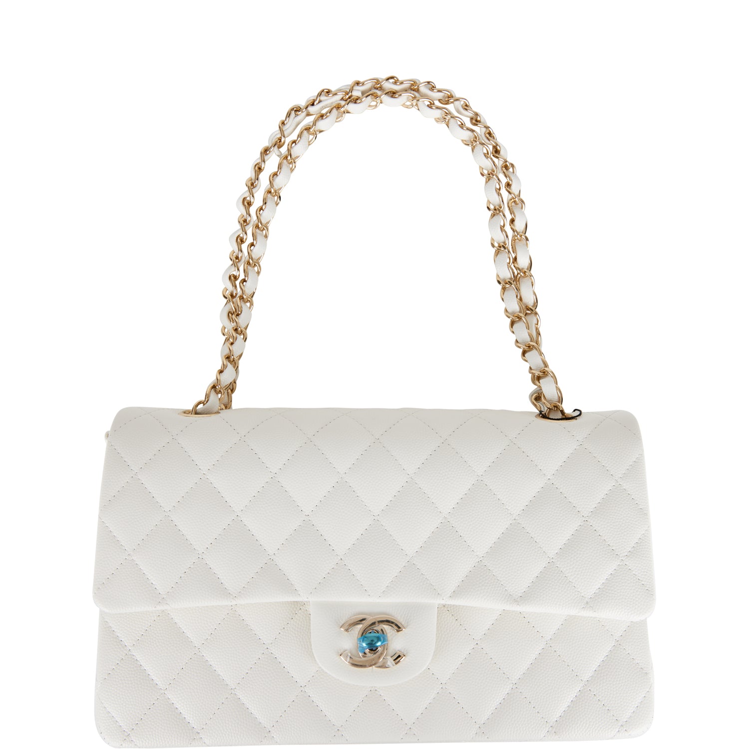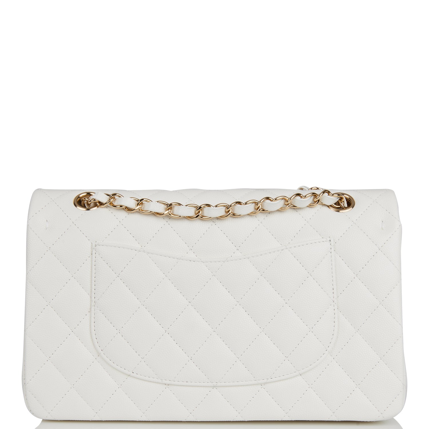 Chanel Medium Classic Double Flap Bag White Quilted Caviar Light Gold Hardware