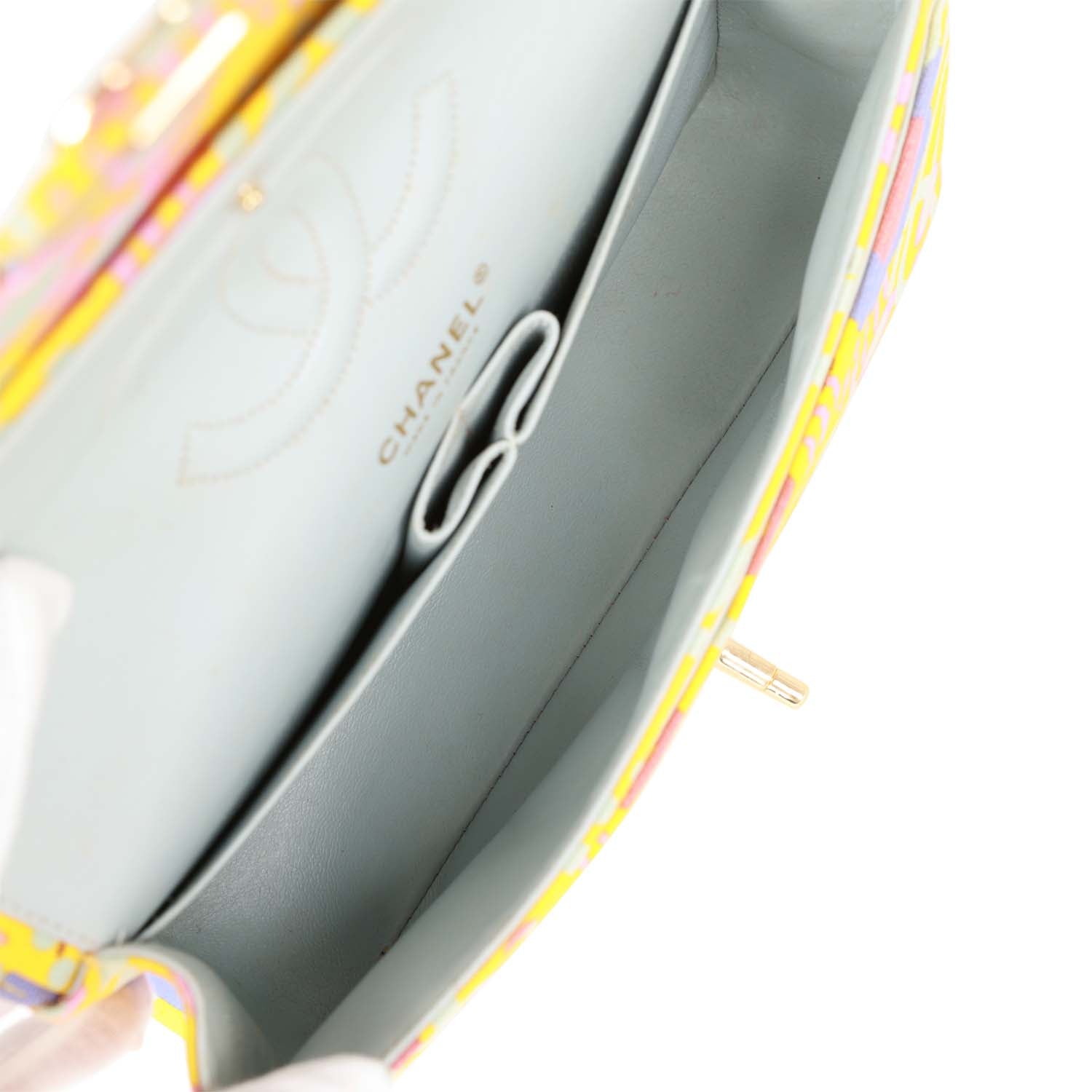 Chanel Vintage Medium Classic Double Flap Bag Yellow and Multicolor Floral Print Canvas Gold Hardware
