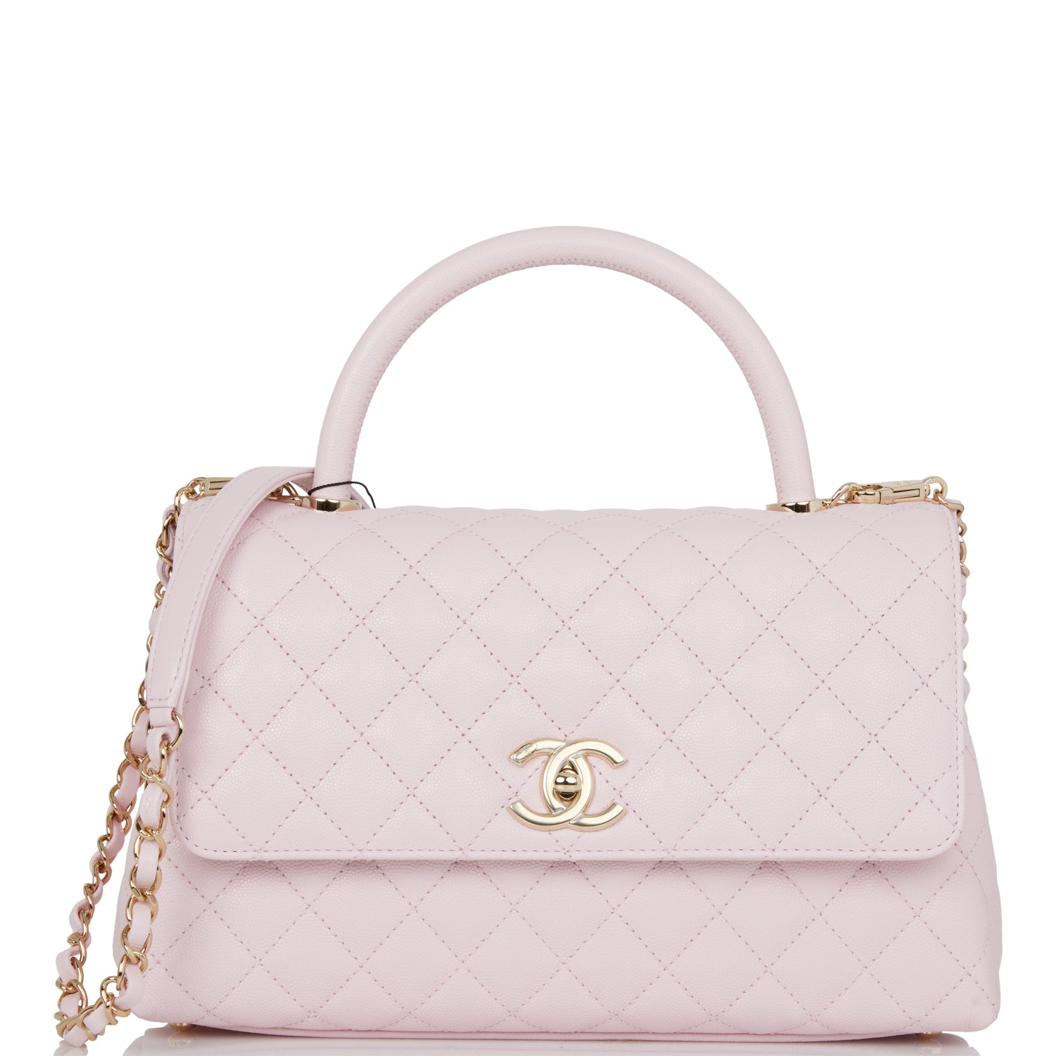 Chanel Medium Coco Handle Flap Bag Light Pink Caviar Light Gold Hardware