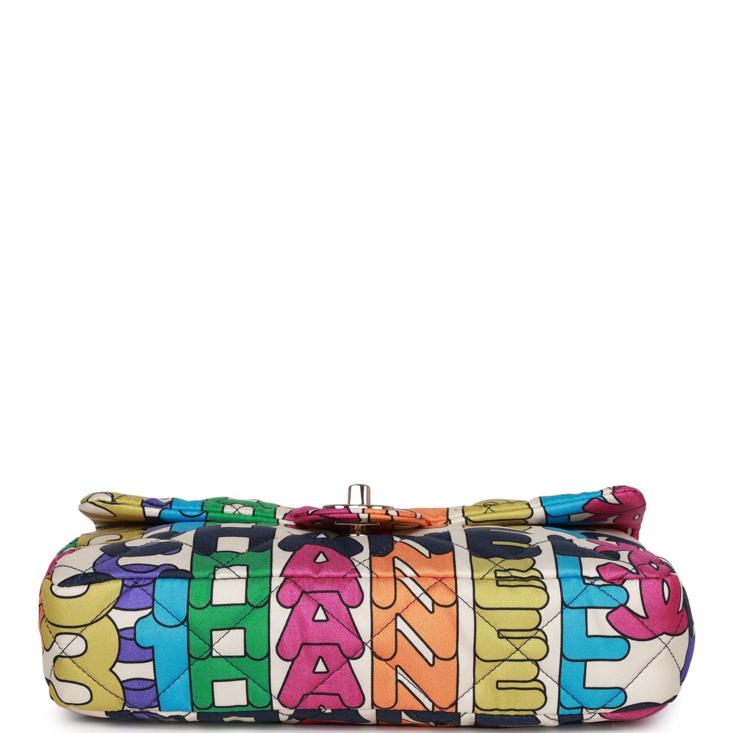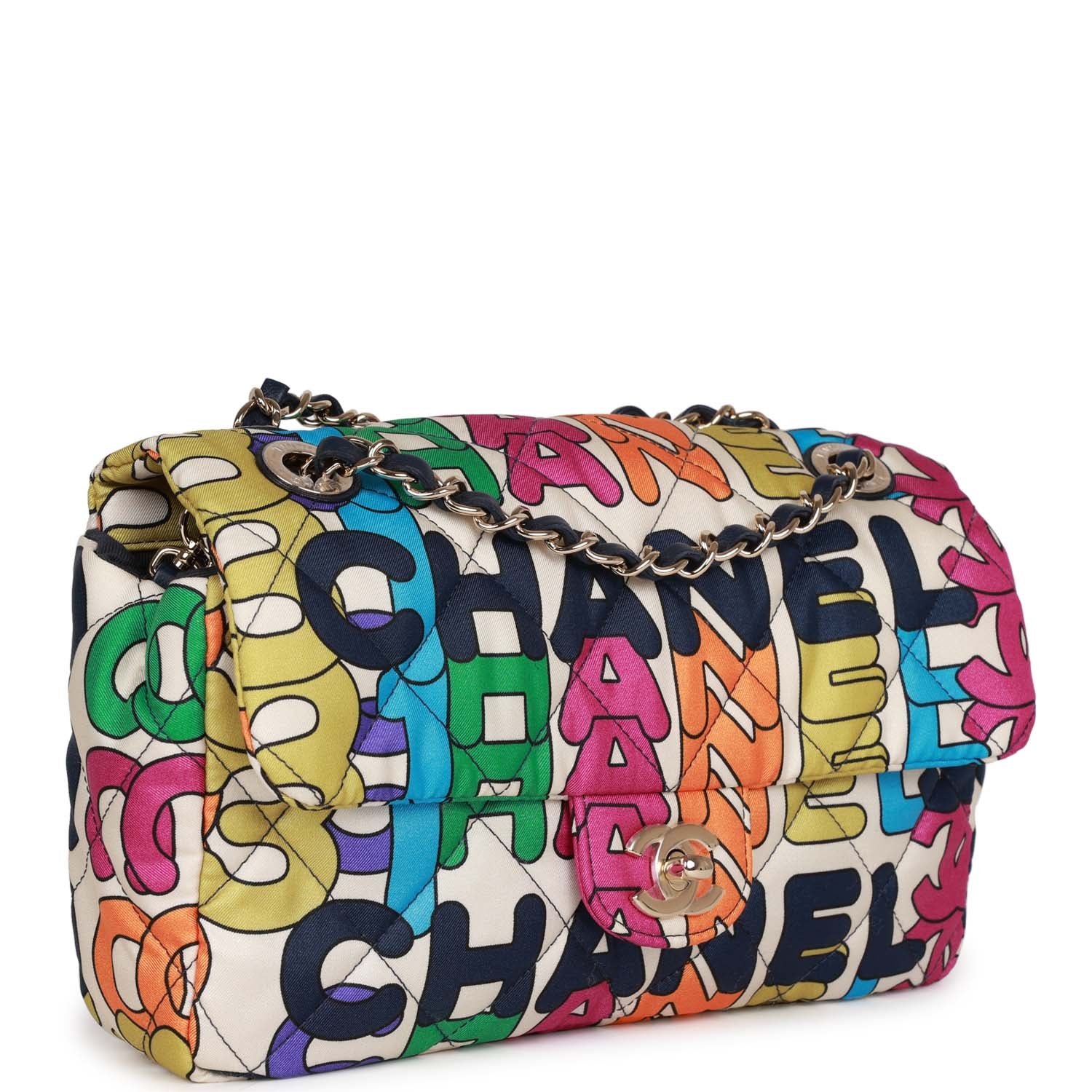 Chanel Medium Flap Bag Multicolor Rainbow Logo Nylon Light Gold Hardware