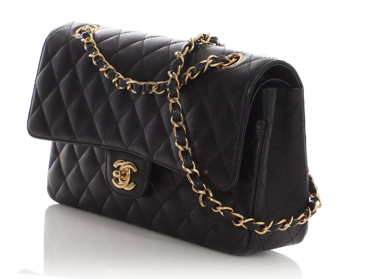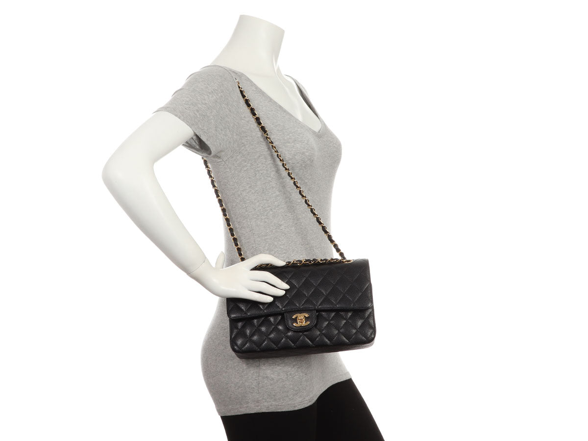 Chanel Medium/Large Black Quilted Caviar Classic Double Flap