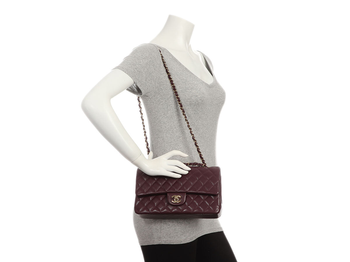 Chanel Medium/Large Burgundy Quilted Caviar Classic Double Flap