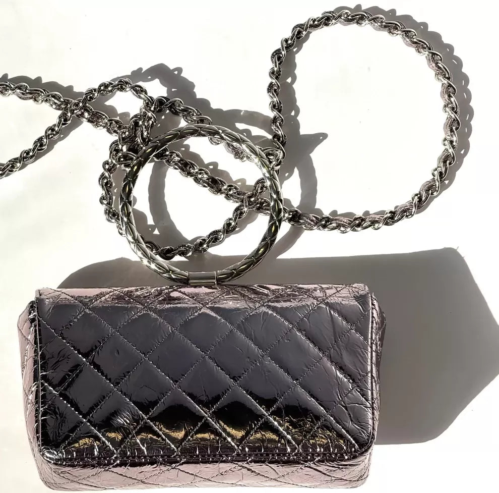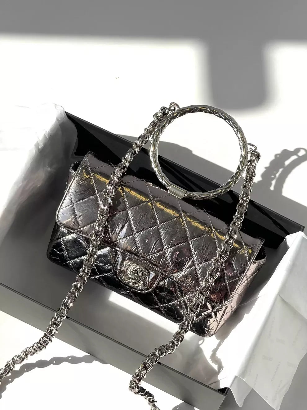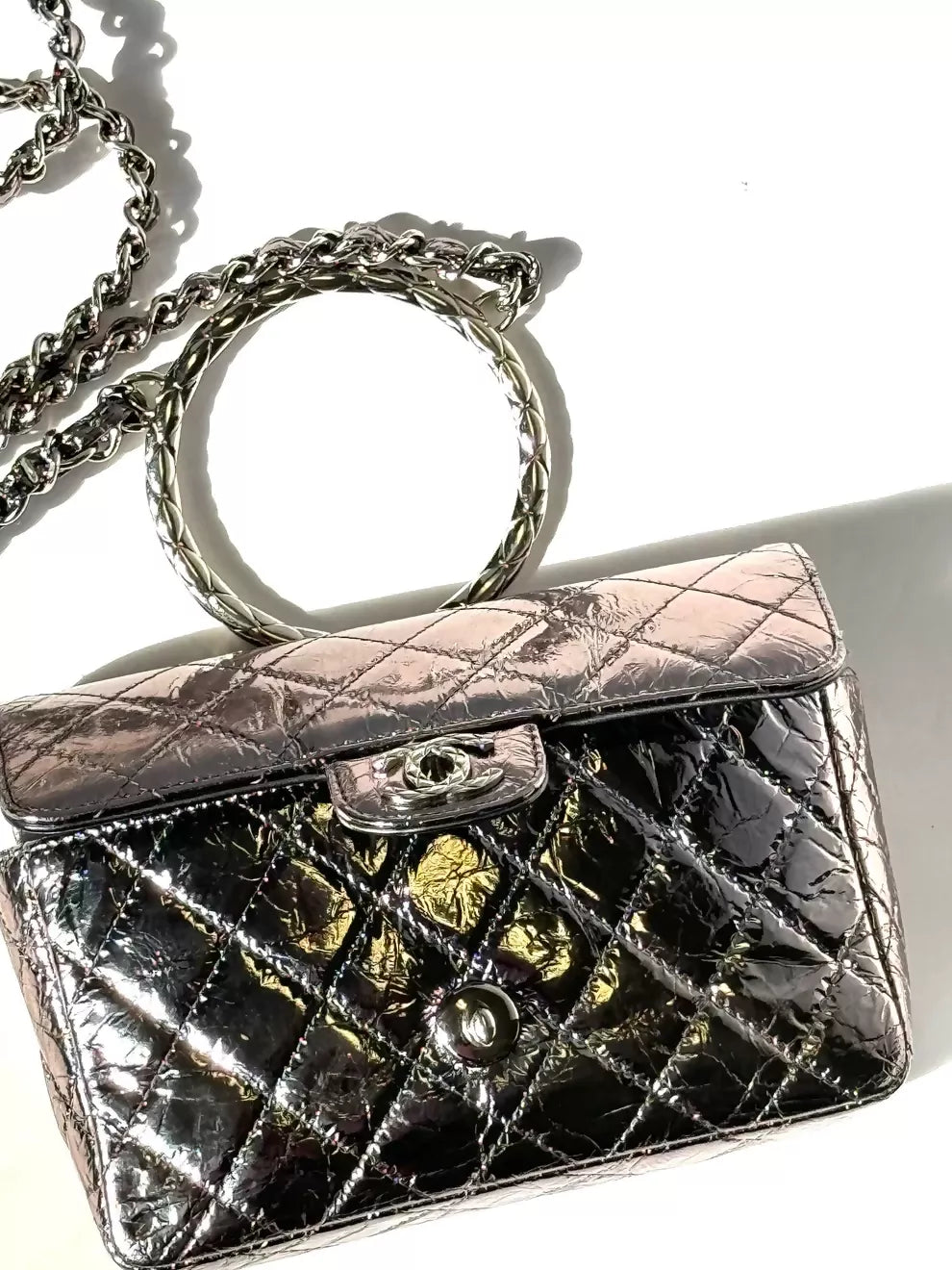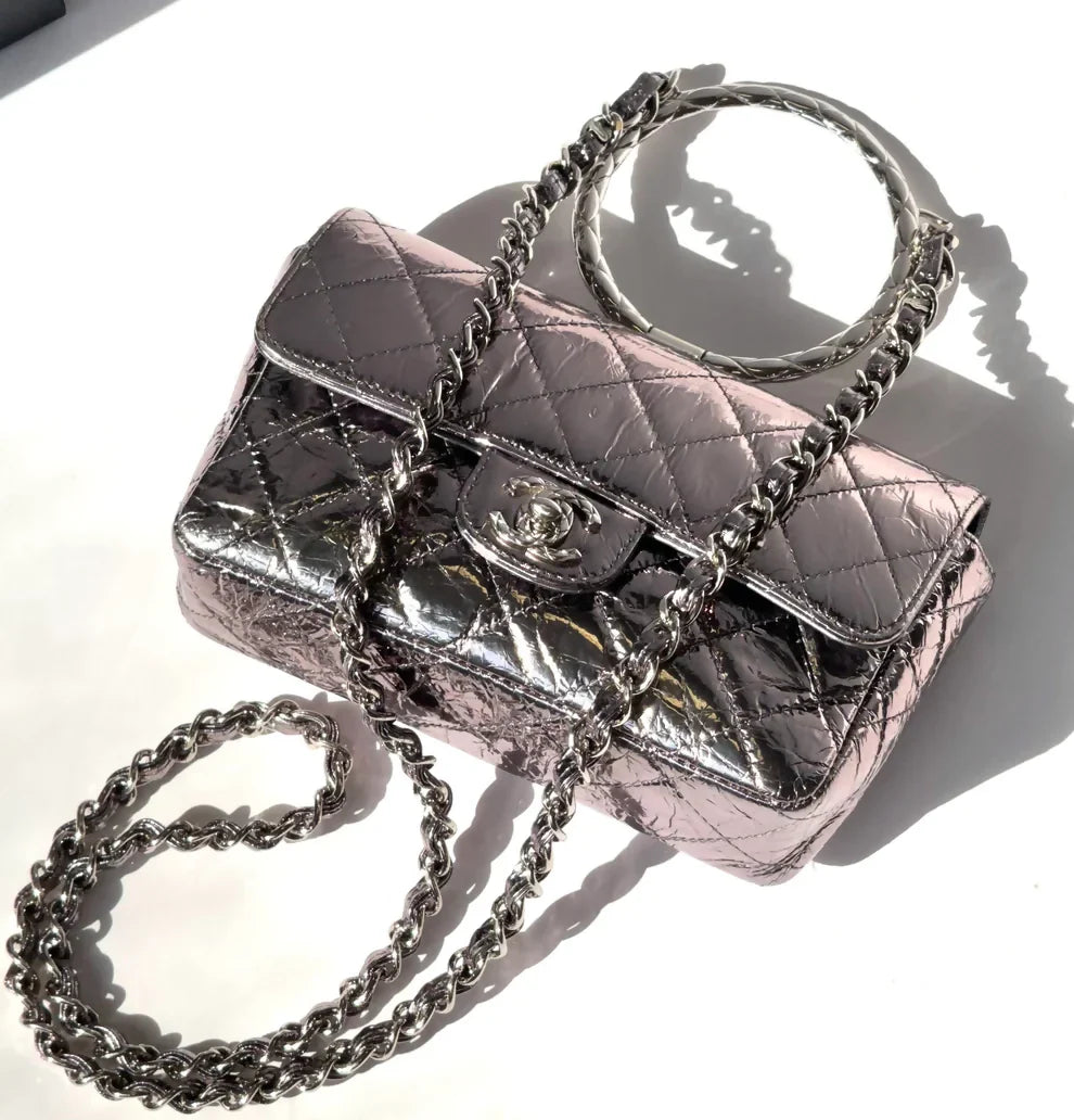 Chanel Metallic Calfskin Mini Ring Handle Flap Bag