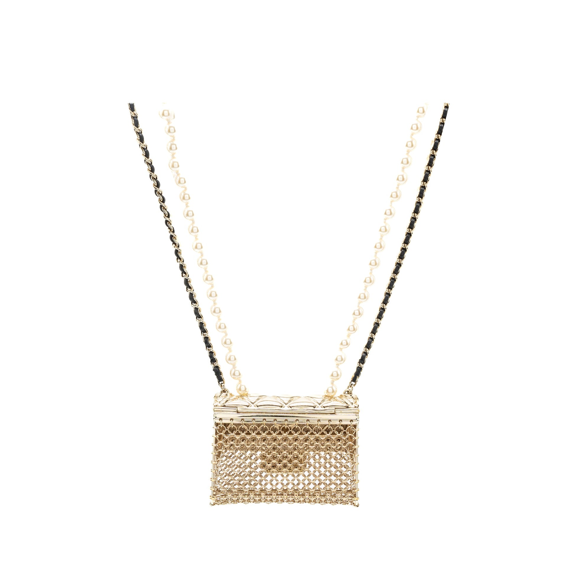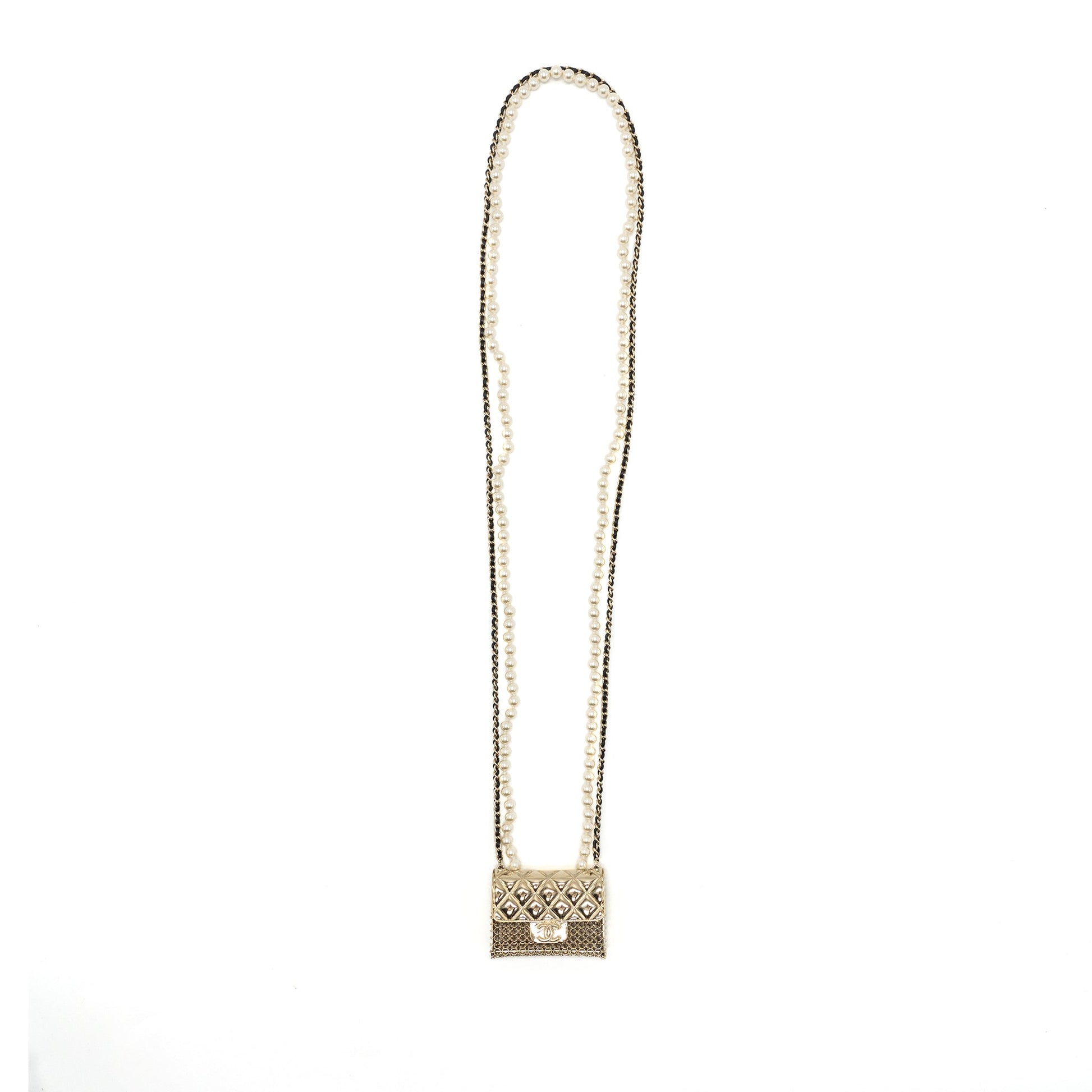 Chanel Micro Bag Necklace Pearl/ Leather Chain L