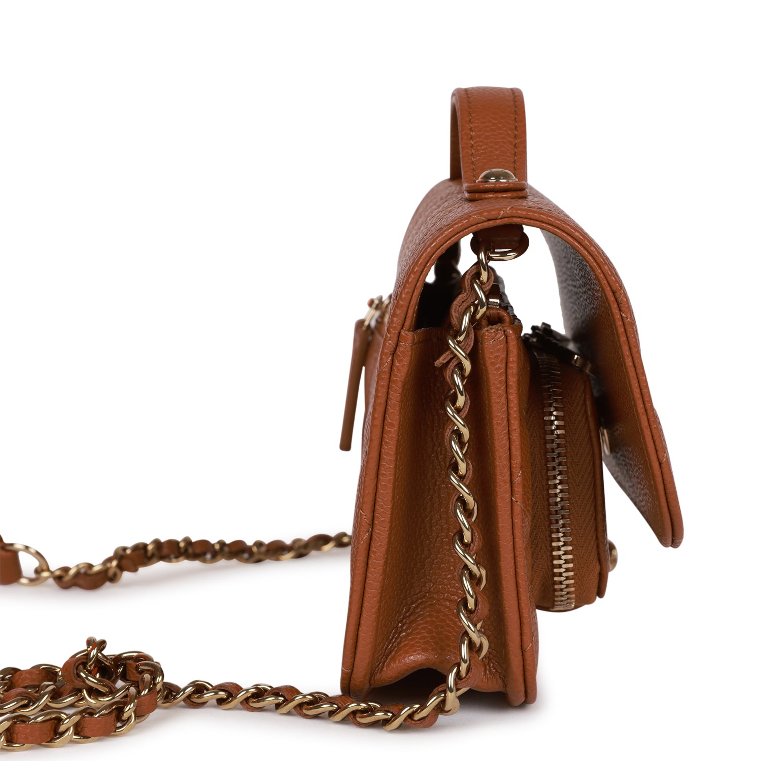 Chanel Micro Business Affinity Bag Caramel Caviar Light Gold Hardware