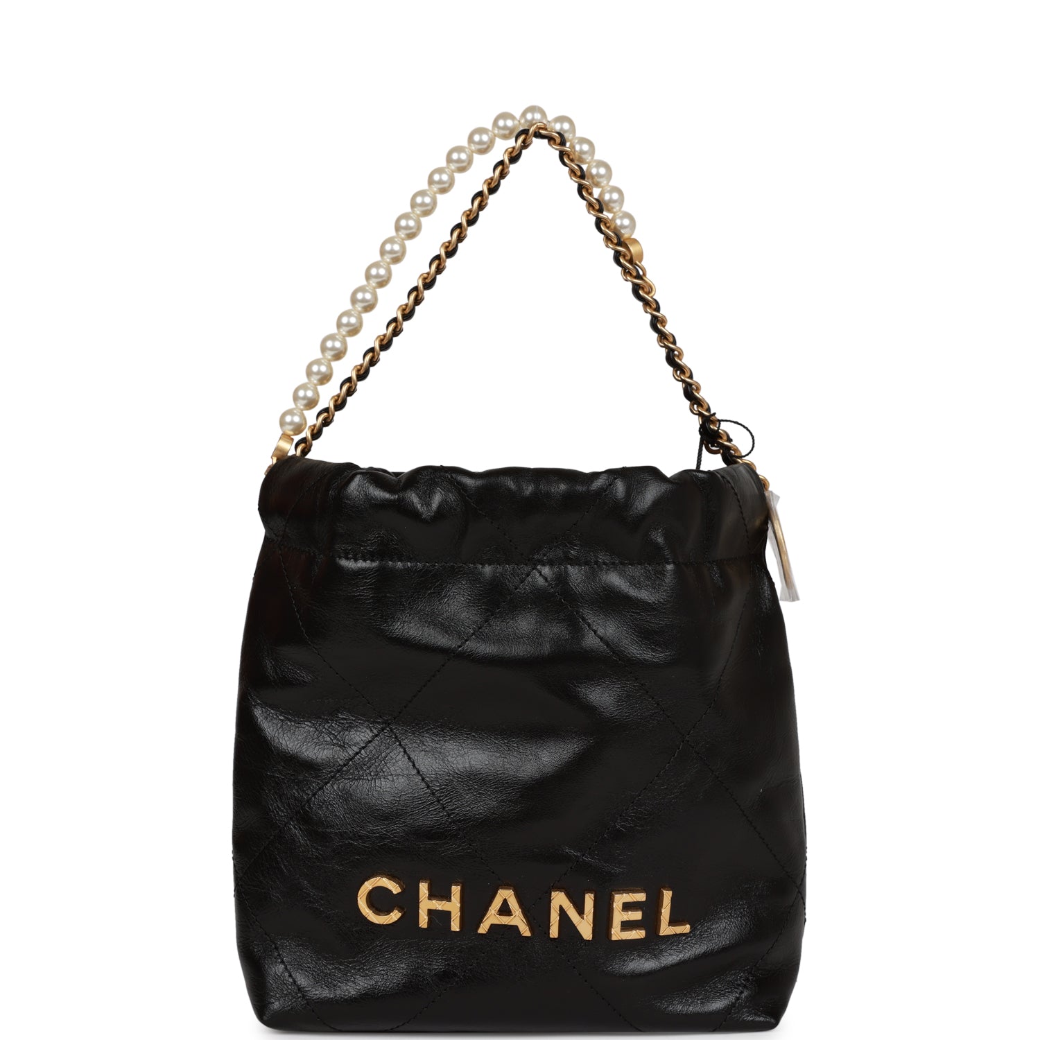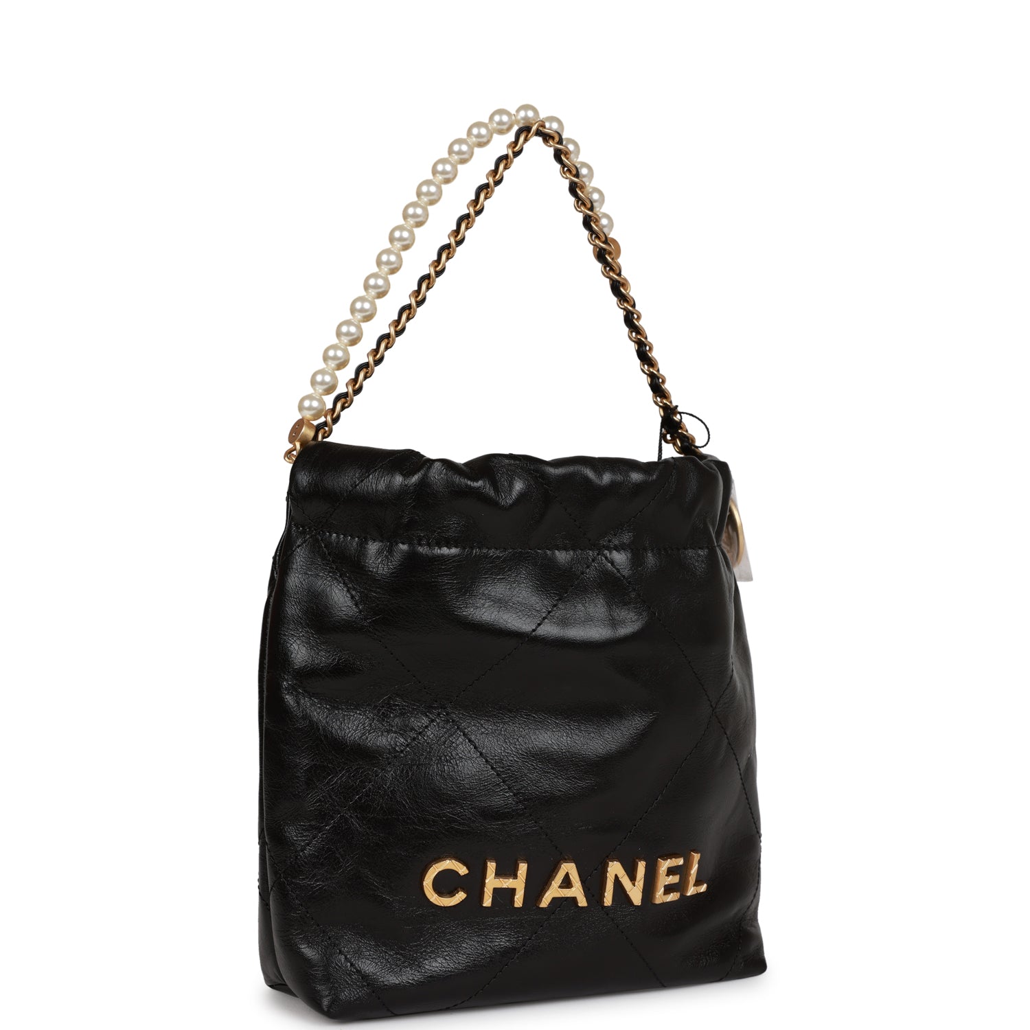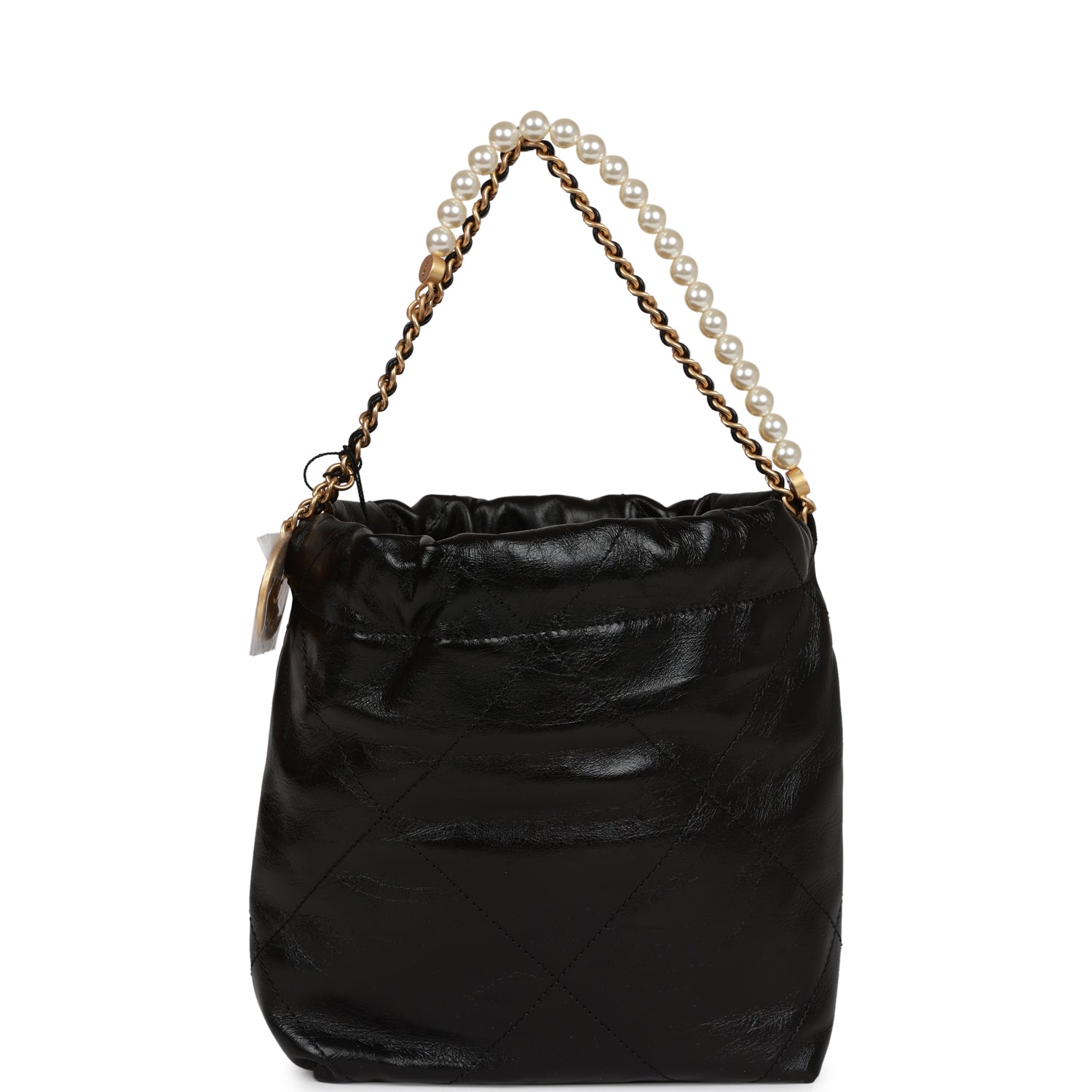 Chanel Mini 22 Bag Black Calfskin and Pearl Antique Gold Hardware