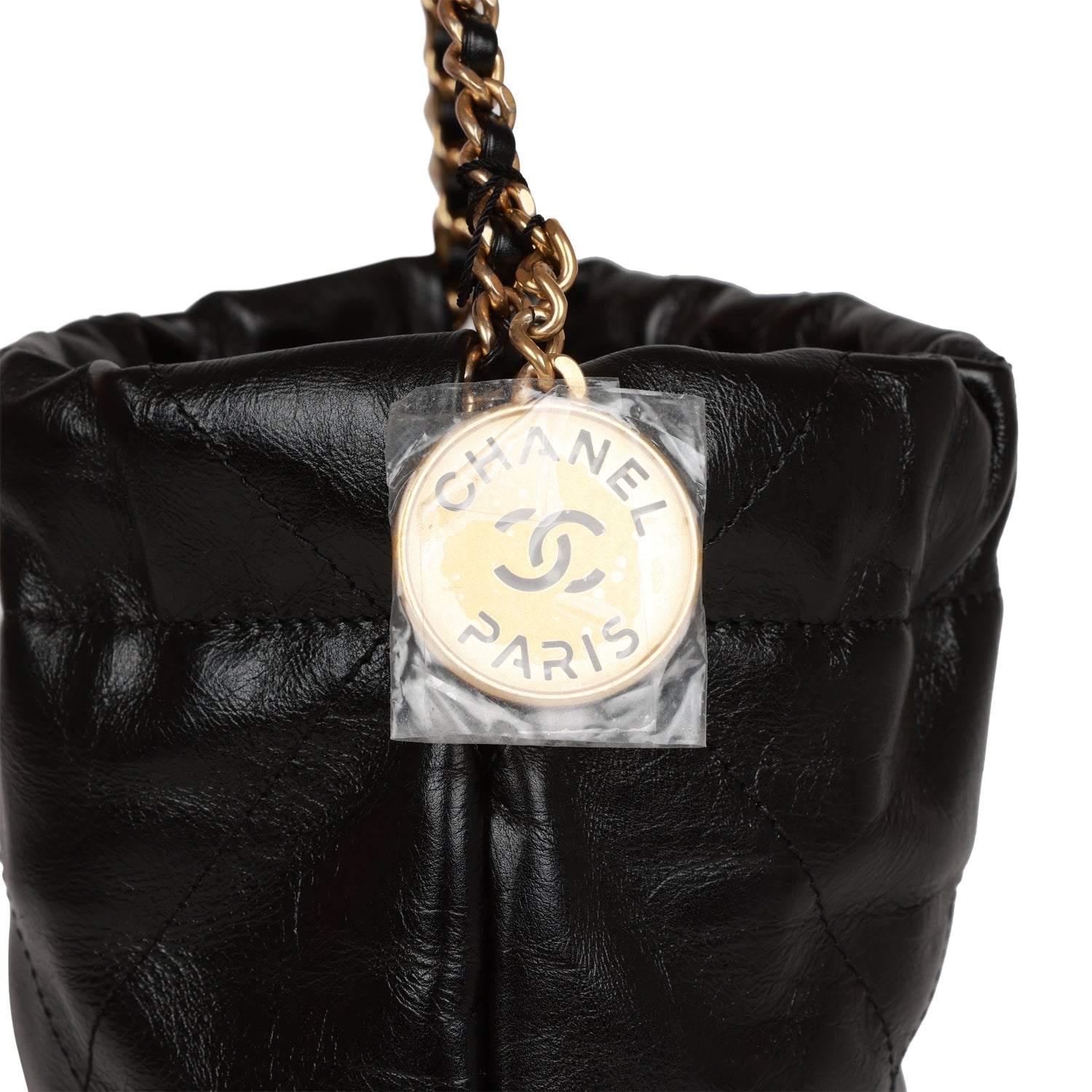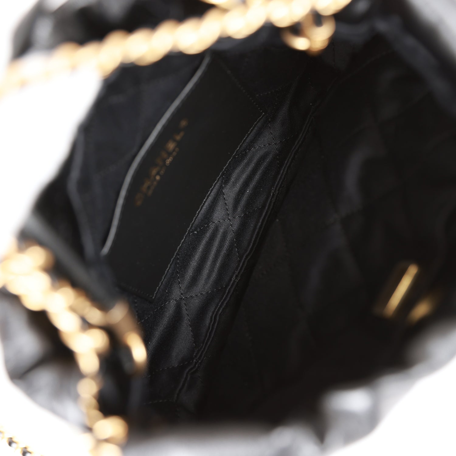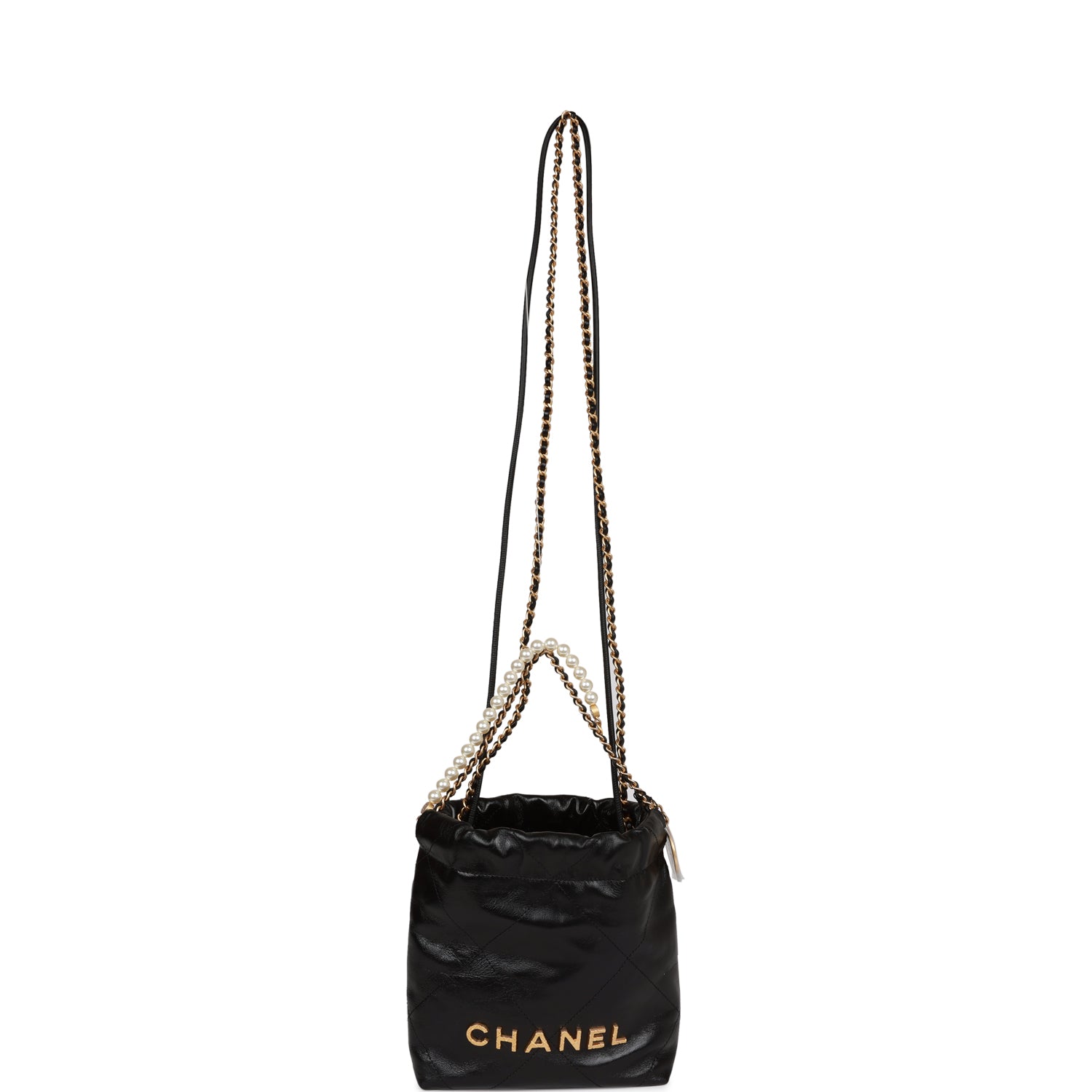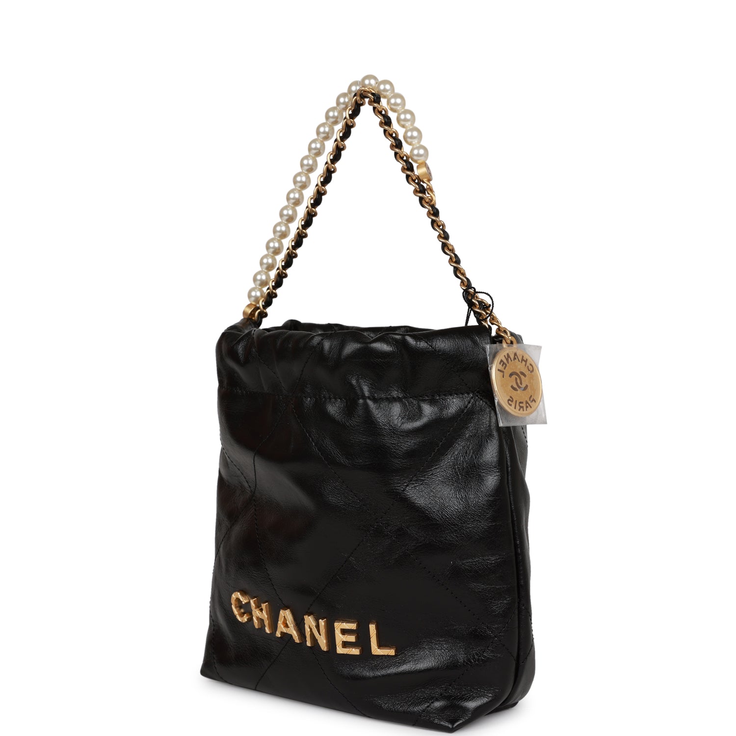 Chanel Mini 22 Bag Black Calfskin and Pearl Antique Gold Hardware