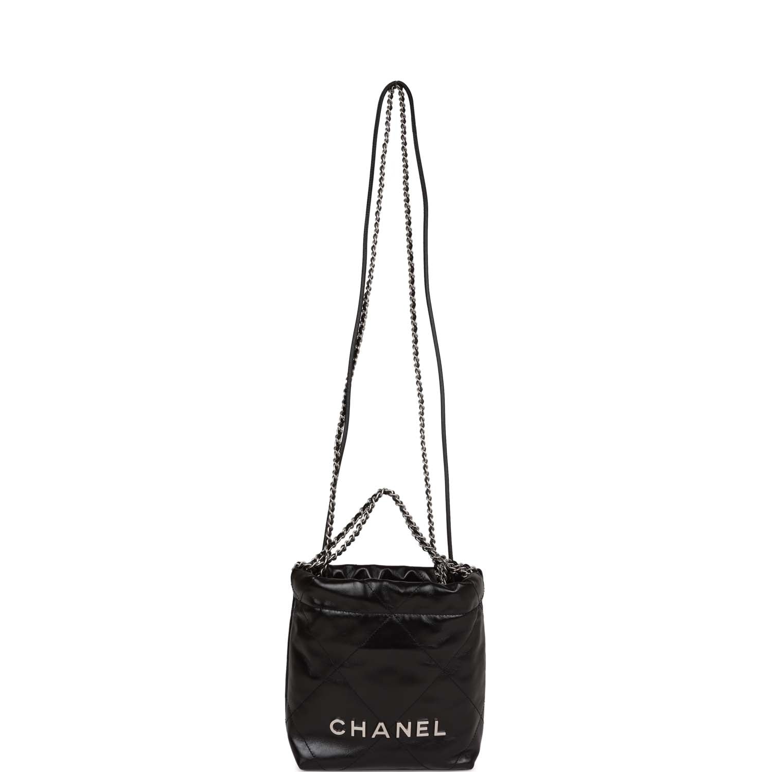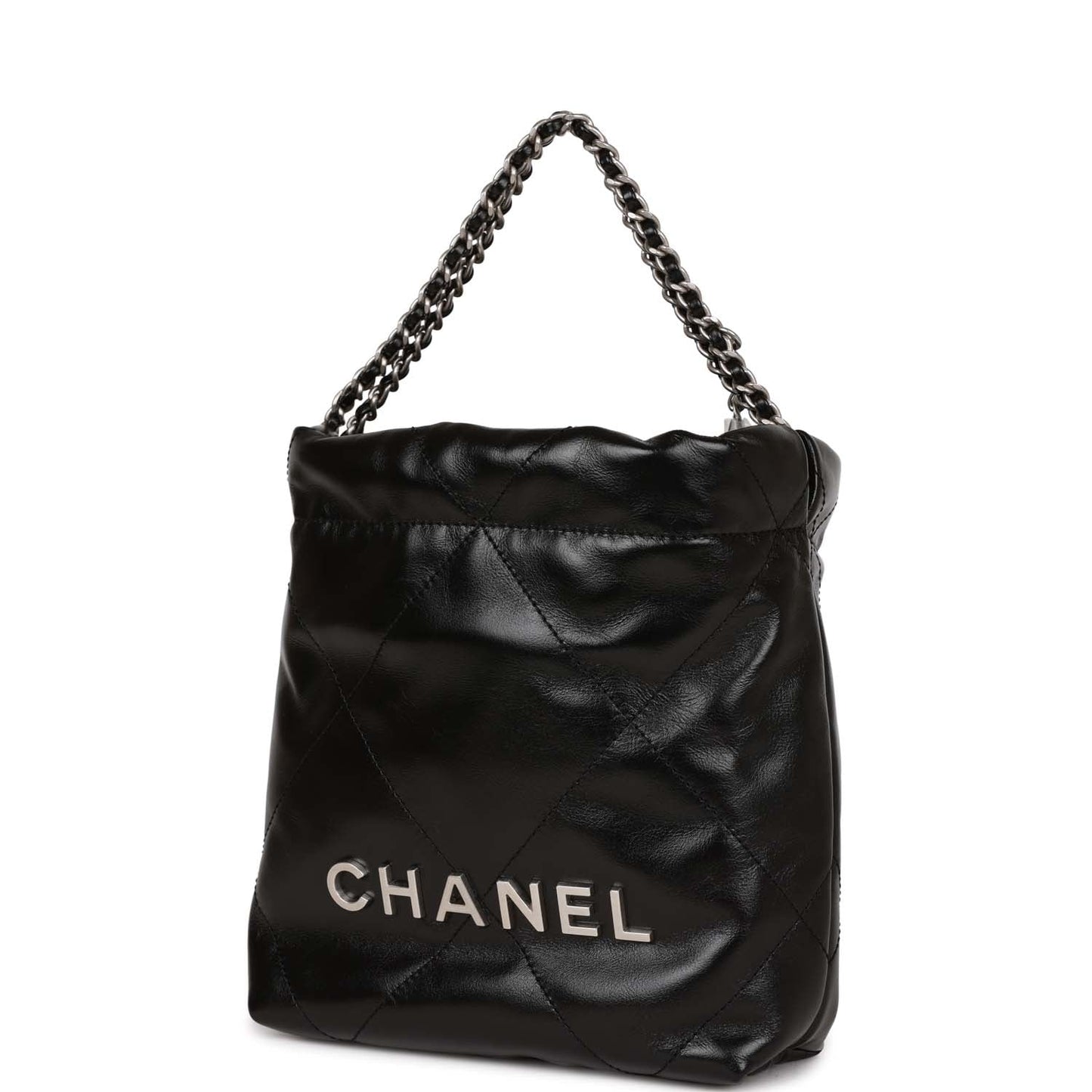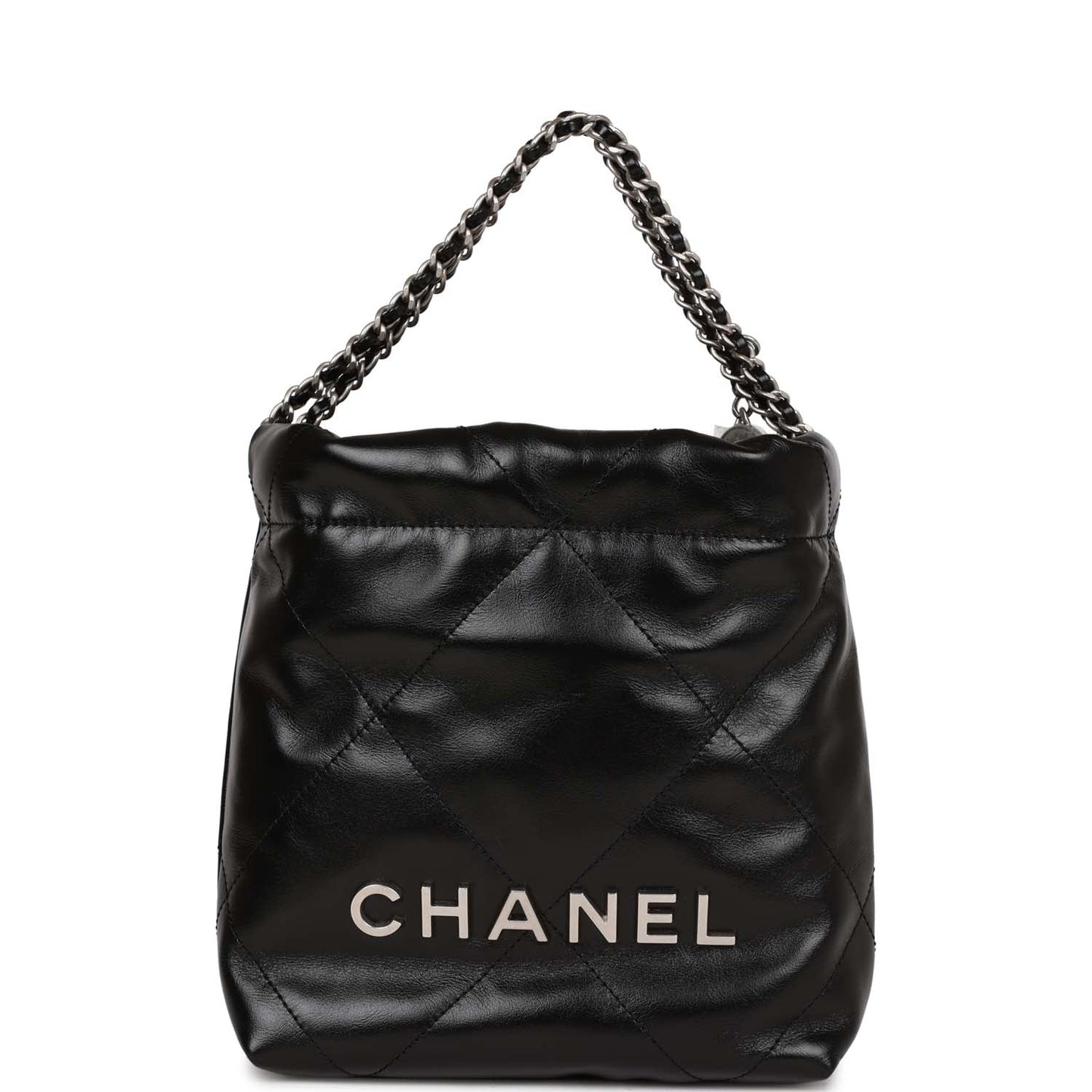 Chanel Mini 22 Bag Black Calfskin Silver Hardware