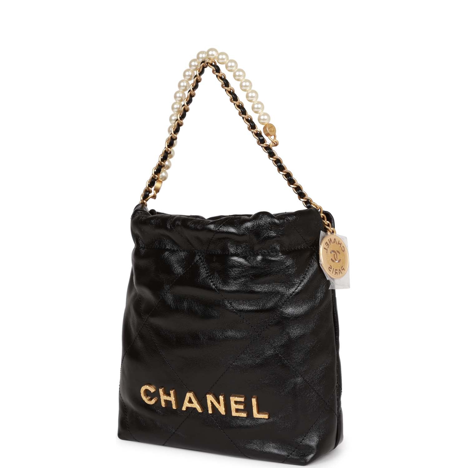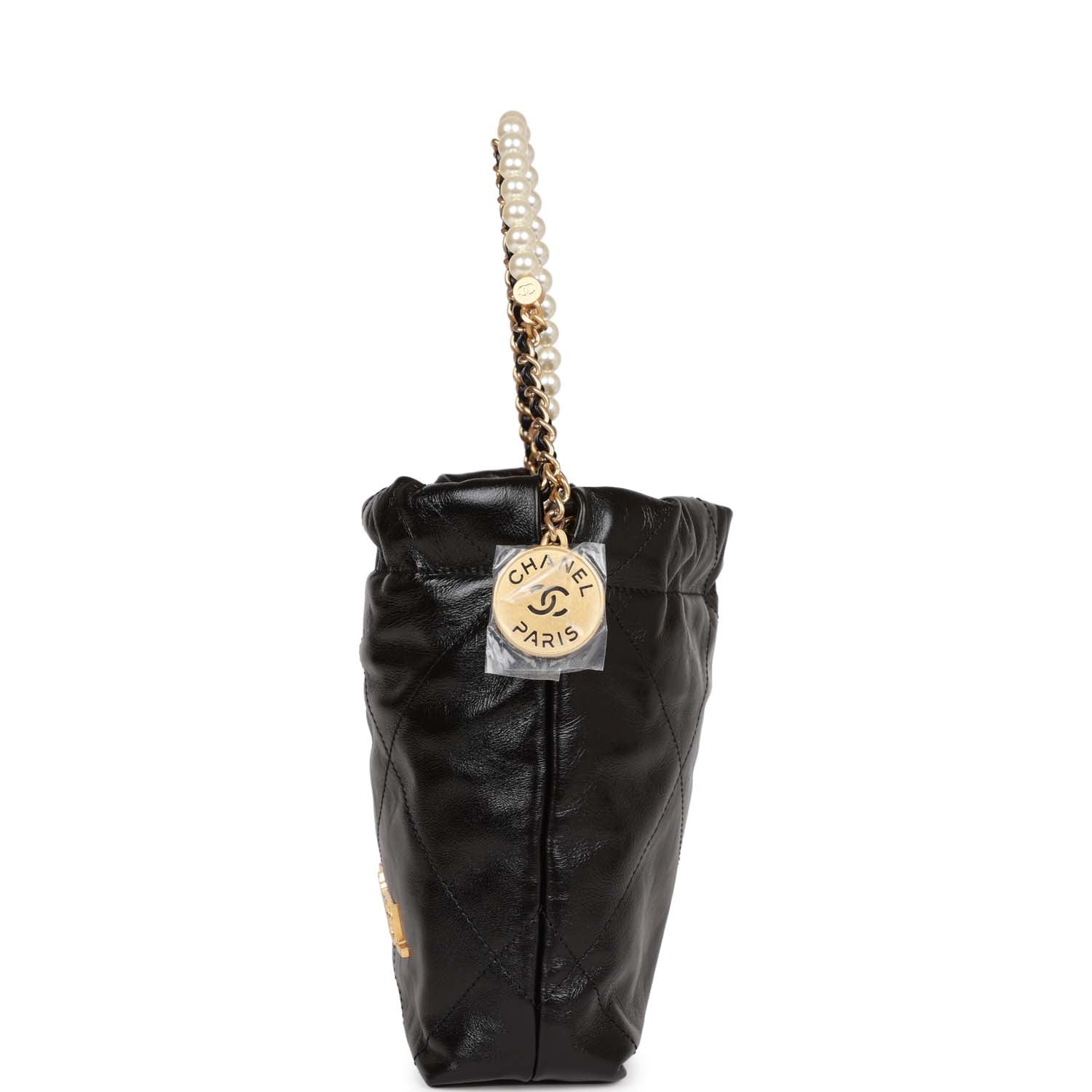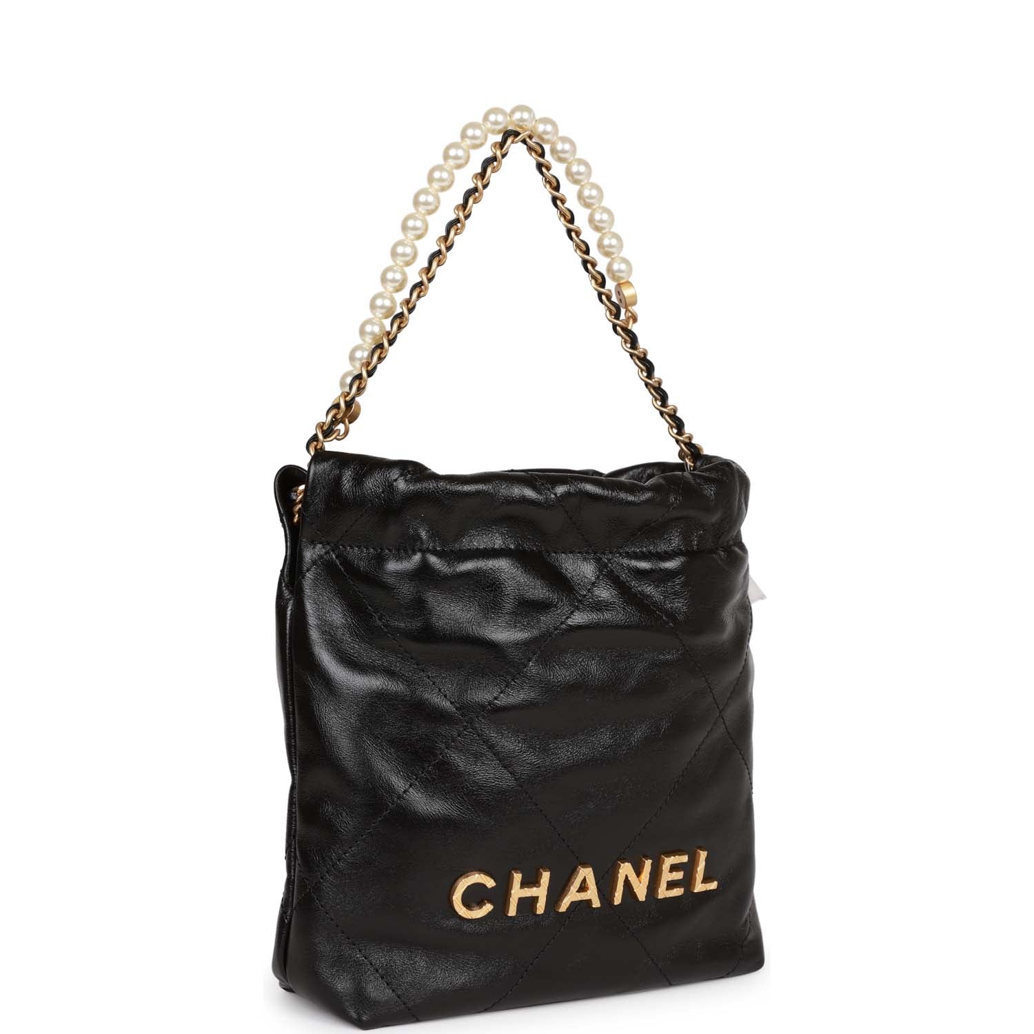 Chanel Mini 22 Bag Black Calfskin and Pearl Antique Gold Hardware