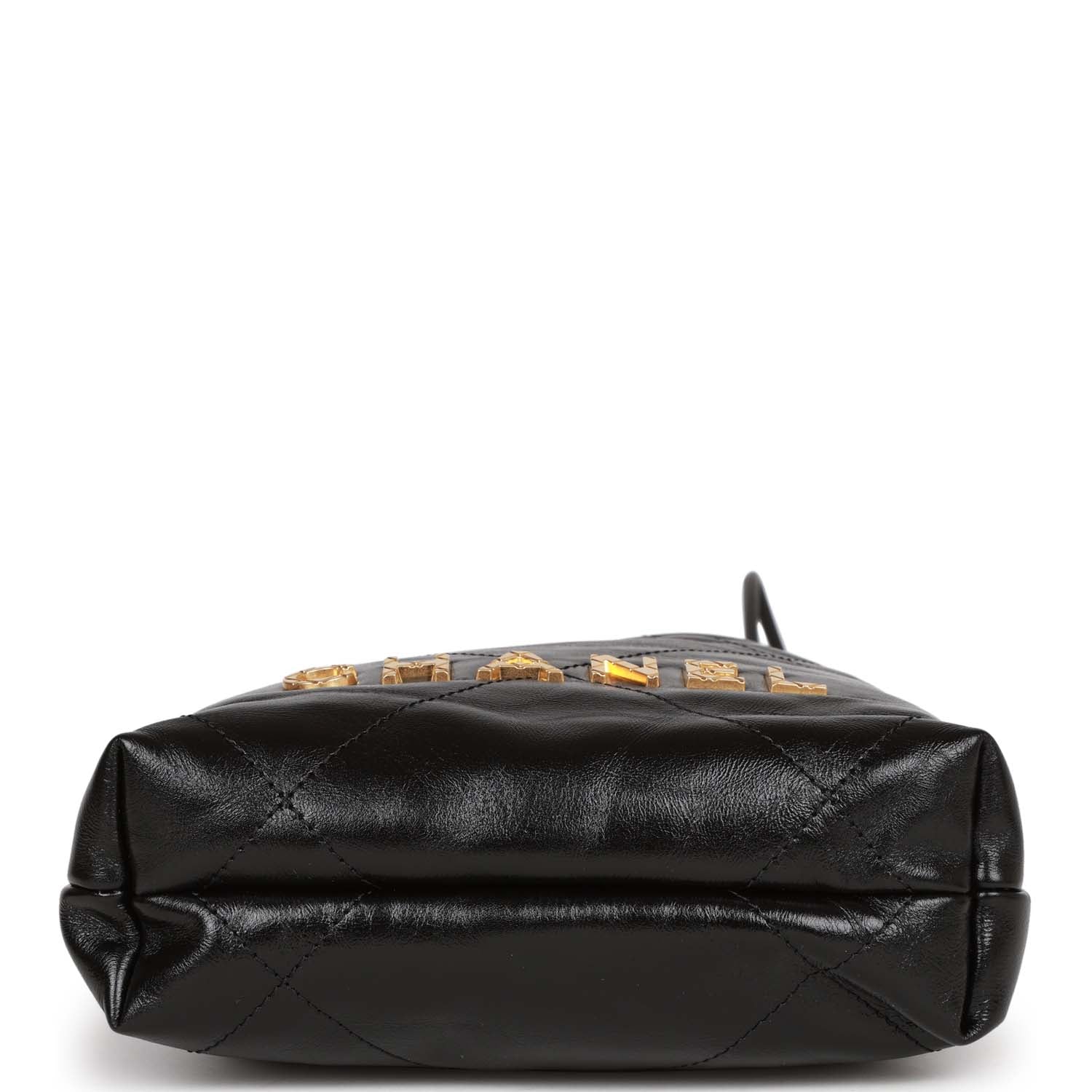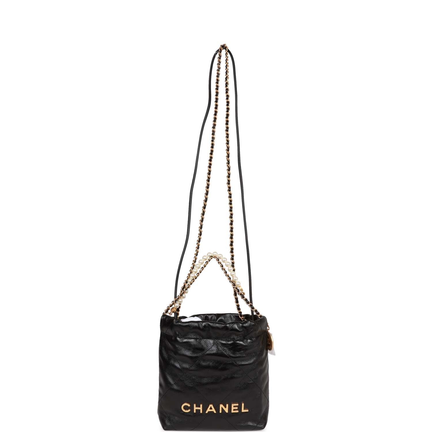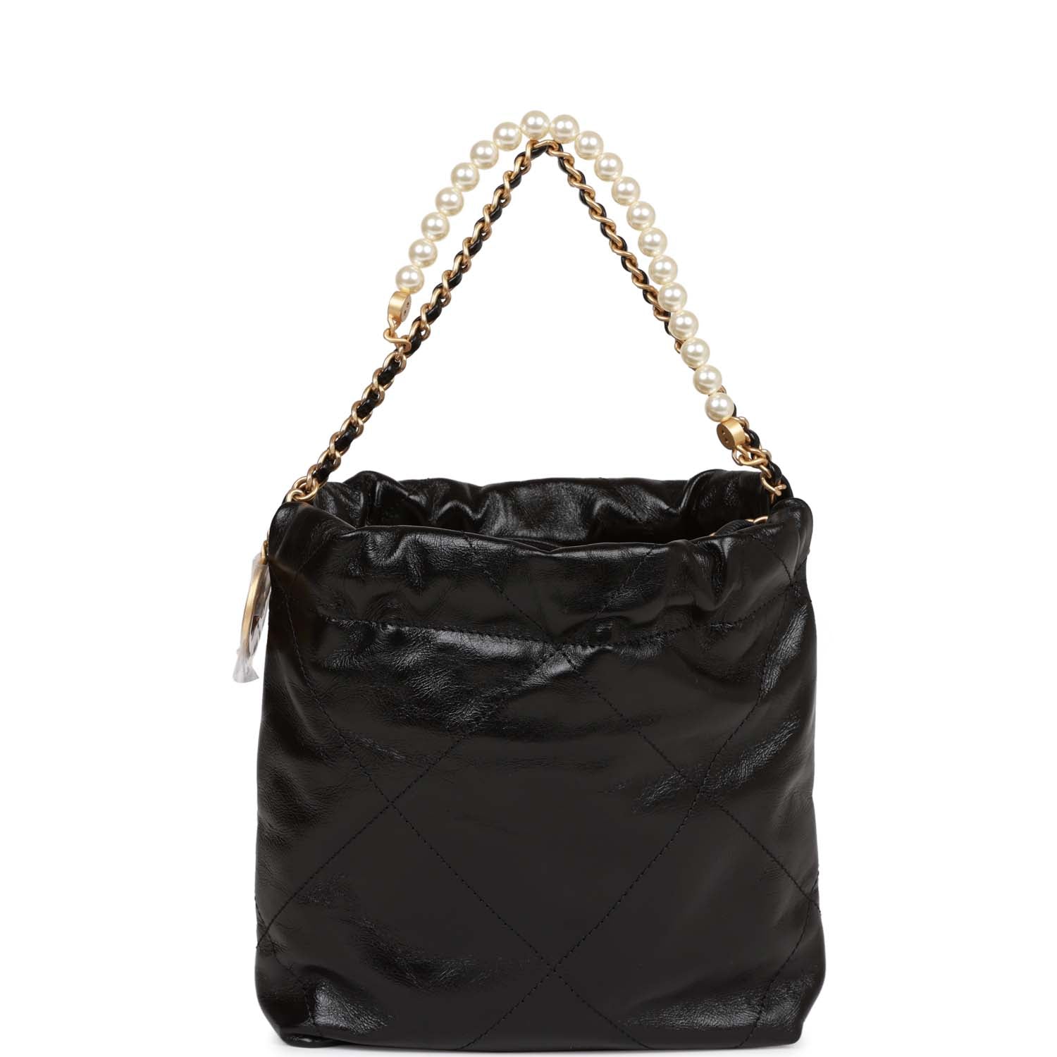 Chanel Mini 22 Bag Black Calfskin and Pearl Antique Gold Hardware