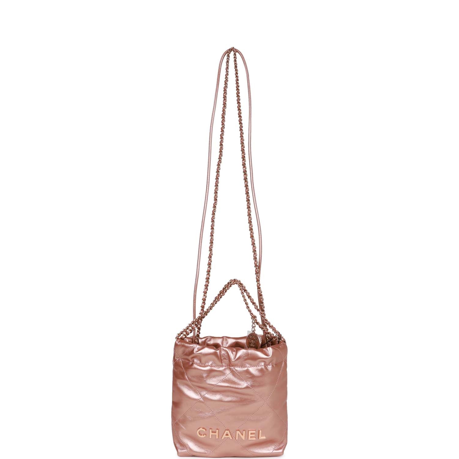Chanel Mini 22 Bag Rose Gold Iridescent Calfskin Rose Gold Hardware