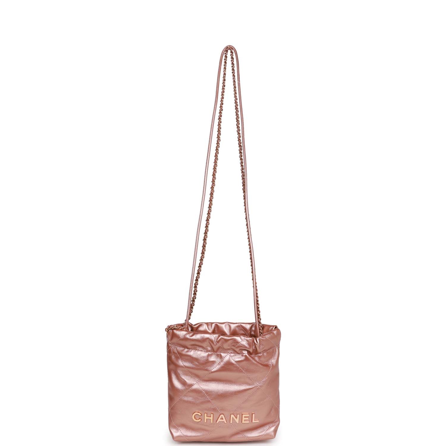 Chanel Mini 22 Bag Rose Gold Iridescent Calfskin Rose Gold Hardware