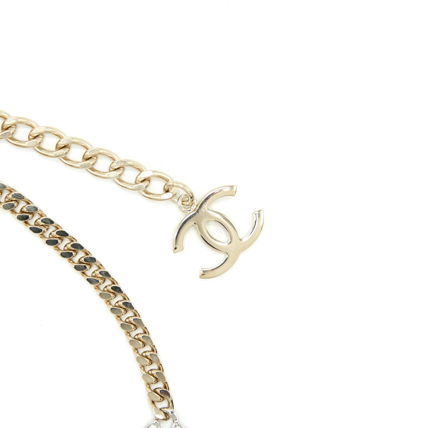 Chanel Mini CC Logo Choker/ Double Chain Bracelet Light Gold Tone