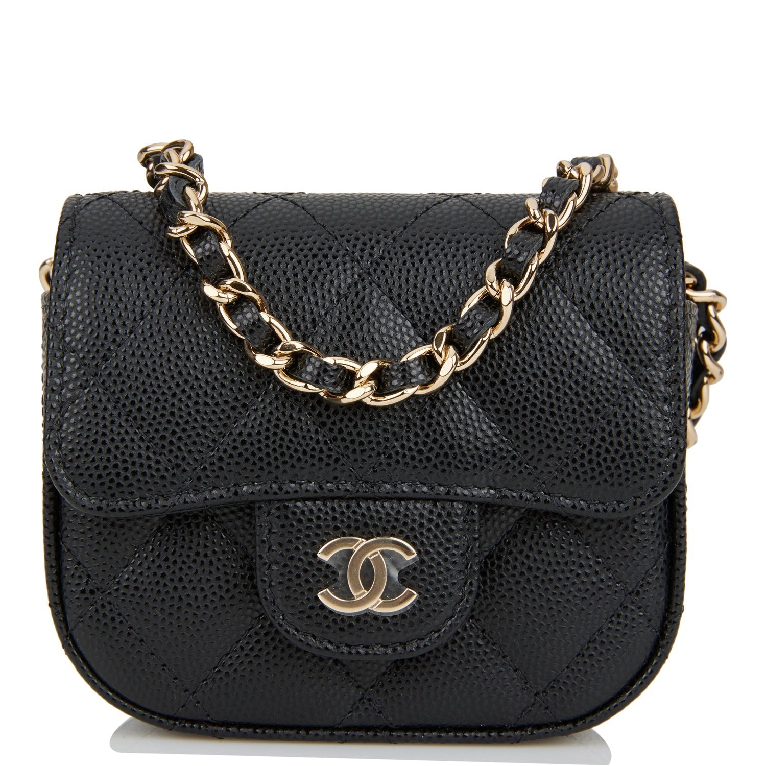 Chanel Mini Clutch With Chain Bag Black Caviar Gold Hardware